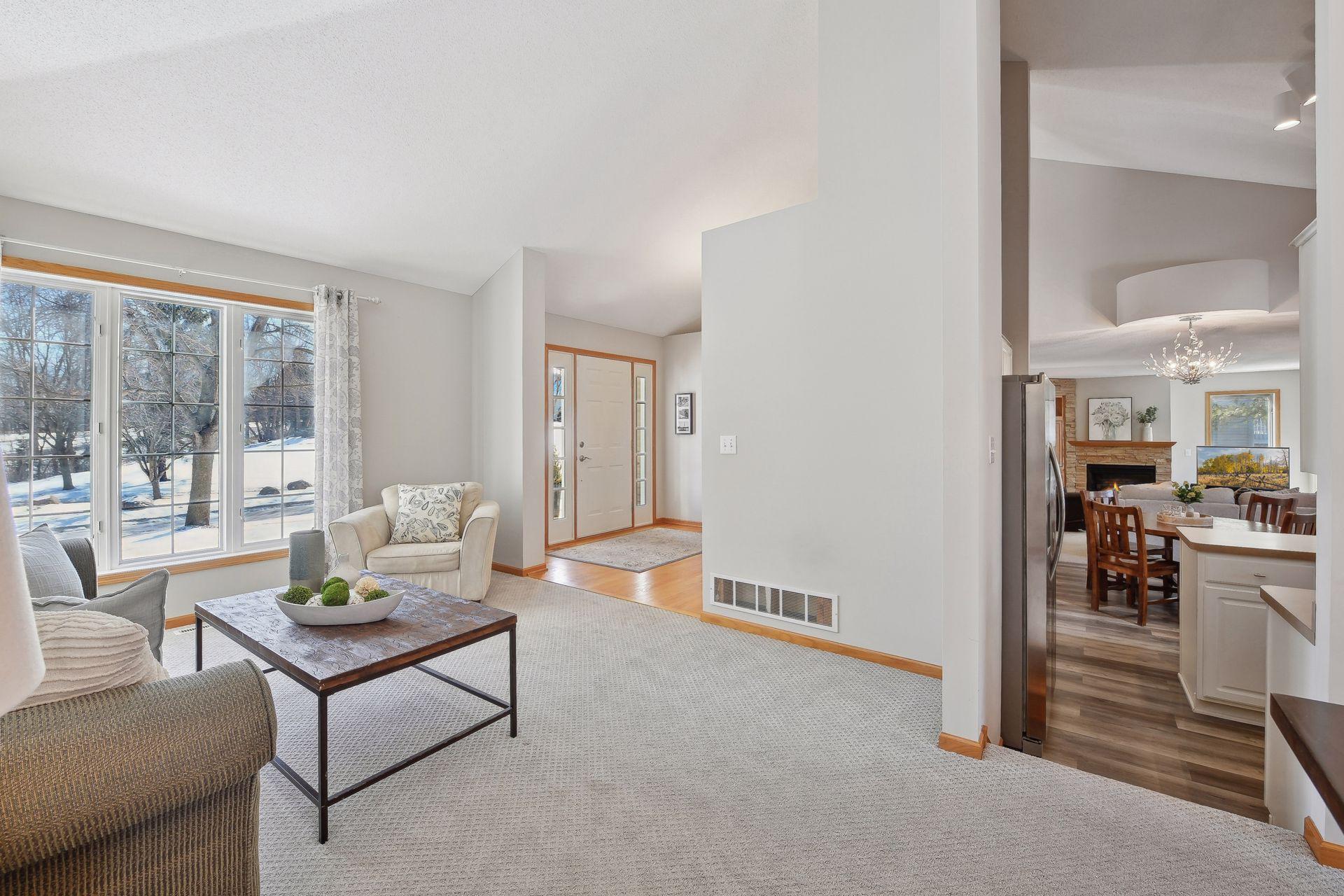 Terrific open floor plan with light-filled rooms & views of nature from all primary spaces. No views into other houses! Incredible lg 4-season sunroom anchors the home...great as fam room, playroom or for entertaining. Sunroom walks-out to beautiful brick paver patios and raised firepit. Central kit with white cabinetry & newer SS appliances (2022) opens to fam room, sunroom, casual & formal dining rms. Enjoy multiple flex spaces..add French doors to formal Lvg Rm or Din Rm to easily create an enclosed office/den or music rm; or convert current main flr office to mud/laundry room. An extra set of wshr/dryer hook-ups are already in main flr office. Three bedrooms up, including primary bedrm with 3/4 bath ensuite & walk-in closet. Full unfinished basement has egress window - great equity-building opportunity for add'l fam rm, 4th bedrm, storage. NEW FURNACE in 2024! New in 2022: ROOF & gutters, water softener; WASHER & DRYER; all new KITCHEN APPLIANCES; luxury plank flooring. See supplements for add'l maintenance & improvements. Walk to new dog park, and trail & park across the street. Close to Schram Brewery & Chaska Curling Club. No need to wait for new construction, move-in this spring!