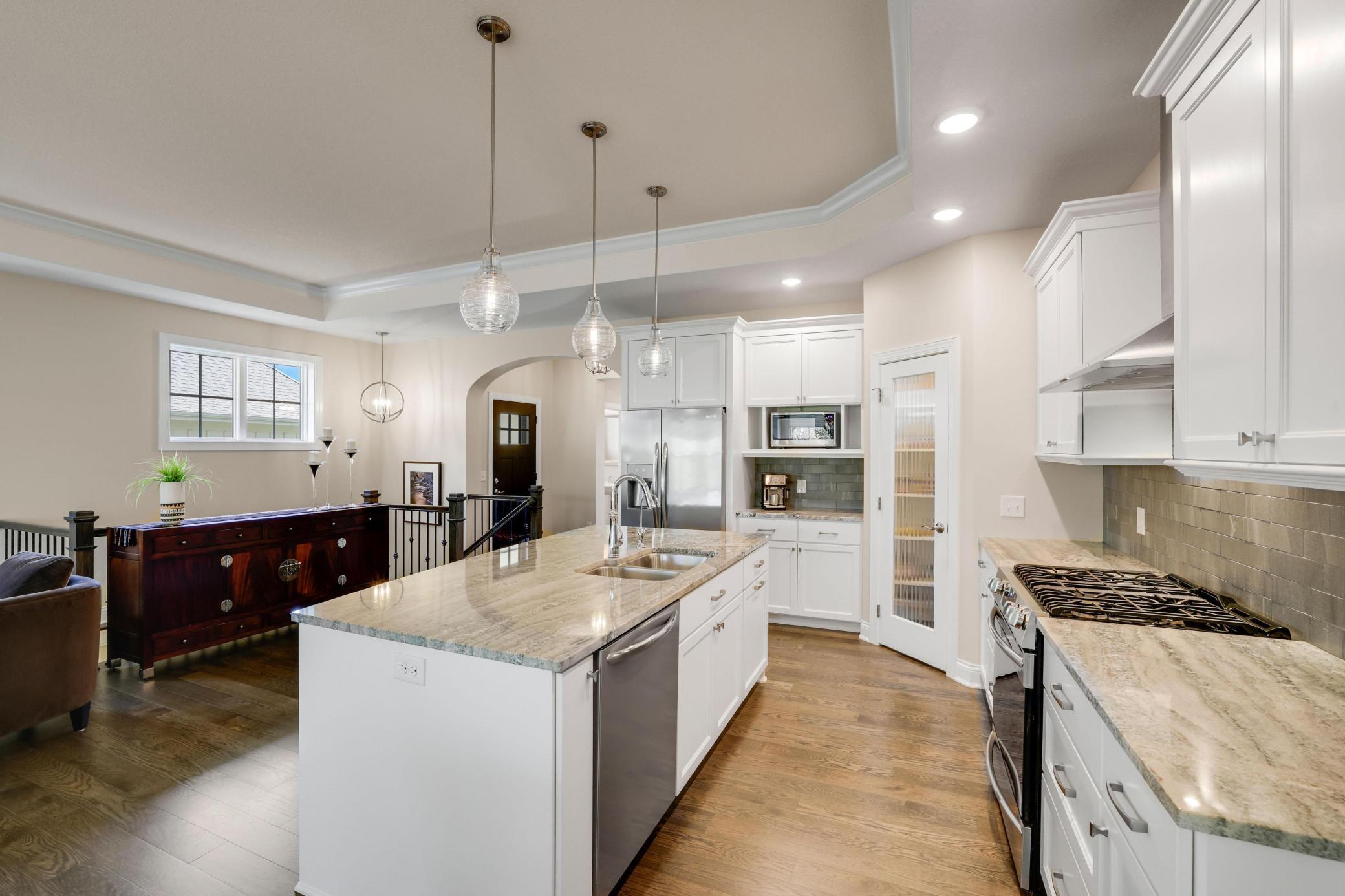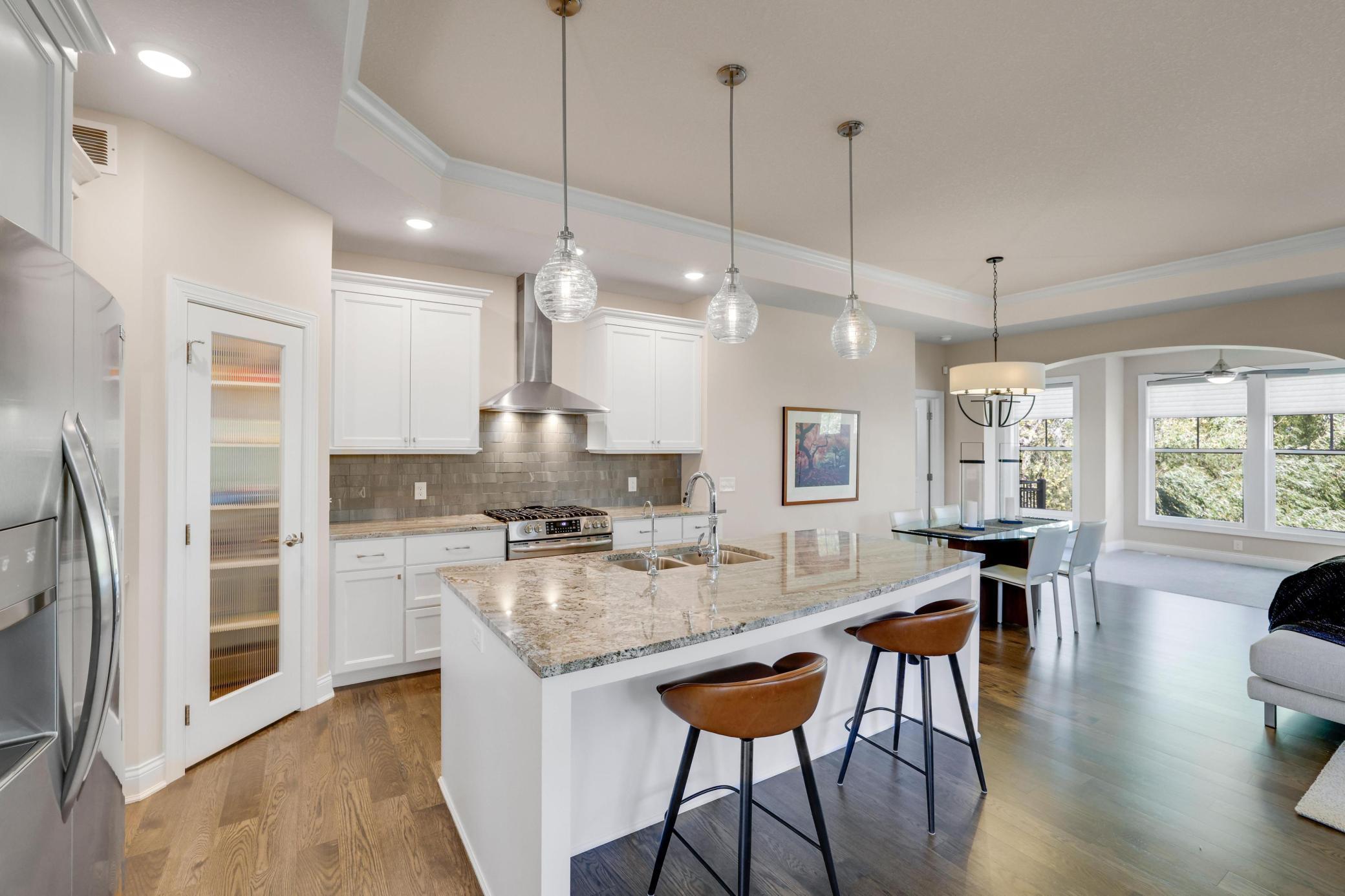 Charles Cudd custom-built villa located in the coveted Villas at Bass Creek. Step into timeless elegance and superior craftsmanship with this detached villa, thoughtfully designed and nestled in the sought-after Villas at Bass Creek, this residence offers refined living with exceptional attention to detail and quality throughout.The main level showcases soaring 10- and 12-foot ceilings, expansive windows that flood the space with natural light, and a seamless open-concept layout connecting the kitchen, dining, and living areas - perfect for both everyday comfort and entertaining. The gourmet kitchen features an oversized island, abundant cabinetry, a walk-in pantry, and stainless-steel appliances.Unwind in the tranquil four-season sunroom, which opens to a private deck overlooking a serene, wooded backyard—your own peaceful retreat. The main-floor owner’s suite is a sanctuary,complete with a walk-in tile shower, dual vanities, and a spacious walk-in closet.The finished walk-out lower level offers generous living space with a large family/recreation room, two additional bedrooms, and a full bath. The insulated, painted, and heated garage adds convenience and comfort year-round.Located just minutes from downtown, with easy access to the vibrant shops and dining of Arbor Lakes, this villa also enjoys proximity to Three Ponds Park and Eagle Lake Golf Course —offering the perfect blend of lifestyle, and location.
