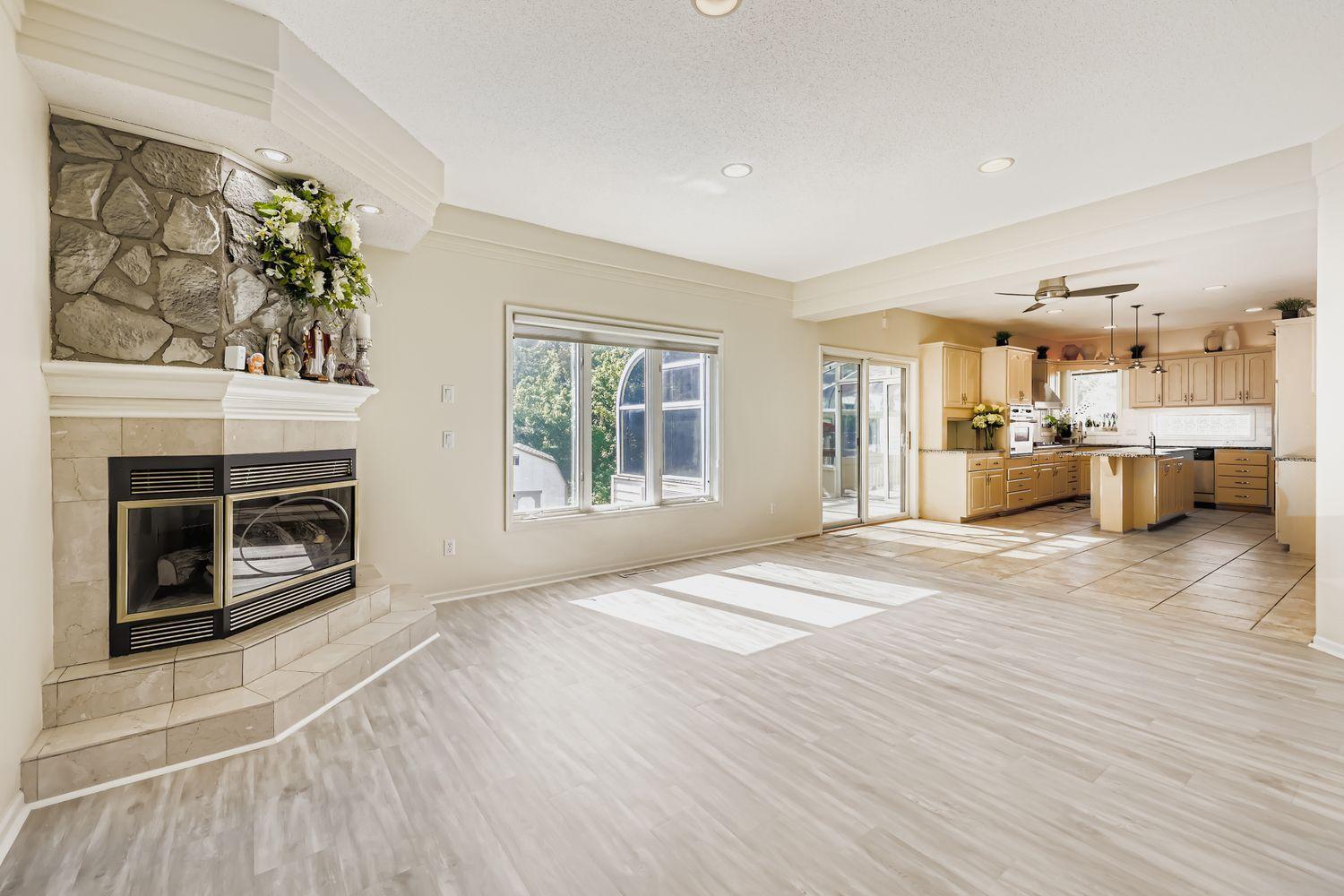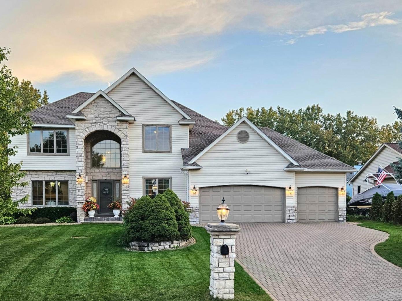 Designed for today’s lifestyle, this beautiful 2-story home features 4 bedrooms, 4 bathrooms, and a 3-car garage—all wrapped in comfort and style. A bright and welcoming foyer sets the tone, showcasing a beautiful staircase that makes an elegant architectural statement as it leads to the second floor. The open-concept main level is filled with natural light, offering an ideal setting for everyday living and effortless entertaining. The kitchen features stainless steel appliances, lots of cabinet space, and plenty of counter space. Its open layout connects effortlessly to the living and dining areas, making it ideal for casual dinners as well as larger gatherings. The large, inviting living room is centered around a cozy fireplace, and a formal dining room adds classic charm—ideal for holidays or dinner parties. Upstairs, escape to your luxurious primary suite, complete with a private balcony overlooking the freshly landscaped backyard. The spa-inspired ensuite includes whirlpool tub, separate shower, and a spacious walk-in closet. The fully finished walkout basement adds flexibility for a home office, gym, media room, or guest space—whatever suits your lifestyle. Enjoy year-round outdoor living with a 3-season porch, large deck, and a beautifully maintained backyard ideal for relaxing or entertaining. Located just minutes from several local lakes—including Lake Phalen, Keller Lake, and Gervais Lake—this home offers easy access to outdoor recreation, trails, and parks. Commuters will love the quick access to major highways, with downtown St. Paul and Minneapolis only a short drive away. With shopping, dining, and daily essentials close at hand, this location offers convenience and nature—just minutes from your door.