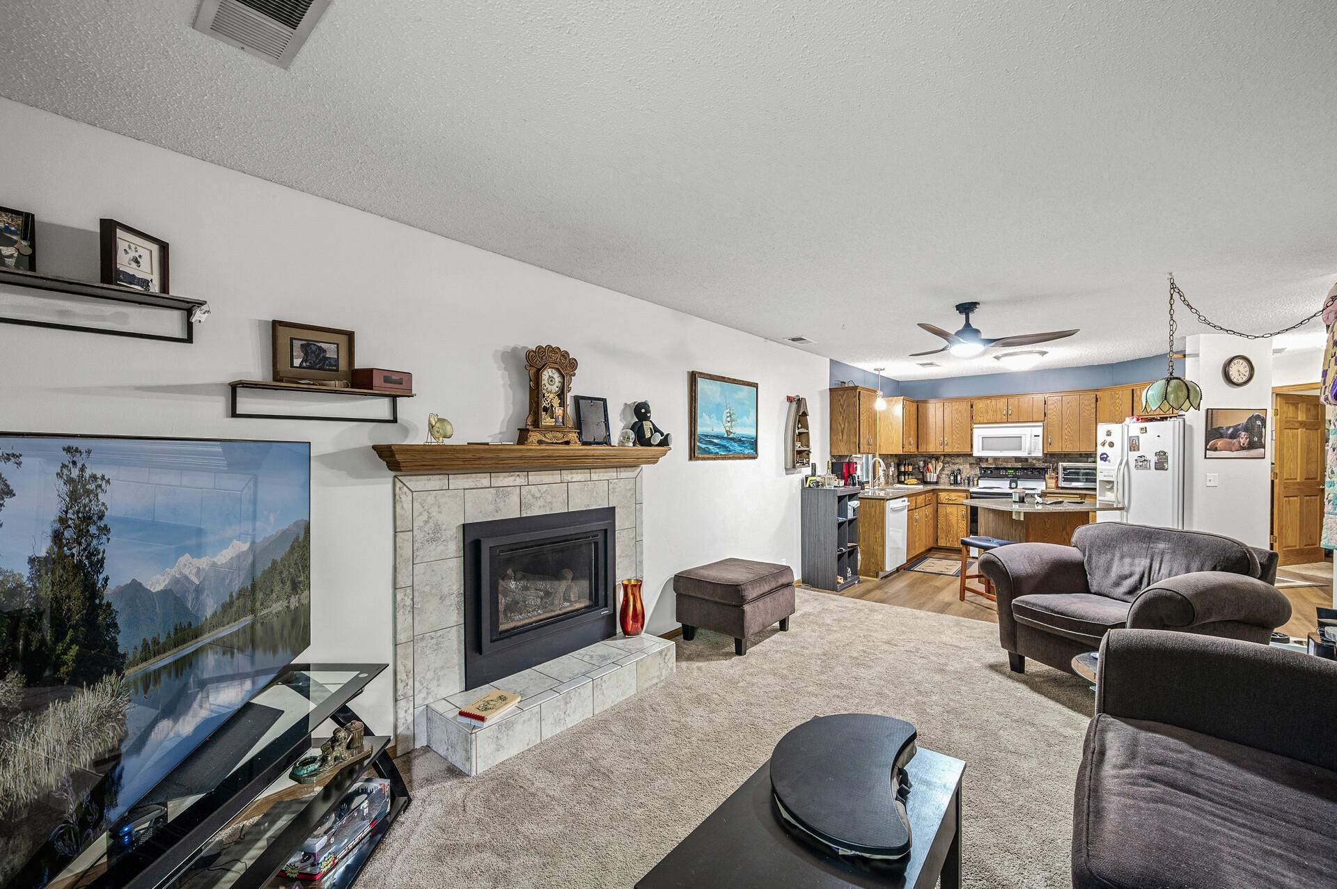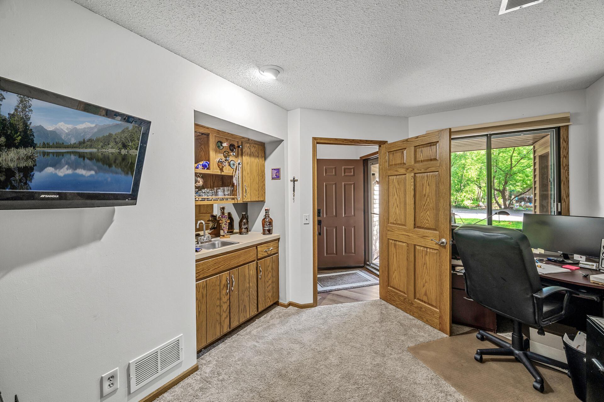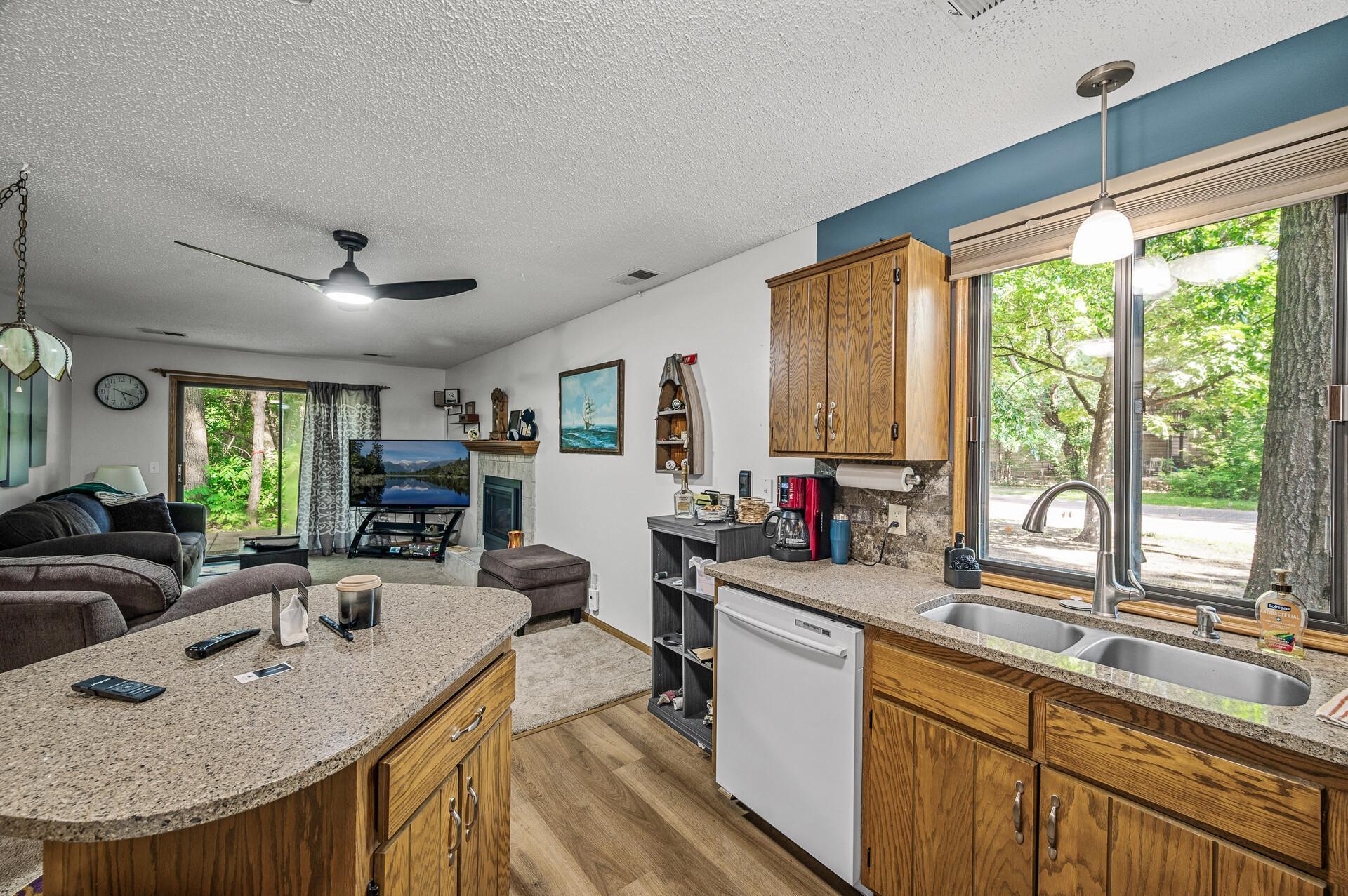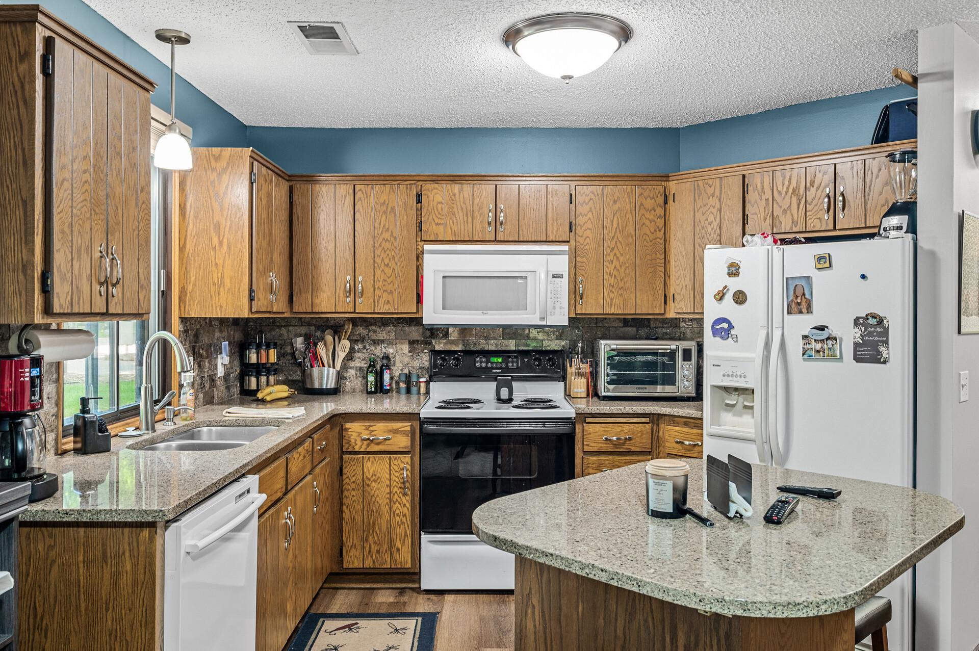 Come see this wonderful 1- level townhome located on a quiet road close to shops, restaurants and an easy drive to I-35 for a quick commute. The rear-facing, quiet patio with a nice wooded view allows a peaceful setting for a morning coffee. The quartz counters, and vinyl planking help create an easy to maintain and beautiful kitchen. The second bedroom has a built in cabinet in the closet and was used as a den/office. Extra built-in storage space in the well-sized 2 car garage.