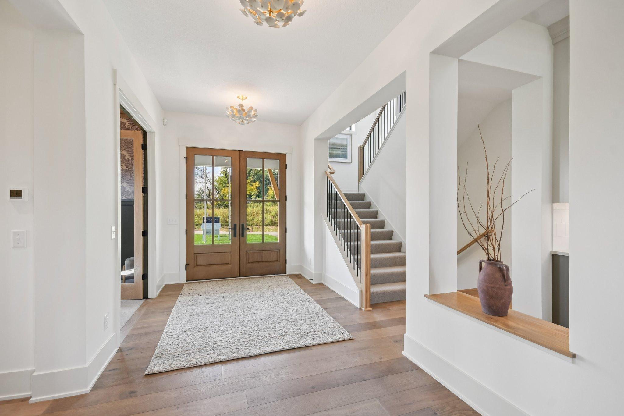 Stonegate Builders is proud to introduce the premier Creekside at Huntersbrook neighborhood featuring 10 custom, approximately 1-acre homesites with wooded backdrops and distant vistas of nature areas. Detached carriage houses are welcome. This exciting Stonegate St. Croix model home is underway and features two-story soaring ceilings with sun-filled expanses of glass overlooking trees and wetlands. This plan features 5 bedrooms, 6 baths and a 4-car garage. The main level has an open floor plan, center-island gourmet kitchen, beamed ceiling, great room with fireplace, flex room, screened porch with fireplace, composite deck and much more! The upper level features a primary suite with luxurious bath and walk-in closet; three additional large bedrooms – all with private baths; a loft - open to below and a second-floor laundry. The walk-out lower level has an additional bedroom, bath, family room, game room, exercise room, wet bar and fabulous athletic court. Meticulous attention to detail in the fit and finishes. Option to add a detached carriage house/garage/storage condo with living spaces above designed to complement the exterior elevation of your new home. The possibilities are endless. Walking trails and a neighborhood pool and clubhouse complete this unique opportunity.