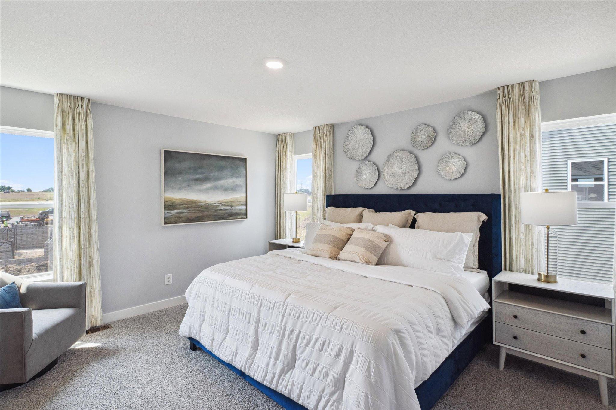 Ask how you can receive up to $5,000 in closing costs on this home. NOW COMPLETE!! The ”Henry” is an updated version of a classic DR Horton home. Designed for today’s families with space for everyone. The front exterior offers you timeless elegance and the functionality of a covered front entry. Step in the front door and get more than you expected and everything you deserve. Main floor bedroom with walk-in closet and full bathroom provides the perfect in-law suite or kids home from college space. Kitchen boasts Whirlpool appliances 2 full size wall ovens, gas cooktop with a micro hood that vents to the exterior. Beautiful light gray cabinetry with Quartz counters, tile backsplash, trendy hardware and corner walk-in pantry. Connects perfectly the main floor family room. Come in from the garage and drop all the stress of the day in the mudroom with large walk in closet. Also find a smaller office space that can be the perfect place to unload the mail, car keys and charge the electronics. Head to the upper level and be greeted by the open loft space plus 4 bedrooms, none with a common wall to another bedroom. The luxury primary bedroom suite has a private bath with dual sinks with Quartz counters, a tiled shower, plus a walk-in closet. Unfinished lower level gives you the potential for an additional 786+ FSF with a large 6th bedroom, 4th bathroom and spacious family room. The Sienna Grove neighborhood is nestled in the East end of Woodbury which hosts an amazing parks system that includes connections to 150 miles of walking trails. Large home sites, up to ½ acre that back to ponds and open spaces. Close to excellent dining options, shopping, breweries, Championship golf, movie theatres, and Historic Afton. Plus, an easy drive to the essentials like groceries, hospitals and public safety. Easy access to 494/94. Students attend the highly desirable school district #833, including Liberty Ridge Elementary, Lake Middle and East Ridge High. Don't forget about our 1, 2, & 10 year warranty on your new home, avoid the expense of a home inspection. Hardi board siding on the front adds value and extra curb appeal. Sod and irrigation included, plus, industry leading smart home technology providing you convenience & peace of mind. NO HOA!!