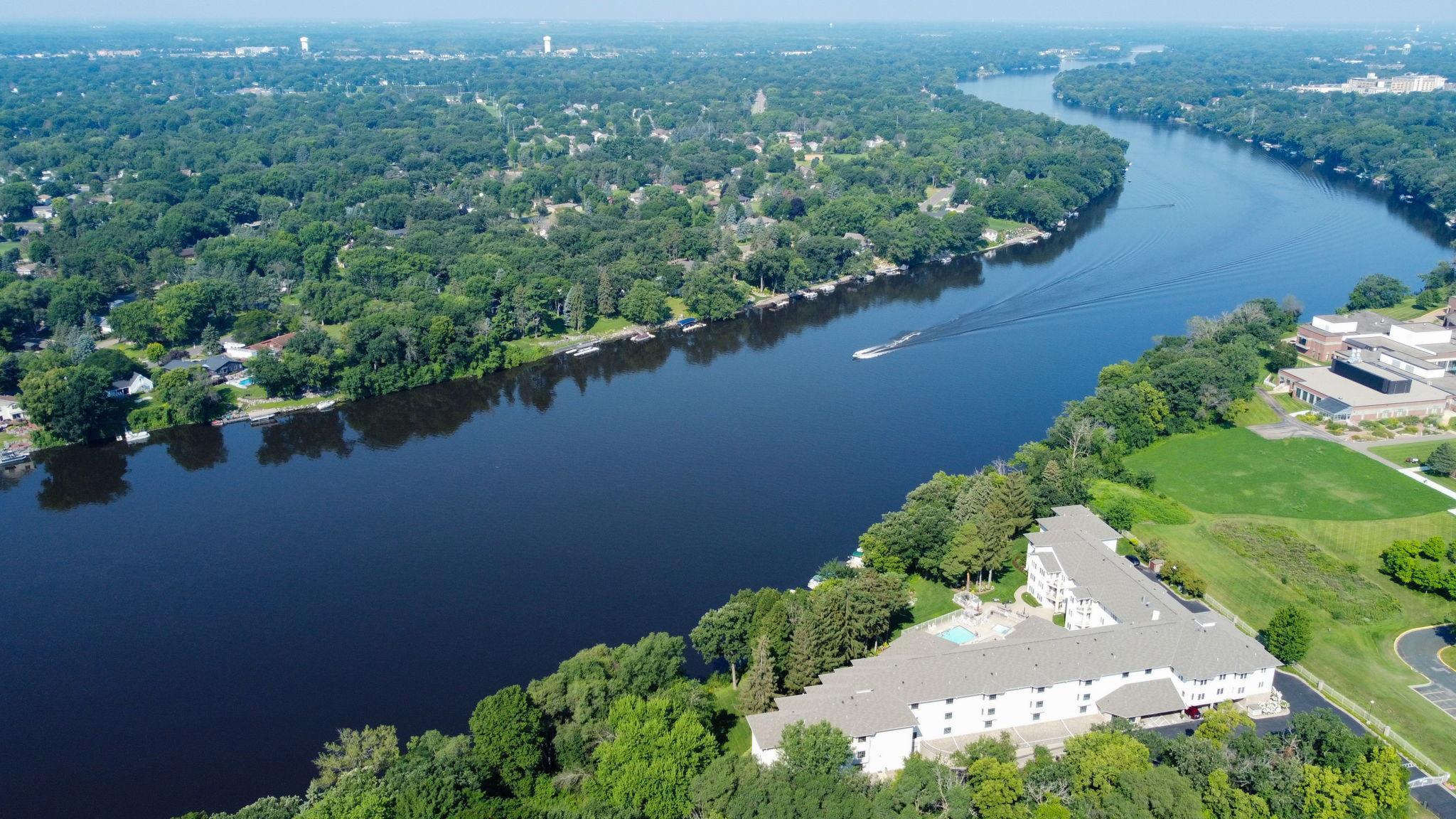 Welcome Home to Resort-Style Living on the Mississippi! Enjoy unmatched privacy and panoramic river views from this beautifully designed one-level home. Expansive windows fill the open-concept living, dining, and kitchen areas with natural light—perfect for everyday living and entertaining. The kitchen features updated stainless steel appliances and plenty of cabinets while the spacious primary suite offers an oversized walk-in closet and a luxurious bath with dual sinks, soaking tub, and separate shower. Step outside your door to a lifestyle few can match—swim in the heated in-ground pool, unwind in the hot tub, or launch your kayak from the dock. Boat slips are available, and the community amenities include a spacious party room with full kitchen, fireplace, grills, and patio seating, plus a guest suite for overnight visitors. Located in the coveted Voyager Condominium—just three miles upriver from the Coon Rapids Dam—this 36-unit property offers beautiful gardens, heated underground parking, and direct water access. Whether as a weekend retreat or your forever home, this is the perfect blend of comfort, style, and scenic beauty.