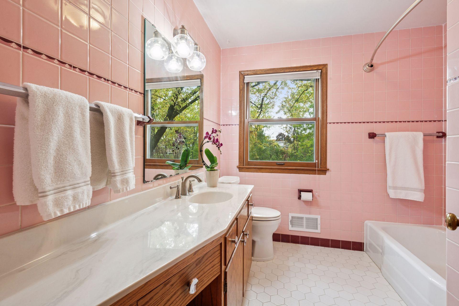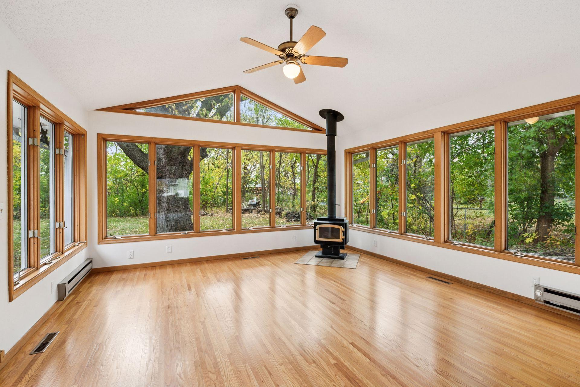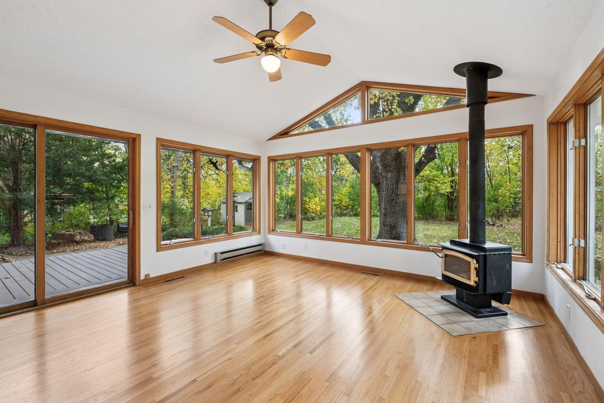 Welcome to this terrific home featuring beautiful hardwood floors, delightful sunroom, spacious living areas, neutral decor and move in condition! Sunsplashed living room with gas fireplace, formal dining leads to eat-in kitchen and large Sunroom. French doors lead to the delightful sunroom with abundance of windows and wood stove. Step out to the large deck, its great for entertaining and views of peaceful fenced back yard. The classic kitchen is efficient with newer SS Refrigerator, Microwave, Induction Cooktop and Dishwasher, plus a cozy breakfast area to have your morning coffee. Upstairs are 3 bedrooms all with hardwood floor, classic "Pretty in Pink" full bath on this level. Downstairs is a pleasant office with built in shelving and daylight window. An additional 3/4 bath and walkout access to back yard and patio. There is a huge lower level family room with gas fireplace, and game area. The laundry room and storage complete this level. This home has been well maintained, new roof in 2020, new furnace+ CA in 2023, plus a One Year HSA Home Warranty is included! It's easy to move right in and enjoy your new surroundings. Just a few blocks to Dwan Golf Course and Moir Park!