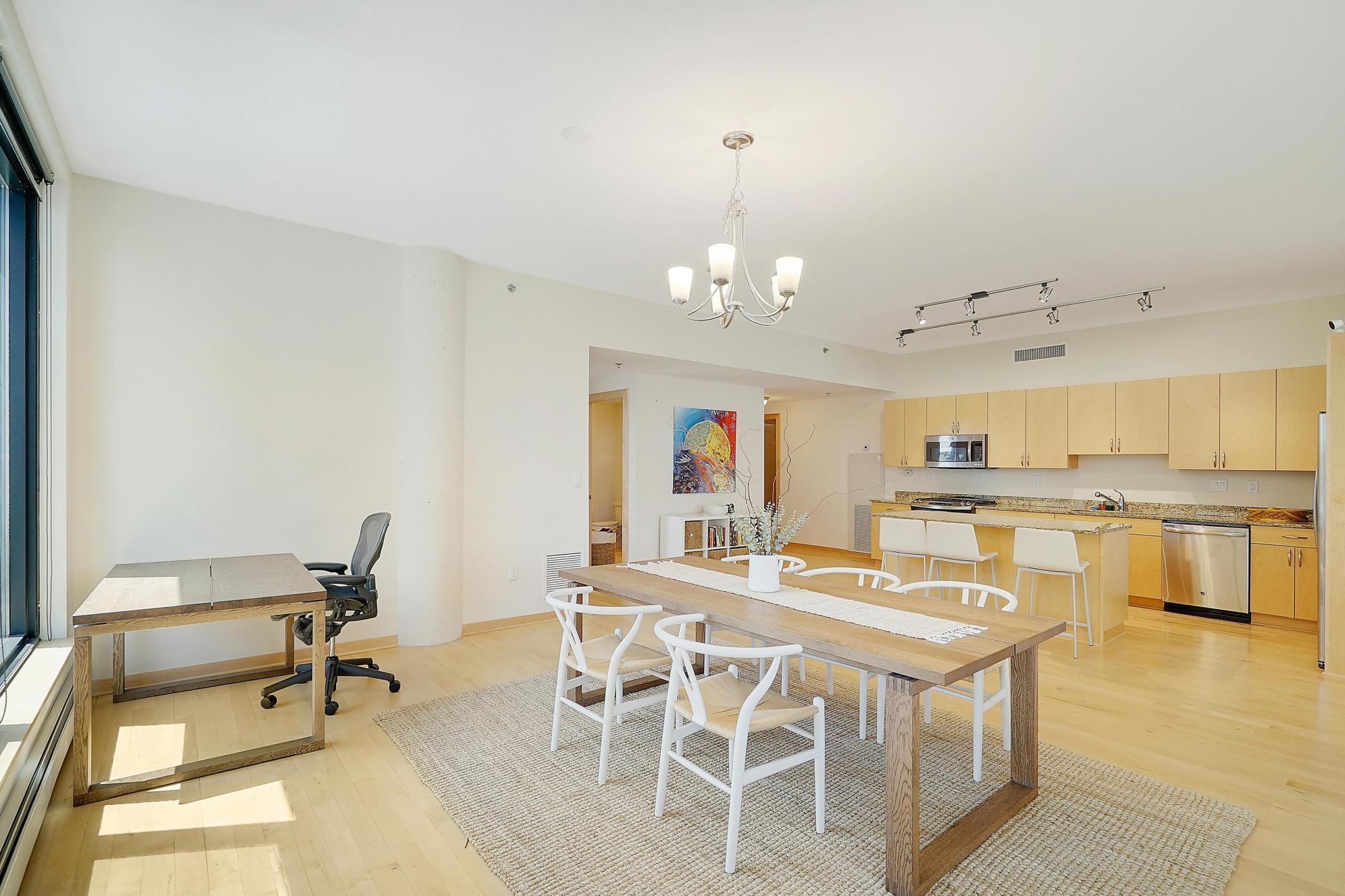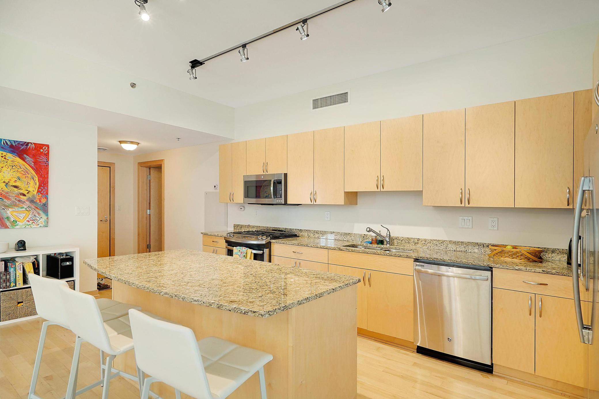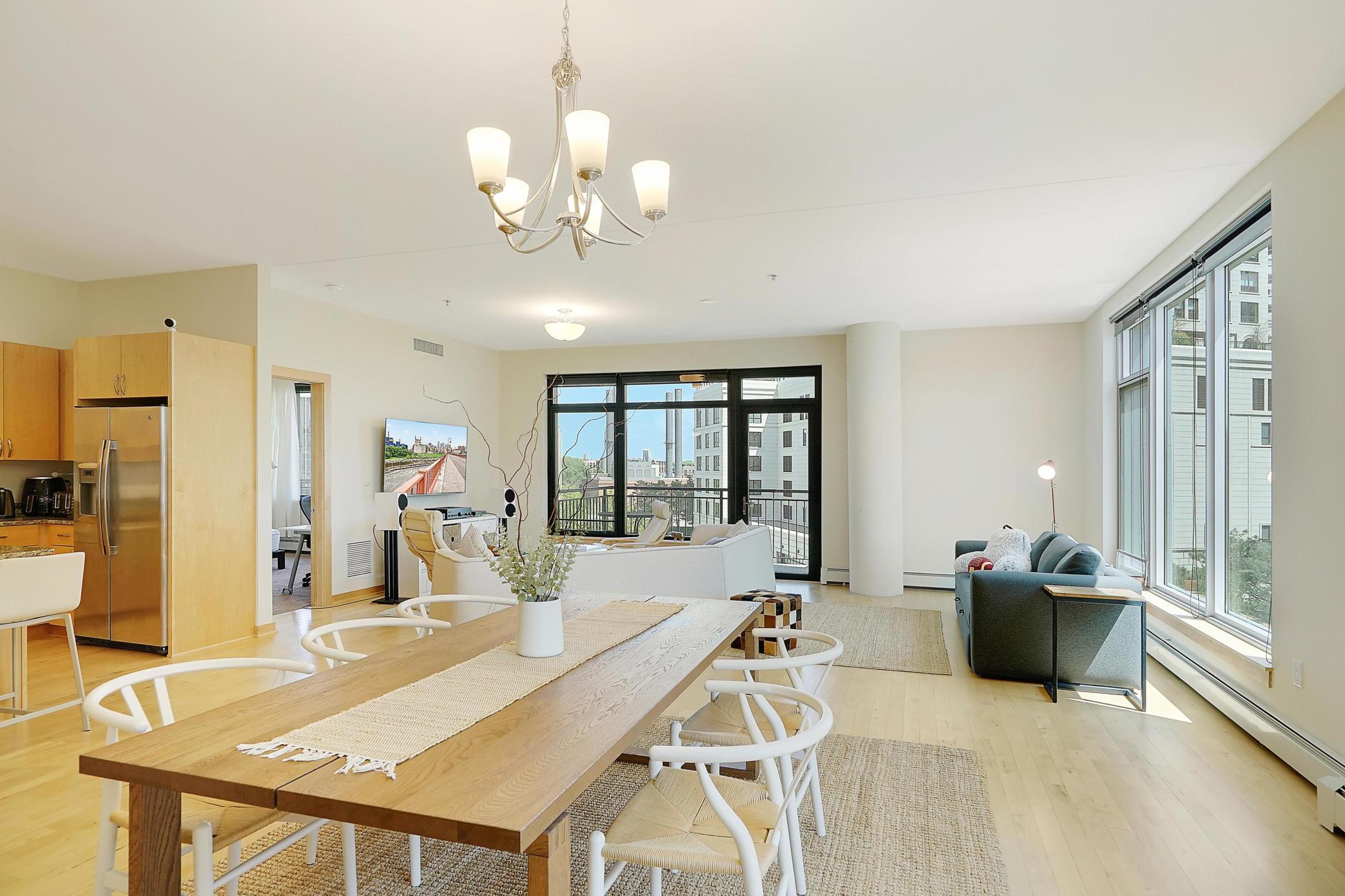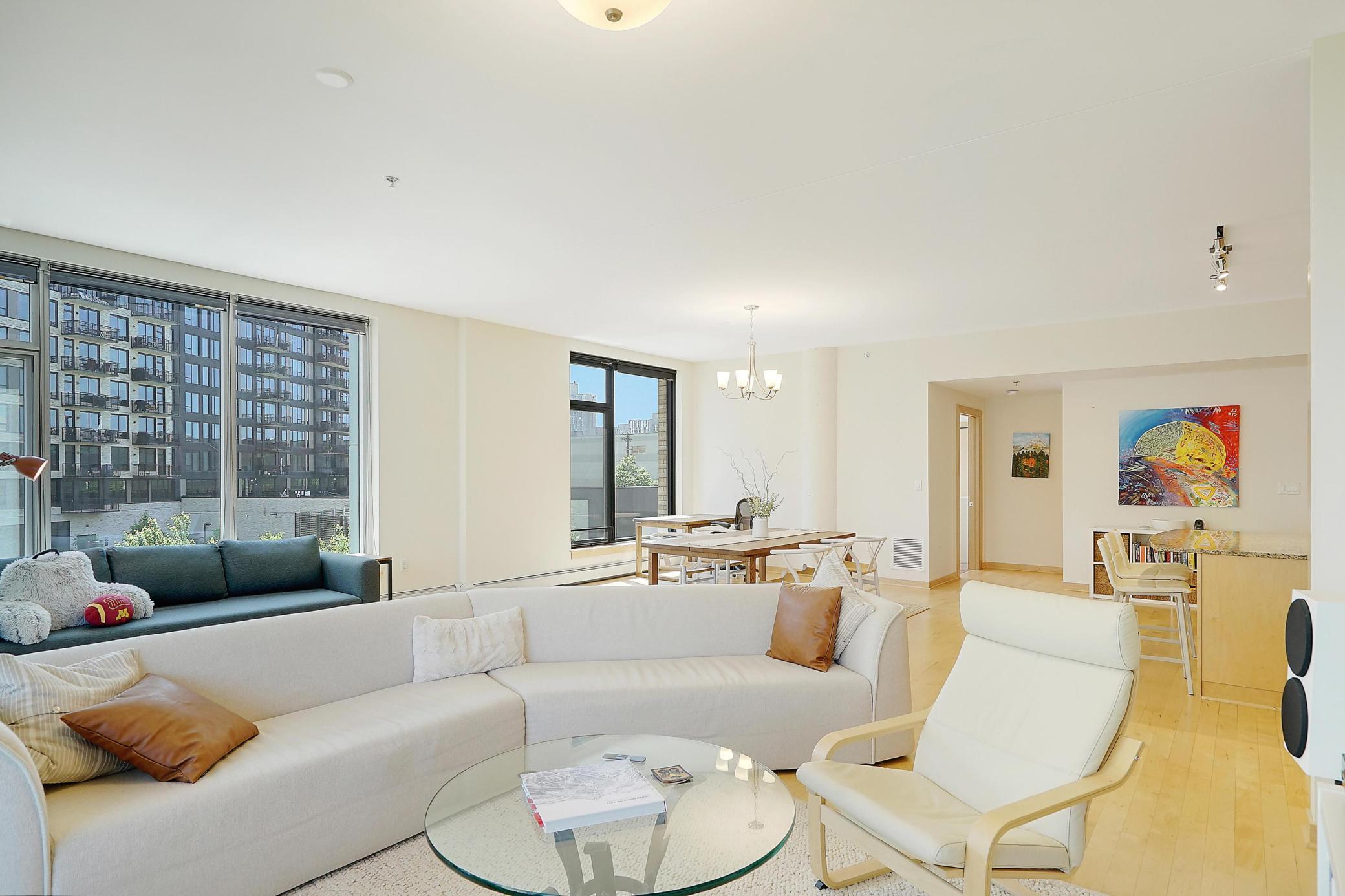 Welcome to Stonebridge Lofts! This stunning corner condo features open living spaces great for entertaining and an abundance natural light and river views! Be in the heart of the Mill District walkable to US Bank Stadium, Light Rail and several restaurants and shops. The building features a community room, outdoor pool and hot tub, along with a fitness center. This unit includes one heated parking stalls and an additional storage locker. An additional parking spot is available for $150 per month.
