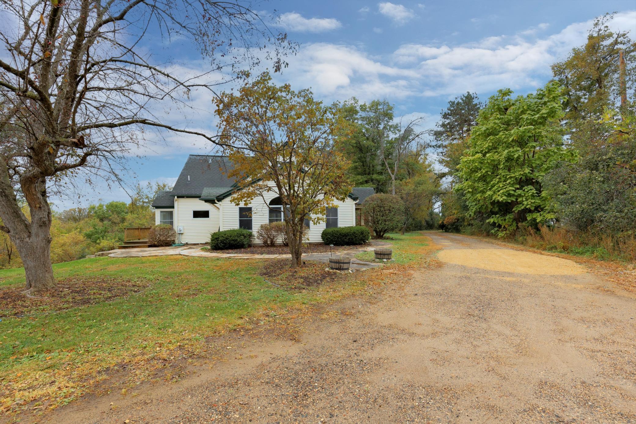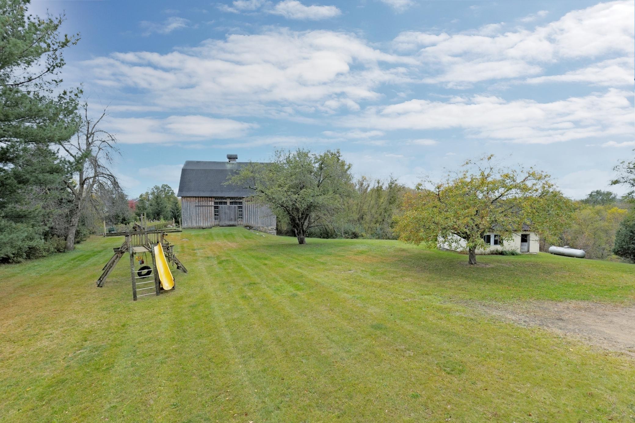 Beautifully updated farmhouse on a totally private 5+ acre setting. Open floor plan, LVP flooring, gourmet kitchen with granite countertops, center island, and high-end stainless steel appliances. Enormous upper-level primary suite. Lower-level walkout is ready to be finished. Fabulous old-world barn with drive-in hay loft and lower level. Large outdoor yard for all your recreational activities. Conveniently located less than 5 minutes to shopping and 10 minutes to Hwy 94.