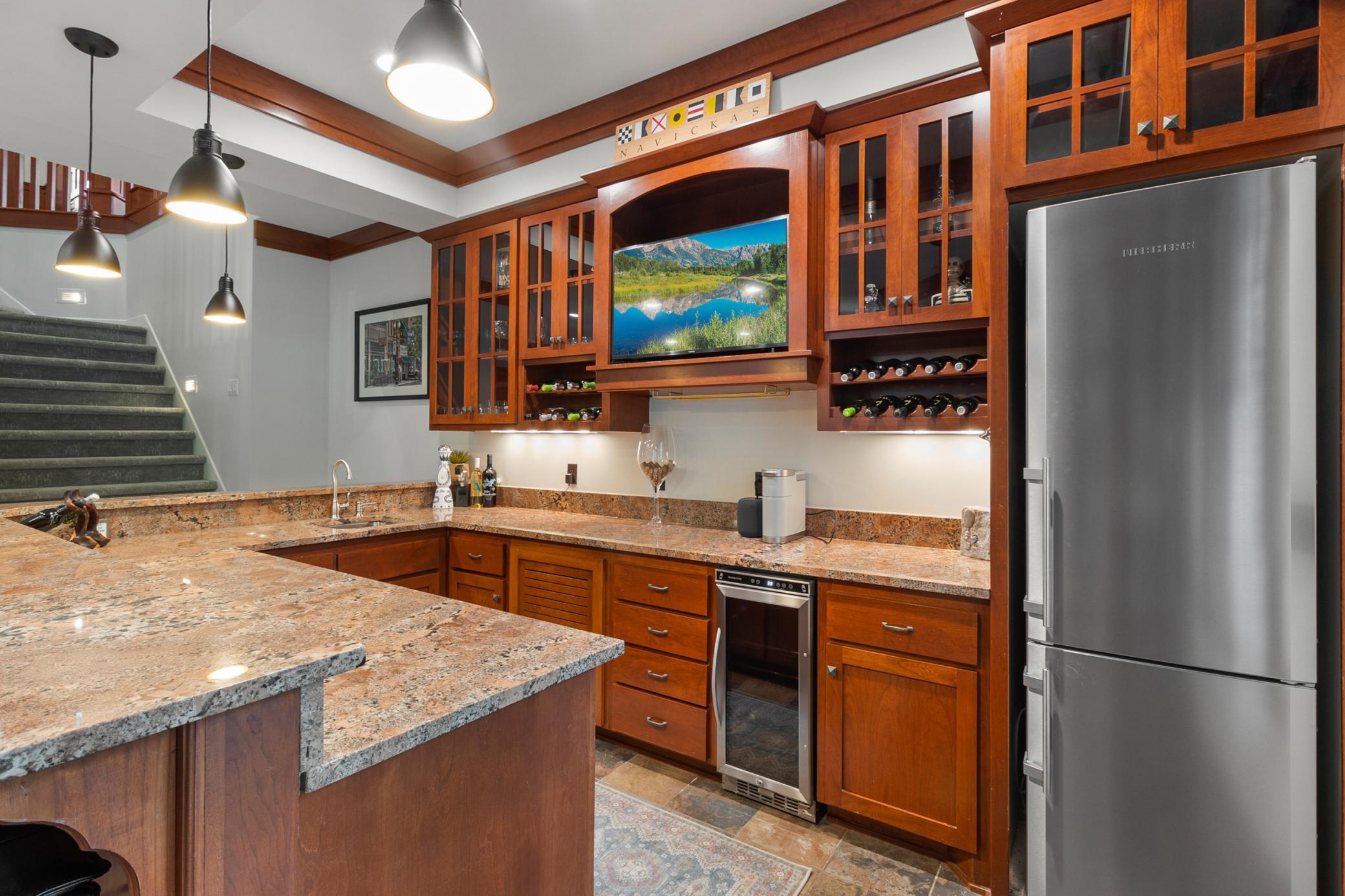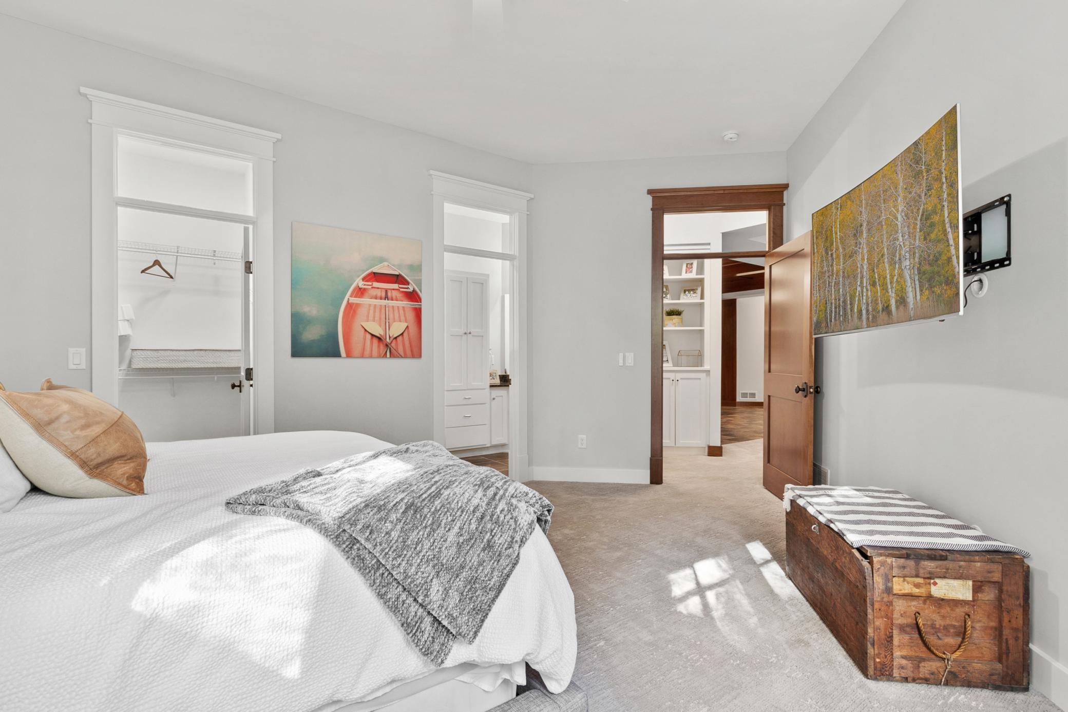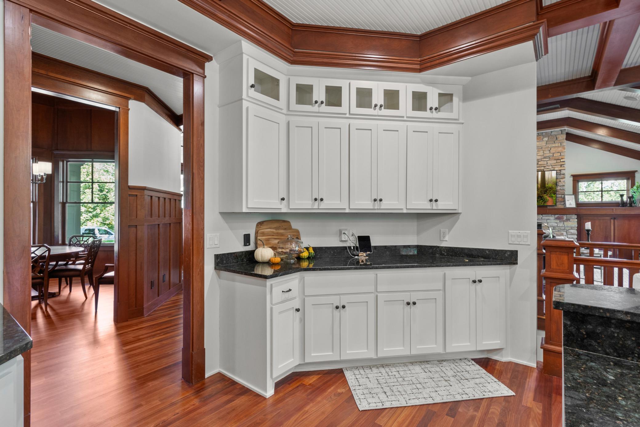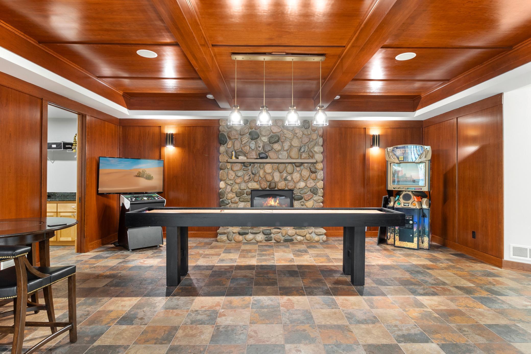 Turn-Key Rambler with Main-Level Living in Orono! Step into this beautifully crafted home, where attention to detail and high-end millwork will immediately captivate you. The main floor offers a spacious, open concept with a gourmet chef's kitchen featuring top-of-the-line appliances, a large center island, walk-in pantry, cozy hearth room, and a bright 4-season porch. The family room boasts 10-foot ceilings, custom built-ins, and a gas fireplace with access to a covered deck complete with an outdoor fireplace overlooking the recently refreshed backyard. Additional highlights of the main level include an octagonal formal dining room, a private office, and a luxurious primary suite. The suite impresses with box beam ceilings, access to the 4-season porch, a spa-like bathroom, a massive walk-through closet leading to the laundry room, and spacious mudroom. The lower level is perfect for entertaining, offering a large bar area, media room, a second 4-season porch, game room, second laundry room, three additional bedrooms, and two full baths. This home features in-floor heating in the primary bath, entire lower level and in the fully finished 4-car garage. Outside, enjoy the brand-new backyard with high-end hardscaping, a firepit area, and a chipping/putting green for the golf enthusiast. The Home's exterior and interior was just all re-painted/enameled, all new carpet, new AC & furnace, freshly refinished hardwoods and new lighting. Short walk to an Orono Schools Bus Stop. Located just minutes from Lake Minnetonka amenities and easy access to HWY 12, with a quick drive to downtown Minneapolis. This home is a must-see!