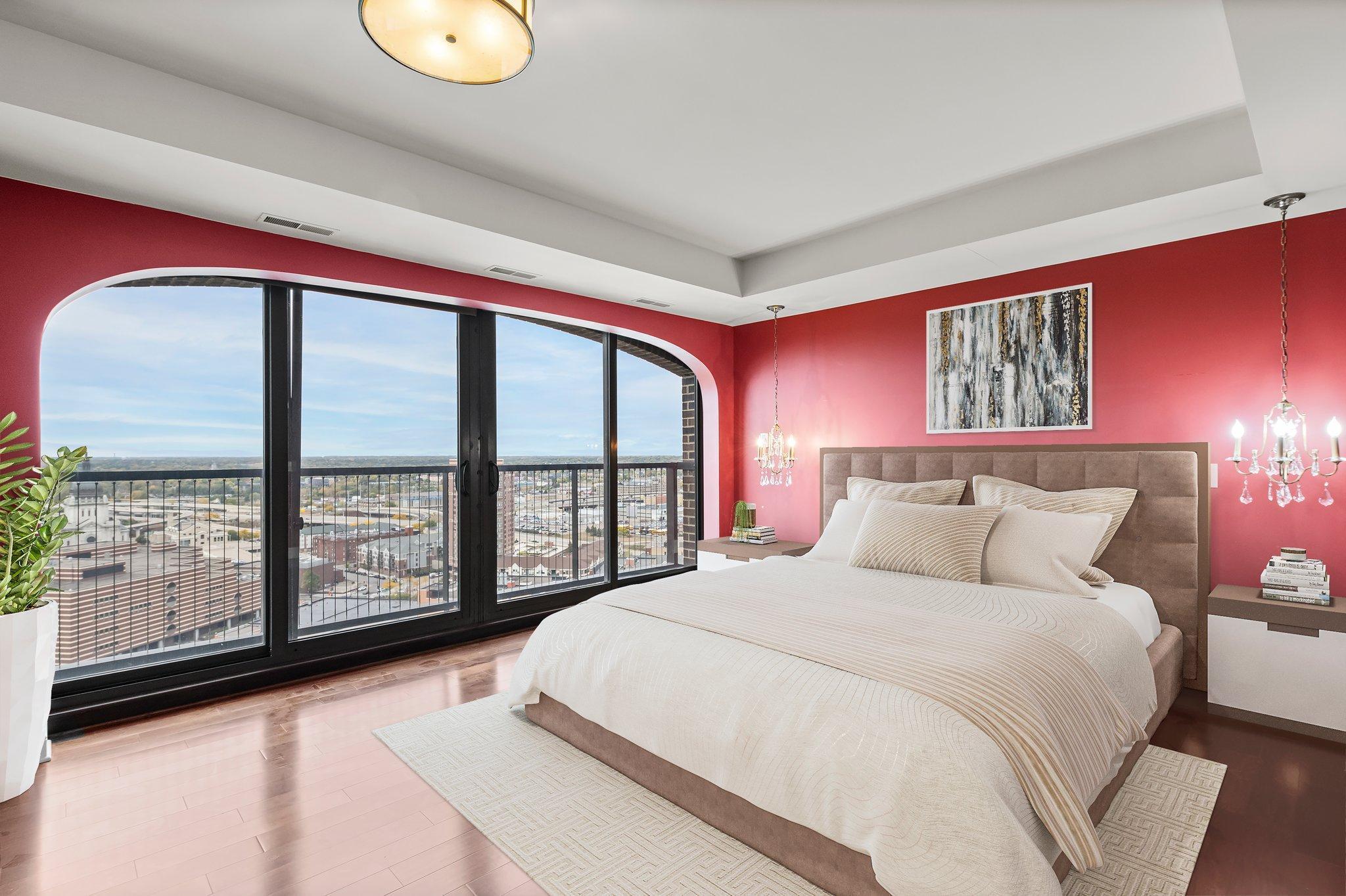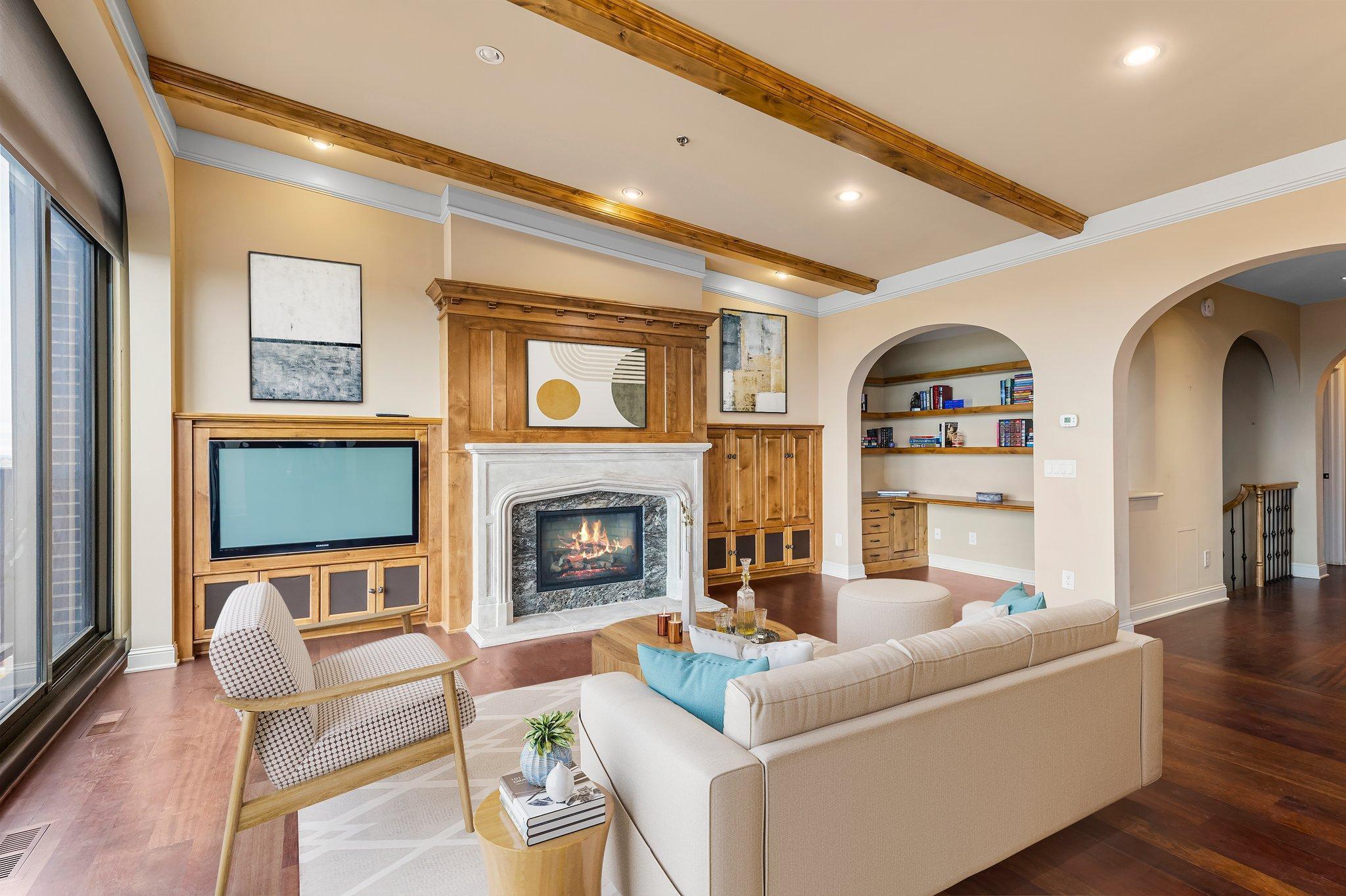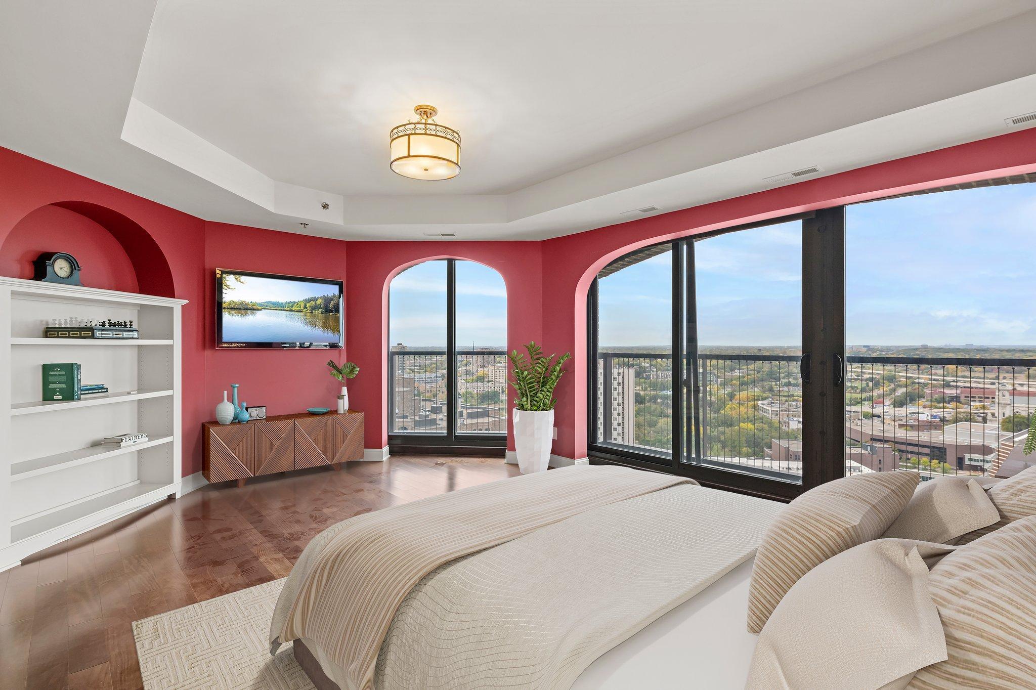 Welcome to 1201 Yale Place, Unit 2303, a luxurious penthouse condo in the heart of Minneapolis offering one bedroom and one-and-a-half bathrooms. This home is defined by its high-end finishes throughout, with meticulous attention to detail in every corner. The expansive floor-to-ceiling windows in both the living room and bedroom provide breathtaking views of the city, particularly during sunset. The open floor plan seamlessly connects the living, dining, and kitchen areas, which are all located on the upper level. The large kitchen features stainless steel appliances, a walk-in pantry, and breakfast bar seating, flowing effortlessly into the dining room and living room, making it perfect for casual dining and entertaining. The living and dining areas boast beautiful built-ins, while gorgeous beams draw the eye to the vaulted ceilings, adding elegance and character to the space. A gas-burning fireplace in the living room enhances the cozy atmosphere. The spacious bedroom suite is located on the lower level, offering huge walk-in closets and a spa-like bathroom with a walk-in shower for ultimate relaxation. The laundry room is conveniently located on the lower level as well, providing ease and efficiency in daily living. This multi-level condo also includes top-tier building amenities such as 24-hour security, an indoor pool, a library, a gym, tennis courts, and a beautifully maintained garden and courtyard. The location is incredibly walkable, placing you just steps from Minneapolis' premier attractions such as the Walker Art Center, Sculpture Garden, Loring Park, Orchestra Hall, and Nicollet Mall. You're also within walking distance of Target Field, U.S. Bank Stadium, and Target Center. With its premium finishes, remarkable views, and exceptional building amenities, this penthouse offers a rare opportunity for luxury living in one of the city's most vibrant areas.