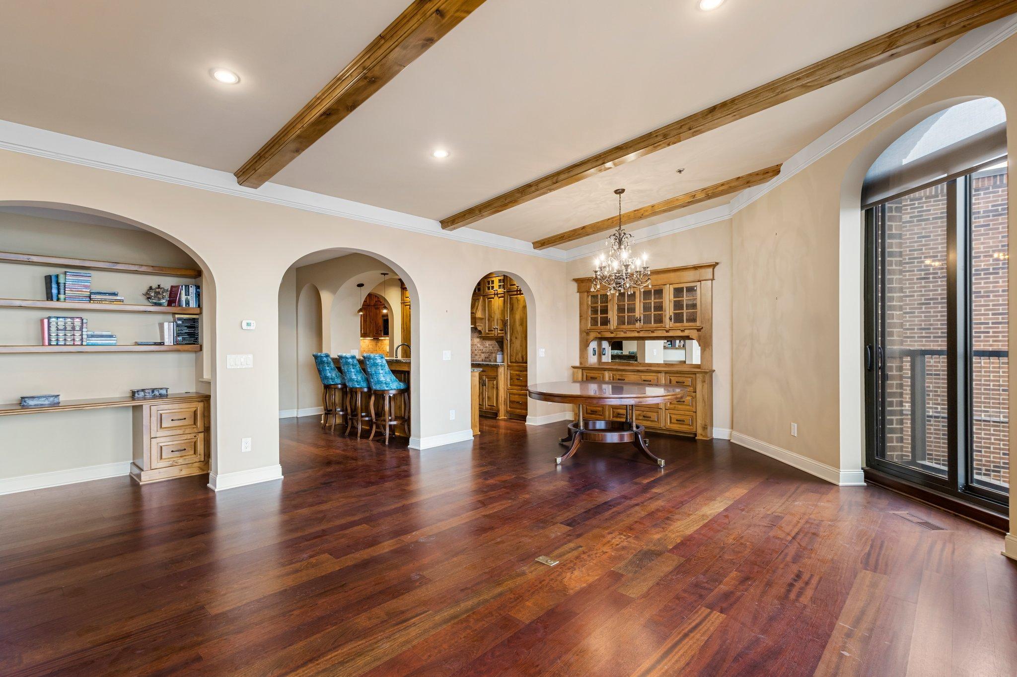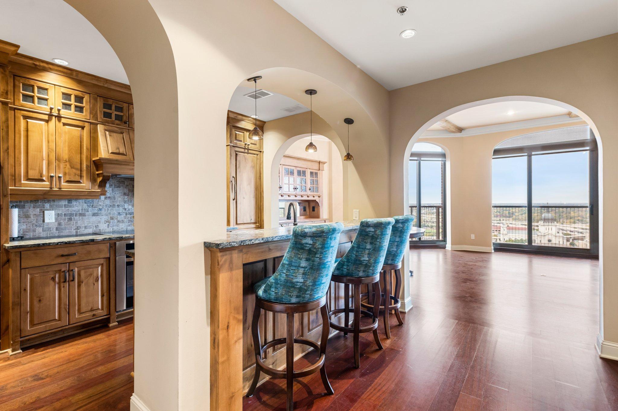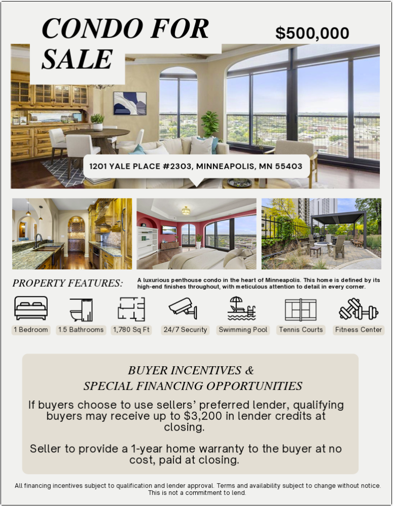 Welcome to 1201 Yale Place, Unit 2303, a luxurious penthouse condo in the heart of Minneapolis offering one bedroom and one-and-a-half bathrooms. This home is defined by its high-end finishes throughout, with meticulous attention to detail in every corner. The expansive floor-to-ceiling windows in both the living room and bedroom provide breathtaking views of the city, particularly during sunset. The open floor plan seamlessly connects the living, dining, and kitchen areas, which are all located on the upper level. The large kitchen features stainless steel appliances, a walk-in pantry, and breakfast bar seating, flowing effortlessly into the dining room and living room, making it perfect for casual dining and entertaining. The living and dining areas boast beautiful built-ins, while gorgeous beams draw the eye to the vaulted ceilings, adding elegance and character to the space. A gas-burning fireplace in the living room enhances the cozy atmosphere. The spacious bedroom suite is located on the lower level, offering huge walk-in closets and a spa-like bathroom with a walk-in shower for ultimate relaxation. The laundry room is conveniently located on the lower level as well, providing ease and efficiency in daily living. This multi-level condo also includes top-tier building amenities such as 24-hour security, an indoor pool, a library, a gym, tennis courts, and a beautifully maintained garden and courtyard. The location is incredibly walkable, placing you just steps from Minneapolis' premier attractions such as the Walker Art Center, Sculpture Garden, Loring Park, Orchestra Hall, and Nicollet Mall. You're also within walking distance of Target Field, U.S. Bank Stadium, and Target Center. With its premium finishes, remarkable views, and exceptional building amenities, this penthouse offers a rare opportunity for luxury living in one of the city's most vibrant areas.