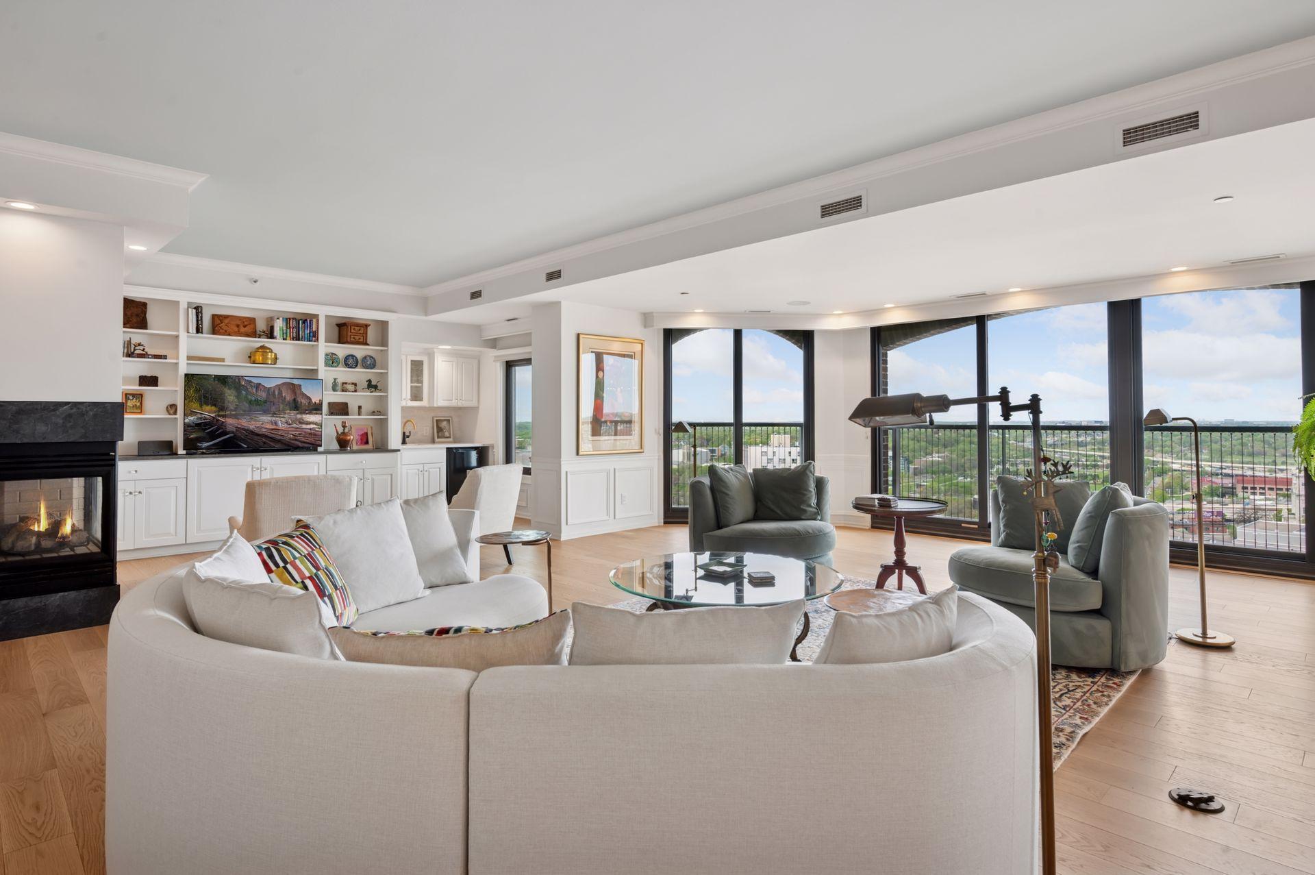 Awesome breathtaking views and sunsets from this stunning city condo. Grand sized living room is now open to updated and upgraded kitchen. New rich hardwood floors throughout. Sumptuous primary suite with complete remodel of promary bath with separate shower and soaking tub plus bay window and private balcony. Marble fireplace and wonderful new custom case piece with wet bar. New lighting, fresh paint, all this and more. As good as it gets! Loring Green amenities are beyond compare. Move in and enjoy the new Loring Green Plaza and great lawn.