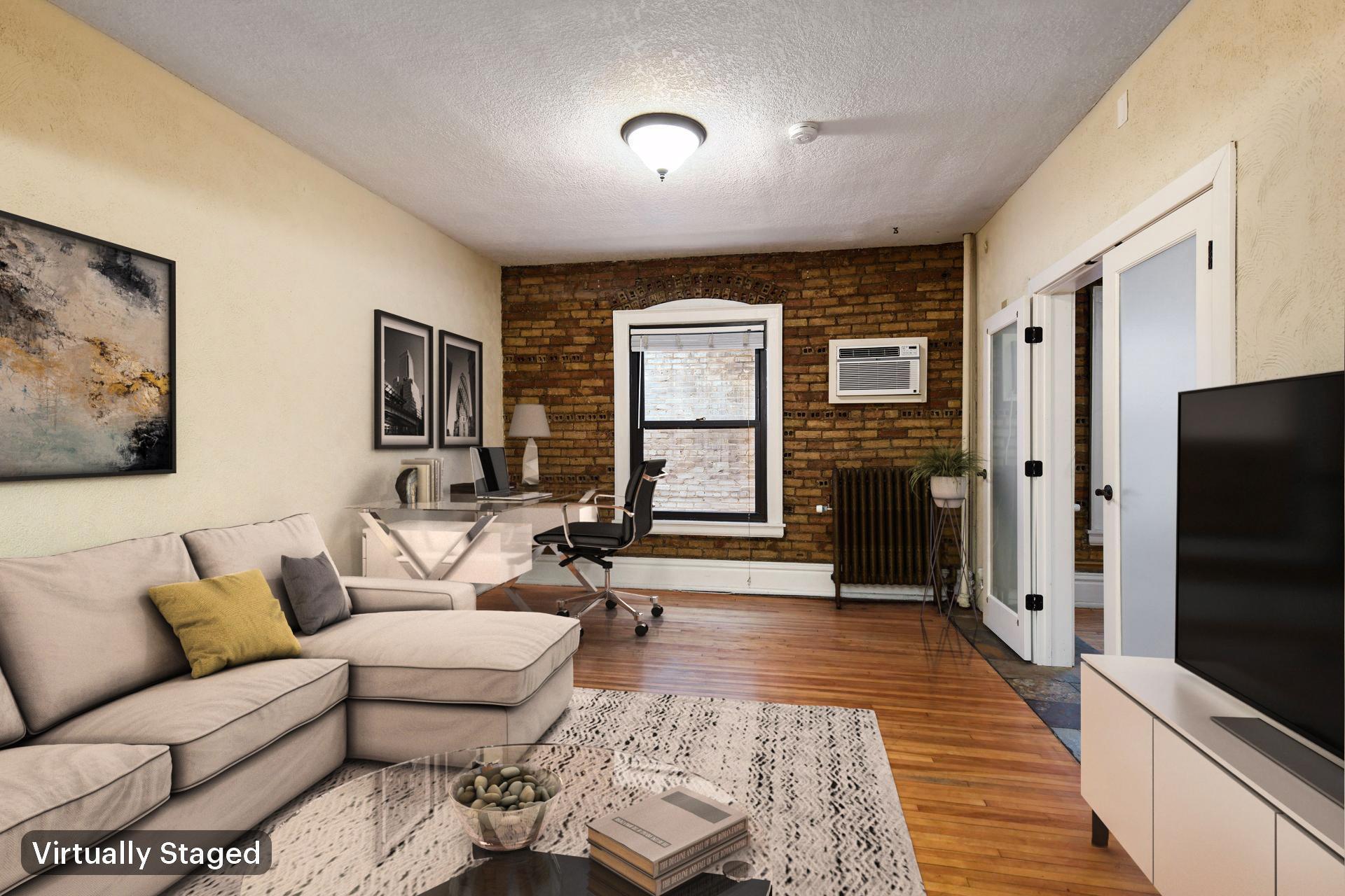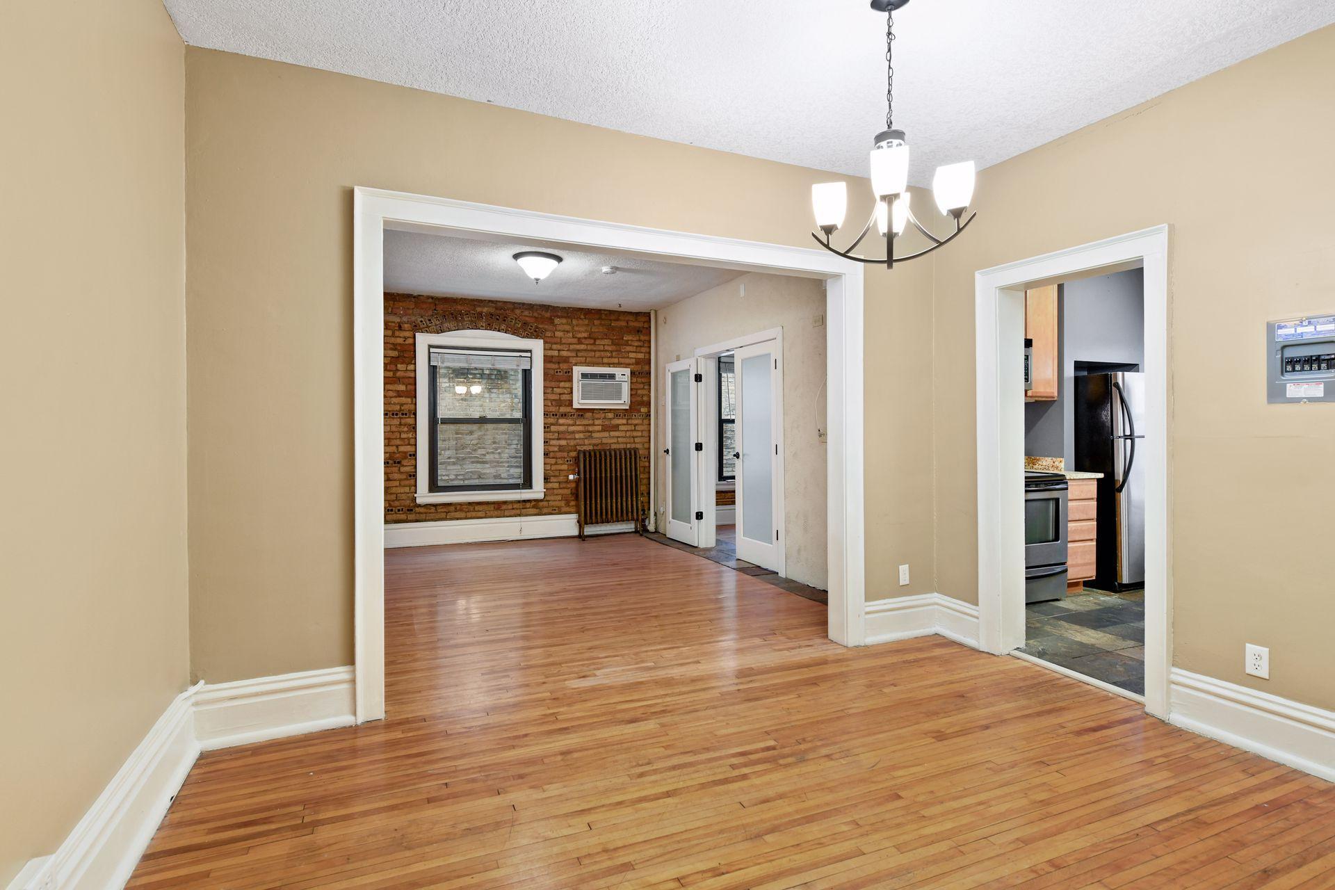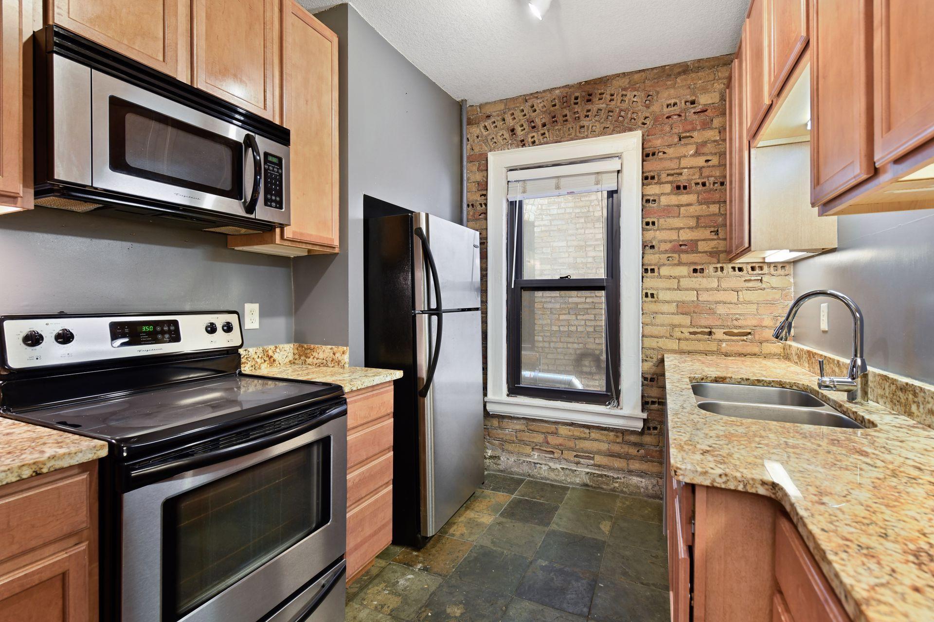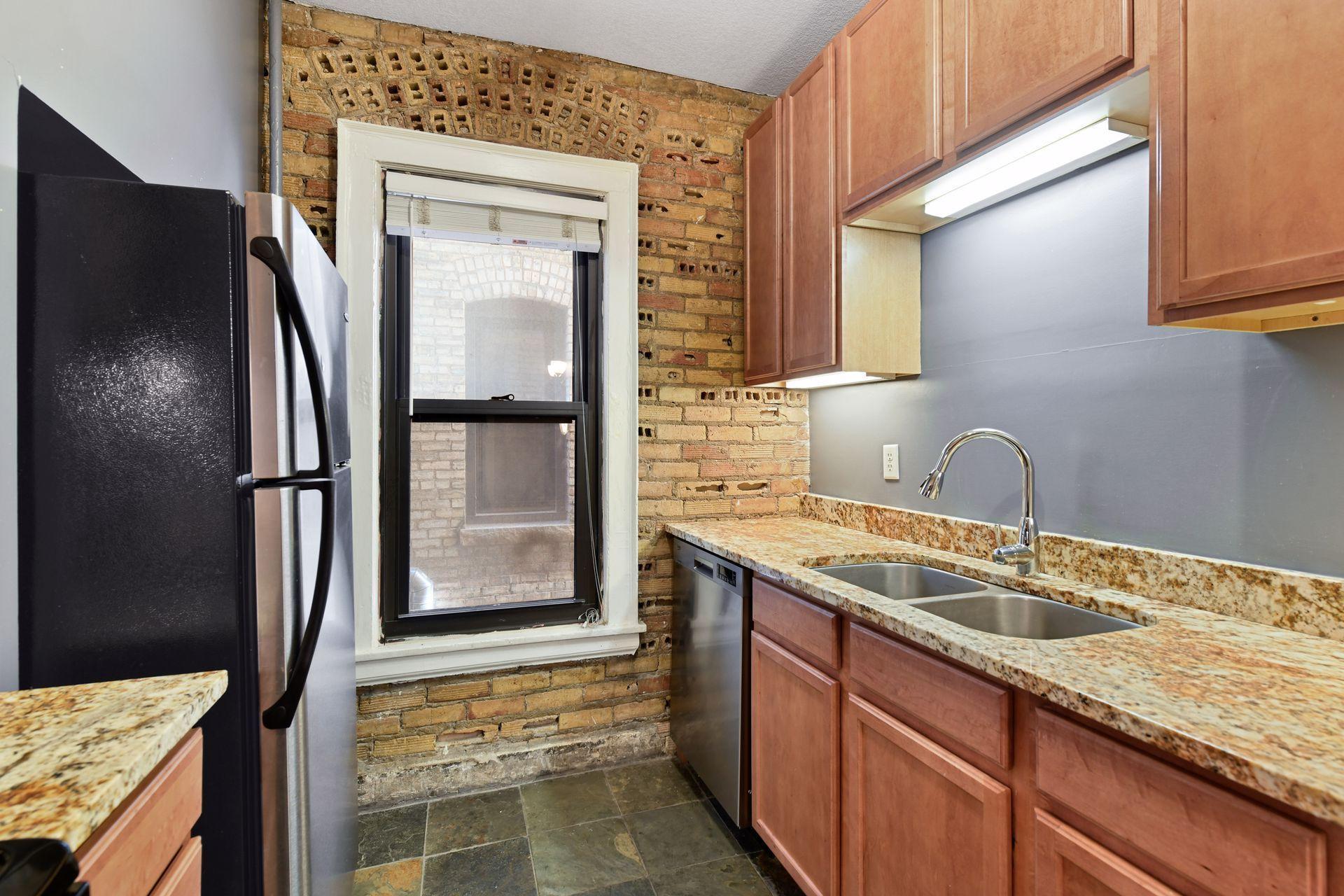 Historic 1BR loft with exposed brick, hardwood flooring and tons of closet space at Kenosha Condos. Kitchen features granite countertops, ample cabinetry and stainless steel appliances. The Kenosha building is a 1907 Manhattan-style landmark with Buca Di Beppo on the garden level, sharing the block with Lunds and Byerlys; and just steps away from Nicollet Mall, and Loring Park. Heat and Water/Sewer/Trash included with rent. Tenant responsible for electricity and gas. Contract ramp parking available ½ a block away on Harmon Pl. App Fee: $78 per adult; Admin Fee: $150; HOA Move-in Fee: $150; Security Deposit is One Month’s Rent.