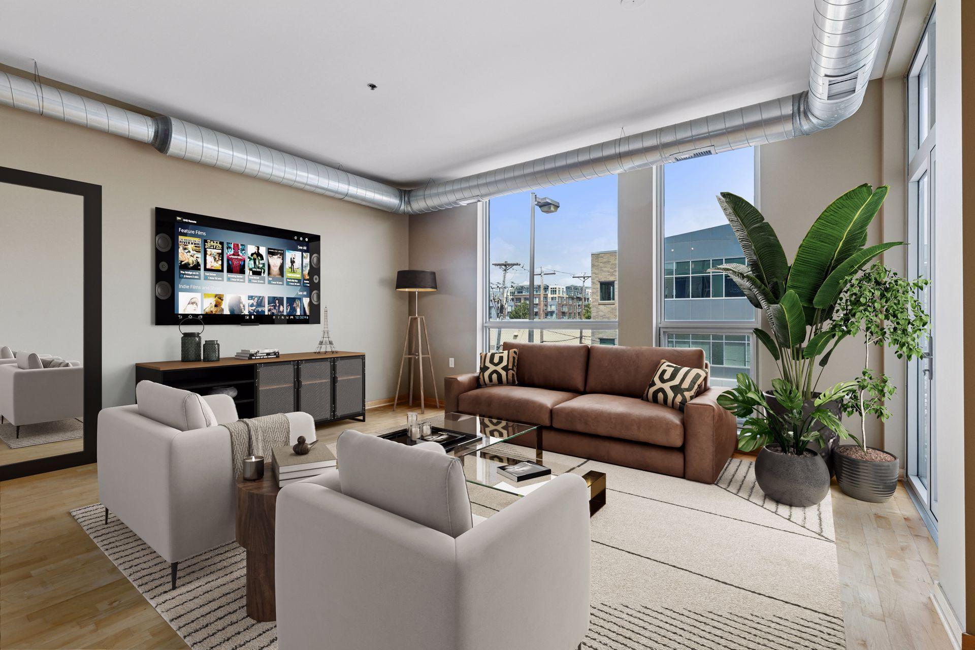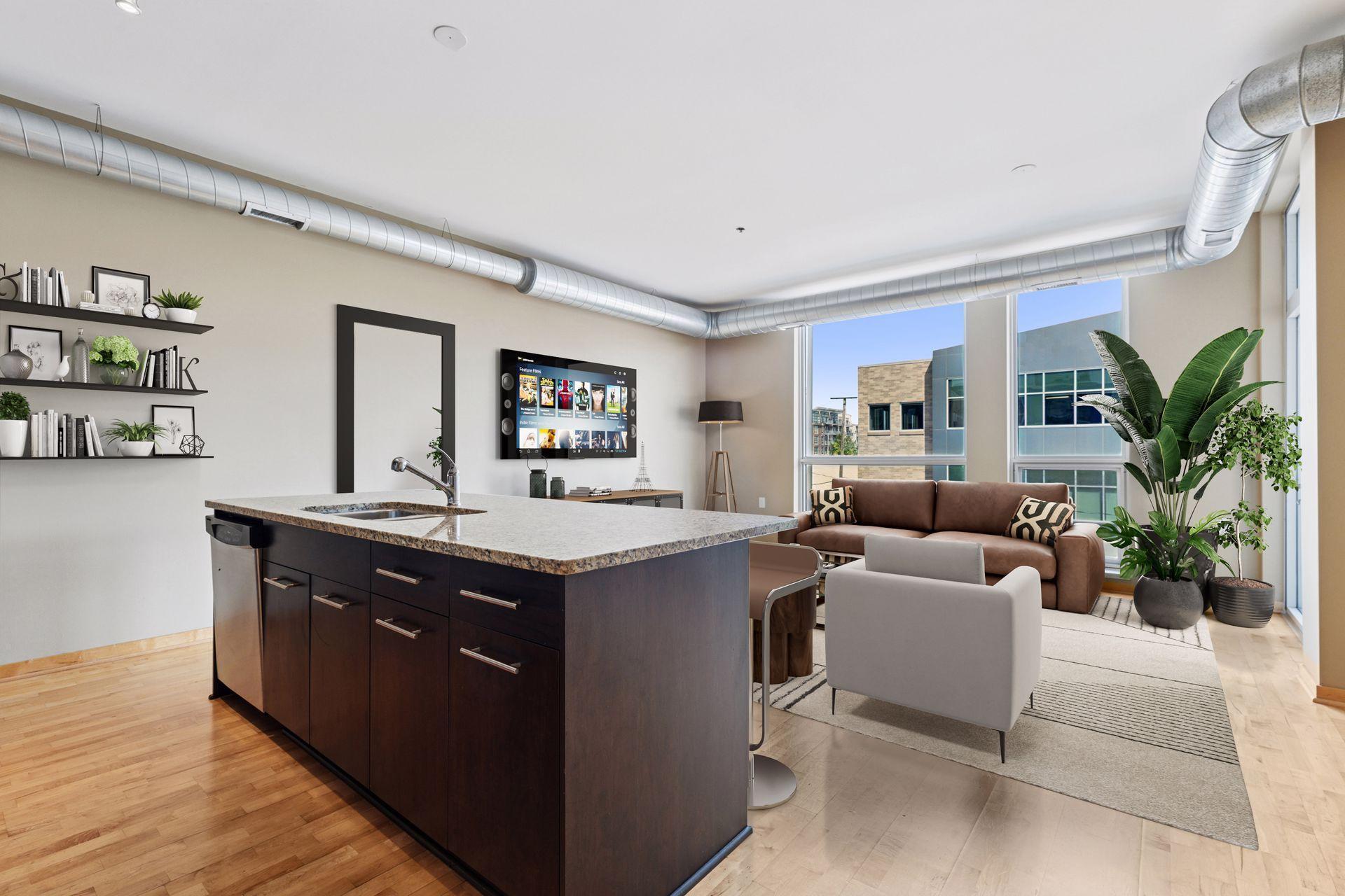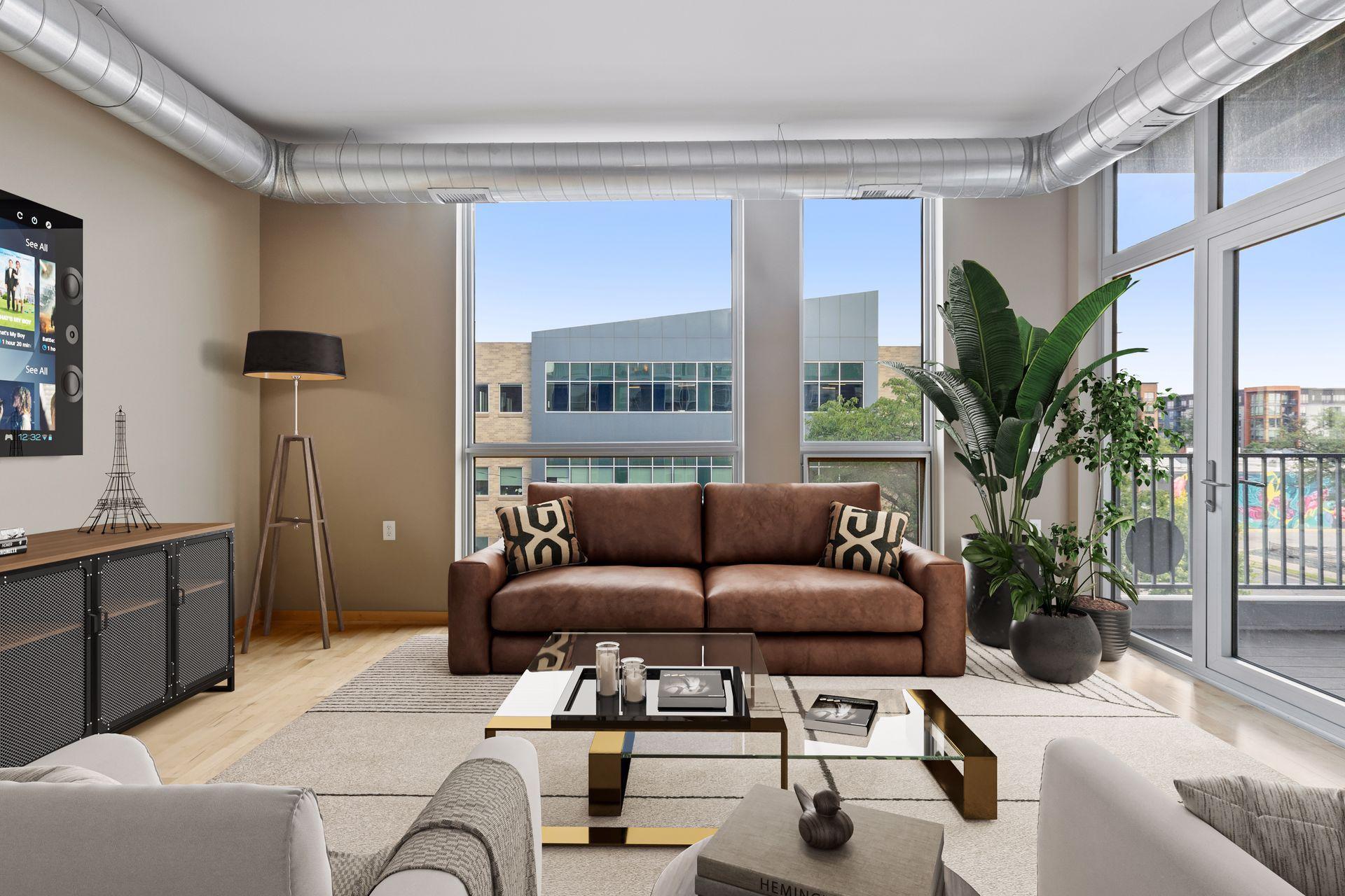 Incredible opportunity to own in a highly walk-able and vibrant uptown location..Lumen on Lagoon! Close to shops, grocery, cafes, restaurants & theaters, and the Midtown Greenway bike trail is one block away. Spacious rooms, tall ceilings & great natural light, this newer built condo lives so comfortably. With 2 bedrooms and 2 baths, it's a great setup for guests, roommates or home office. Center island kitchen w/ stainless appliances. Living room w/ floor to ceiling windows walks out to your private balcony overlooking the city. Private in-Unit washer and dryer. Comes with 1 assigned underground & heated parking space. Enjoy the convenience of this move-in ready condo today!