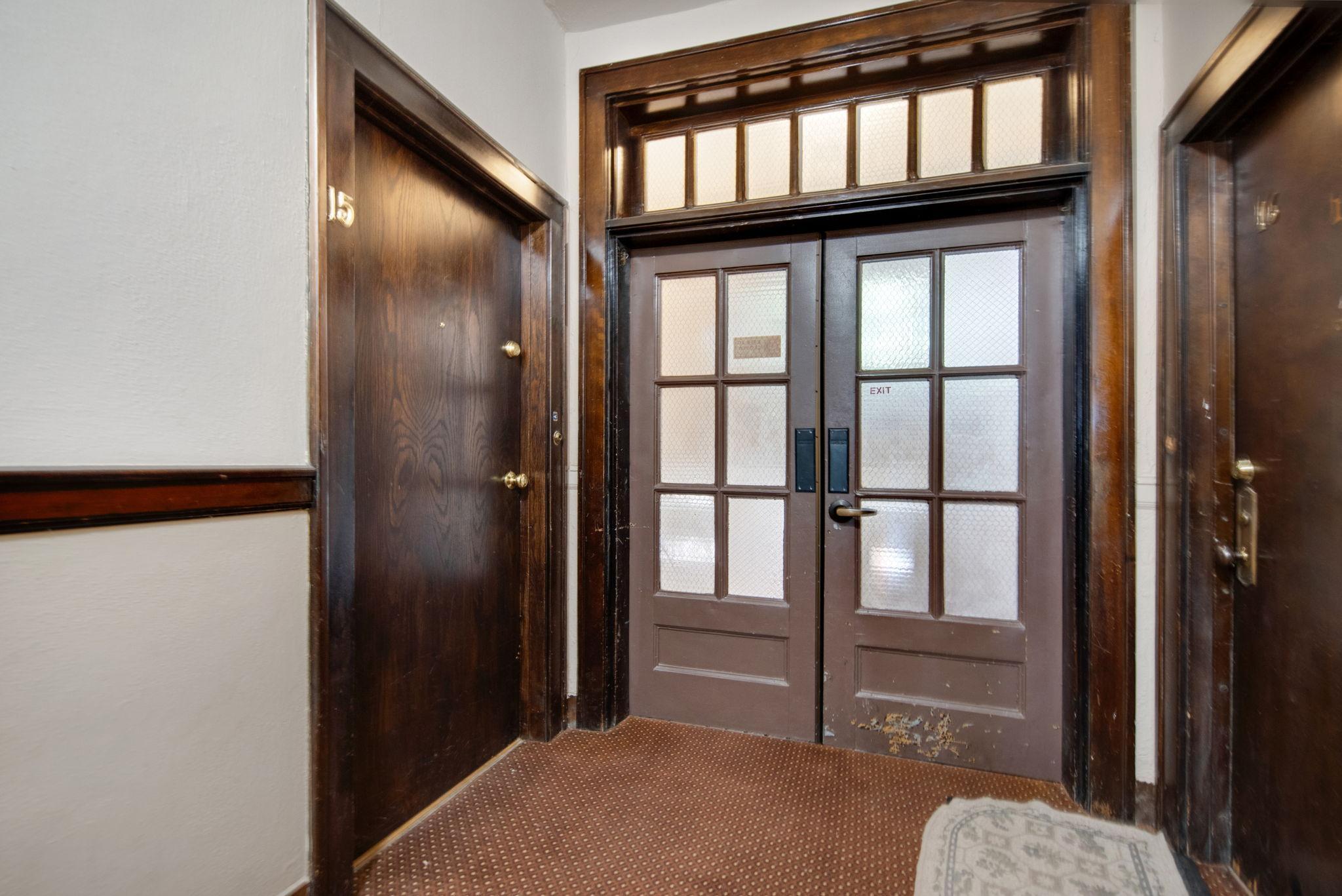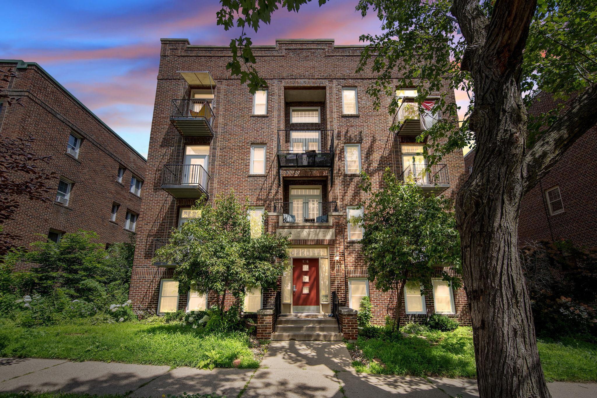 Charming Brownstone Condo Overlooking Powderhorn Park on a whisper quiet street calls for always easy parking and feels like feels like a touch of nature in the city! This is one of just five classic 1917 brownstones gracing the park’s edge in South Minneapolis. Nine-foot ceilings, tile floors intentionally designed to compliment the vintage of the building, and tall French windows flood the 445 sq ft first-floor home with natural light and a surprising sense of volume. The cleverly designed and a fully owner occupied building is noticeably quiet. This unit feels tucked away with the bedroom farthest from the hallway along the brick exterior walls,(some units have even exposed the brick for aesthetic) Shared balconies on every level gaze over the park’s winding trails on one side, and catch the downtown skyline at sunset. Everyday ease with secure entry, Apple Pay laundry just one flight down, locking bike racks, and a dedicated basement storage unit for gear of all kinds. Worry-Free Comfort with heat, exterior maintenance, and more are included in low HOA dues; new electrical service and high speed Wi-Fi readiness mean seamless modern living. Unbeatable location is a short stroll to Midtown Global Market, Cub, Aldi, Target, cafés, bus lines, and bike routes that connect you to lakes, trails, and downtown in minutes. Come see how peaceful park-side living can be!