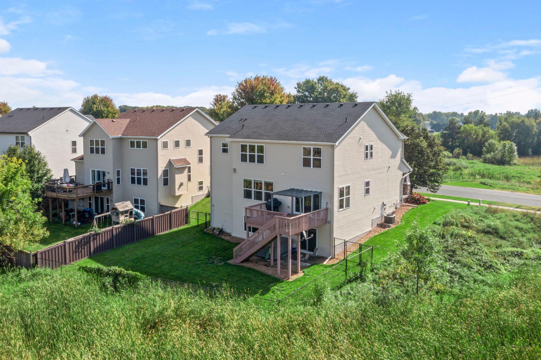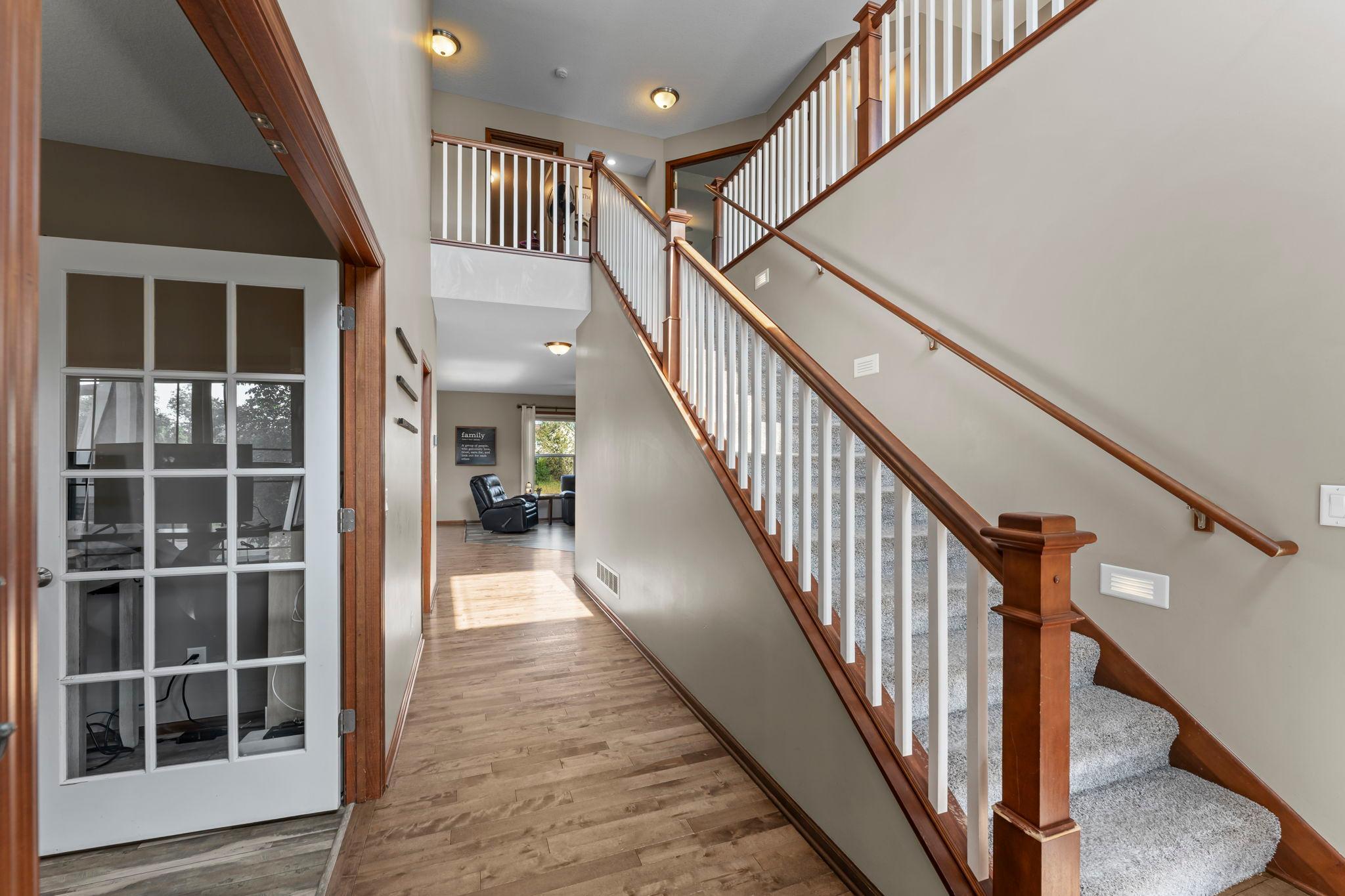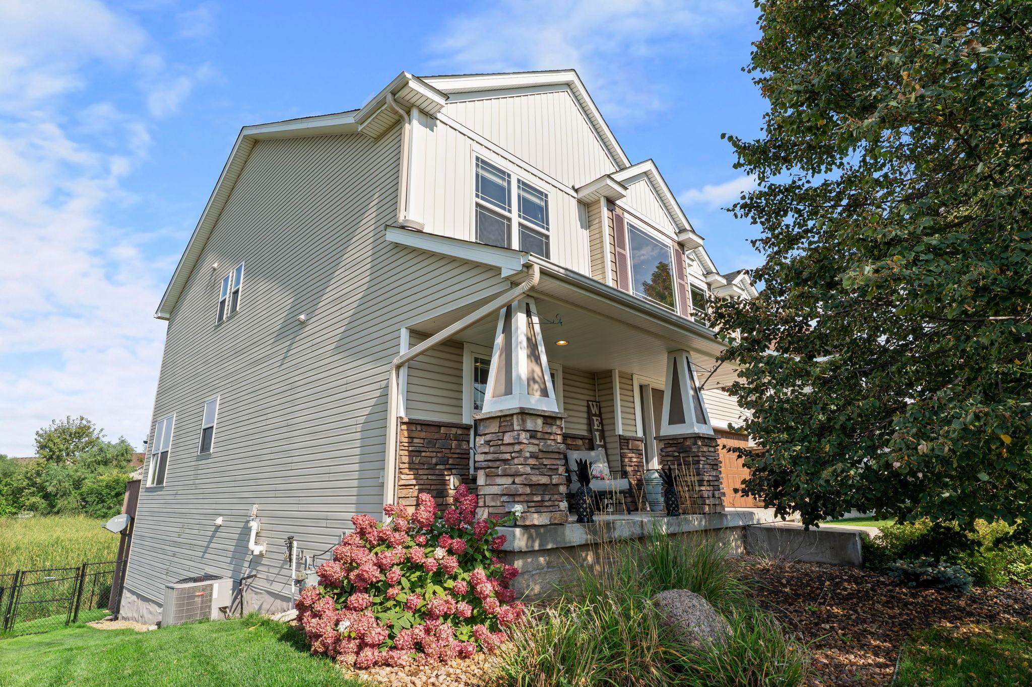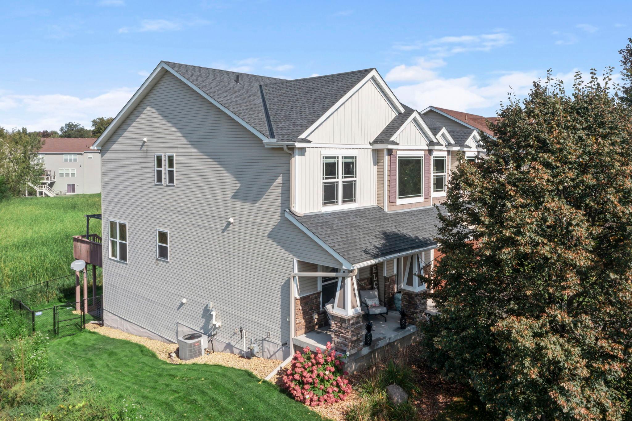This spacious two-story in Blaine offers everything you’ve been looking for, starting with a welcoming covered front porch and a bright two-story foyer. French doors open to a main floor office, giving you a quiet space to work or study. The open floor plan makes daily living and entertaining easy, with the living room, dining room, and kitchen flowing together seamlessly. You’ll love the kitchen’s walk-in pantry, new refrigerator (2024), and new dishwasher (2023). Just off the dining area, a deck with stairs leads down to your private fenced yard overlooking nature and wetlands. Upstairs, you’ll find four generous bedrooms, each with its own walk-in closet, a loft, laundry room, and a private primary suite. The finished walk-out lower level adds a family room, fifth bedroom with walk-in closet, bath, and access to a patio under the deck. Major updates include a new roof, soffits, fascia, and rear windows (2019), flooring (2020), and garage doors/openers (2023). The 3-car tandem garage is insulated, sheet-rocked, and finished with epoxy floors. All of this is within walking distance to Sunrise Elementary, Lexington Athletic Complex, parks, and trails—making this the perfect place to call home.