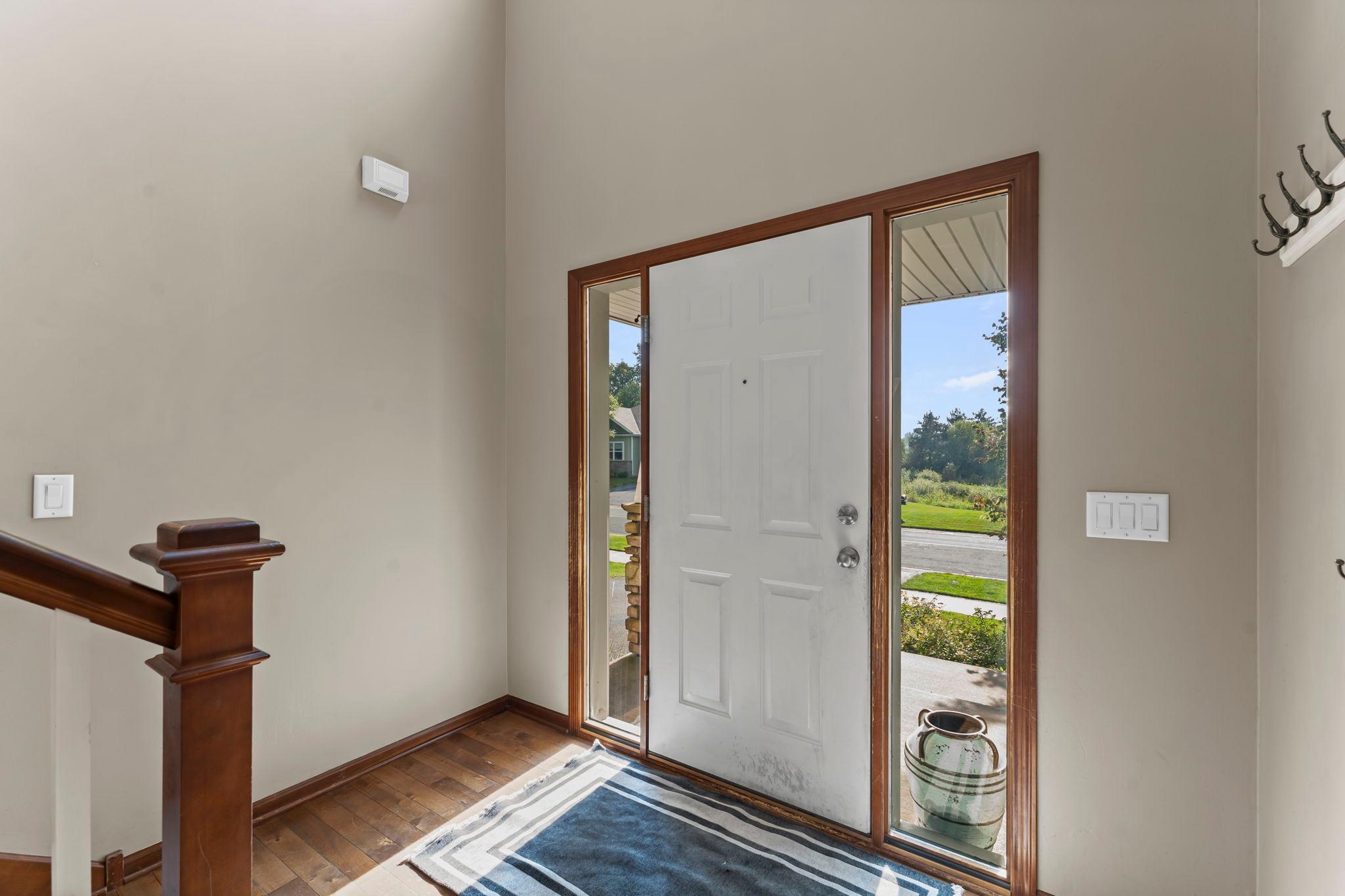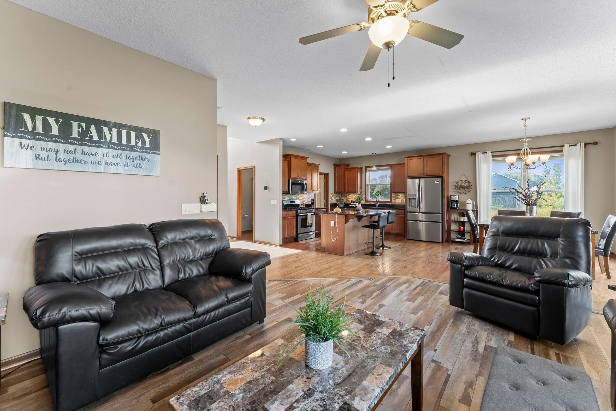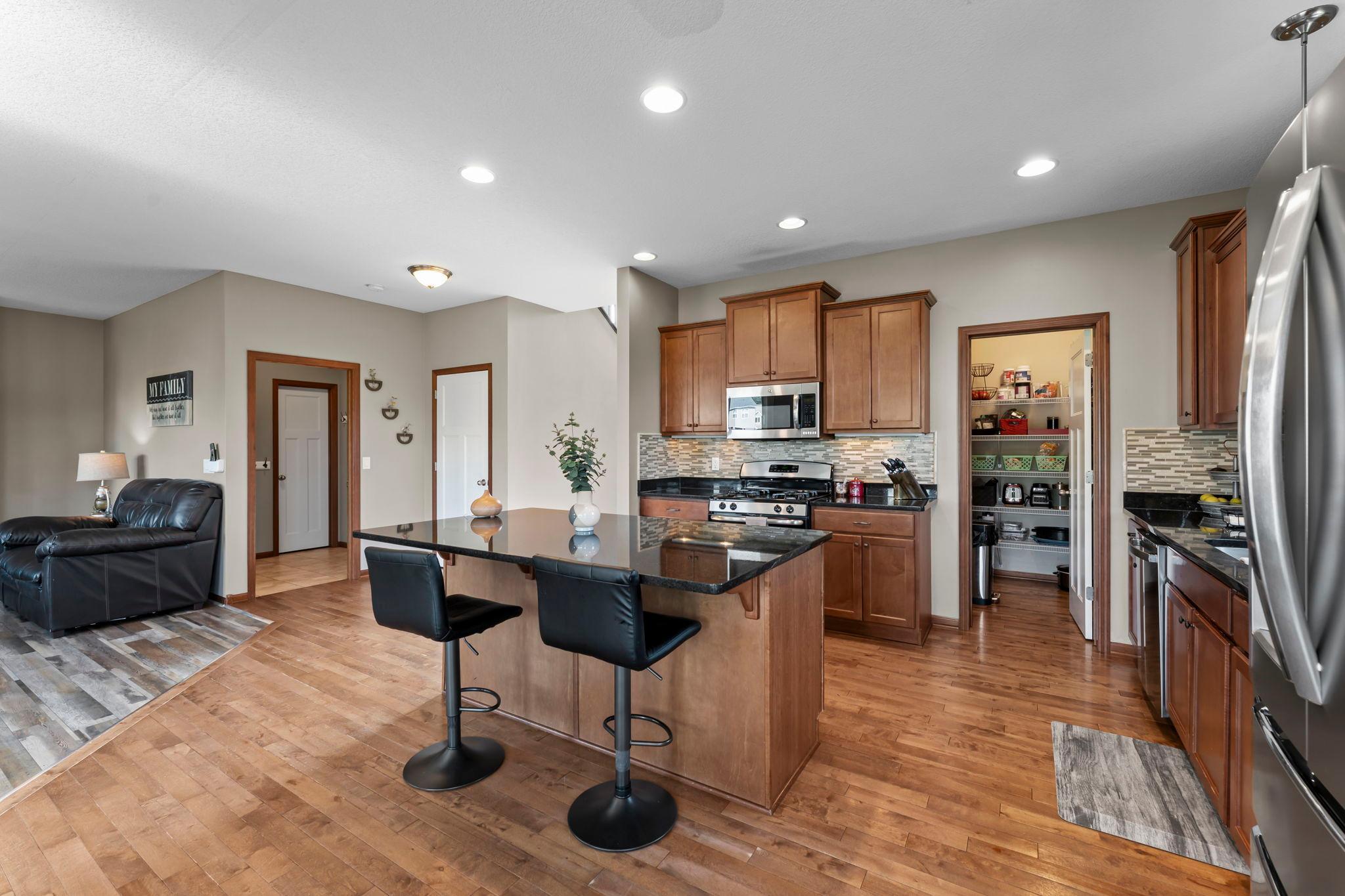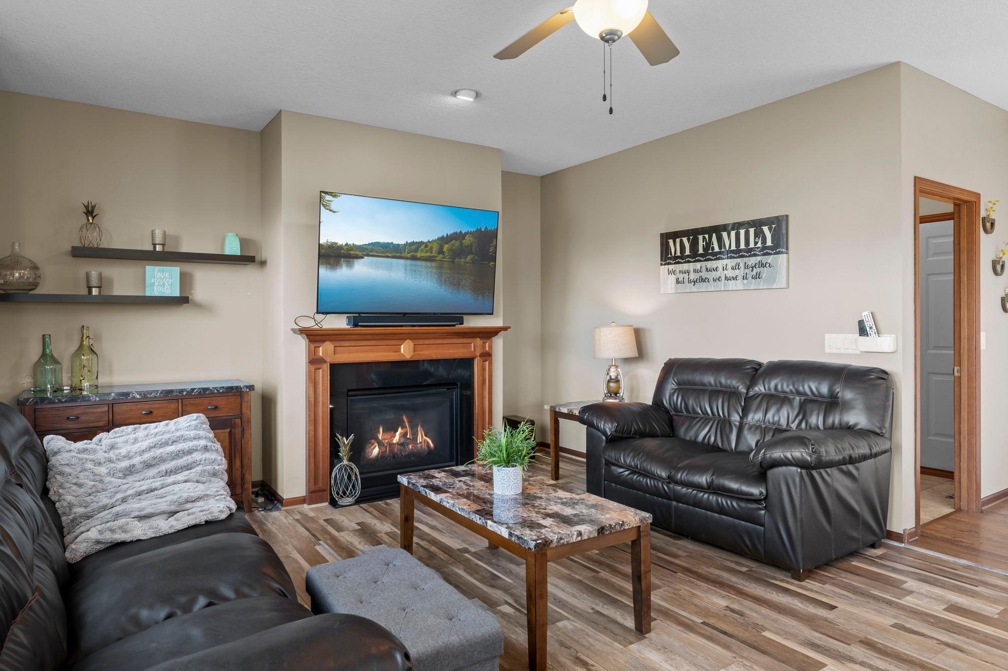 This spacious two-story in Blaine offers everything you’ve been looking for, starting with a welcoming covered front porch and a bright two-story foyer. French doors open to a main floor office, giving you a quiet space to work or study. The open floor plan makes daily living and entertaining easy, with the living room, dining room, and kitchen flowing together seamlessly. You’ll love the kitchen’s walk-in pantry, new refrigerator (2024), and new dishwasher (2023). Just off the dining area, a deck with stairs leads down to your private fenced yard overlooking nature and wetlands. Upstairs, you’ll find four generous bedrooms, each with its own walk-in closet, a loft, laundry room, and a private primary suite. The finished walk-out lower level adds a family room, fifth bedroom with walk-in closet, bath, and access to a patio under the deck. Major updates include a new roof, soffits, fascia, and rear windows (2019), flooring (2020), and garage doors/openers (2023). The 3-car tandem garage is insulated, sheet-rocked, and finished with epoxy floors. All of this is within walking distance to Sunrise Elementary, Lexington Athletic Complex, parks, and trails—making this the perfect place to call home.