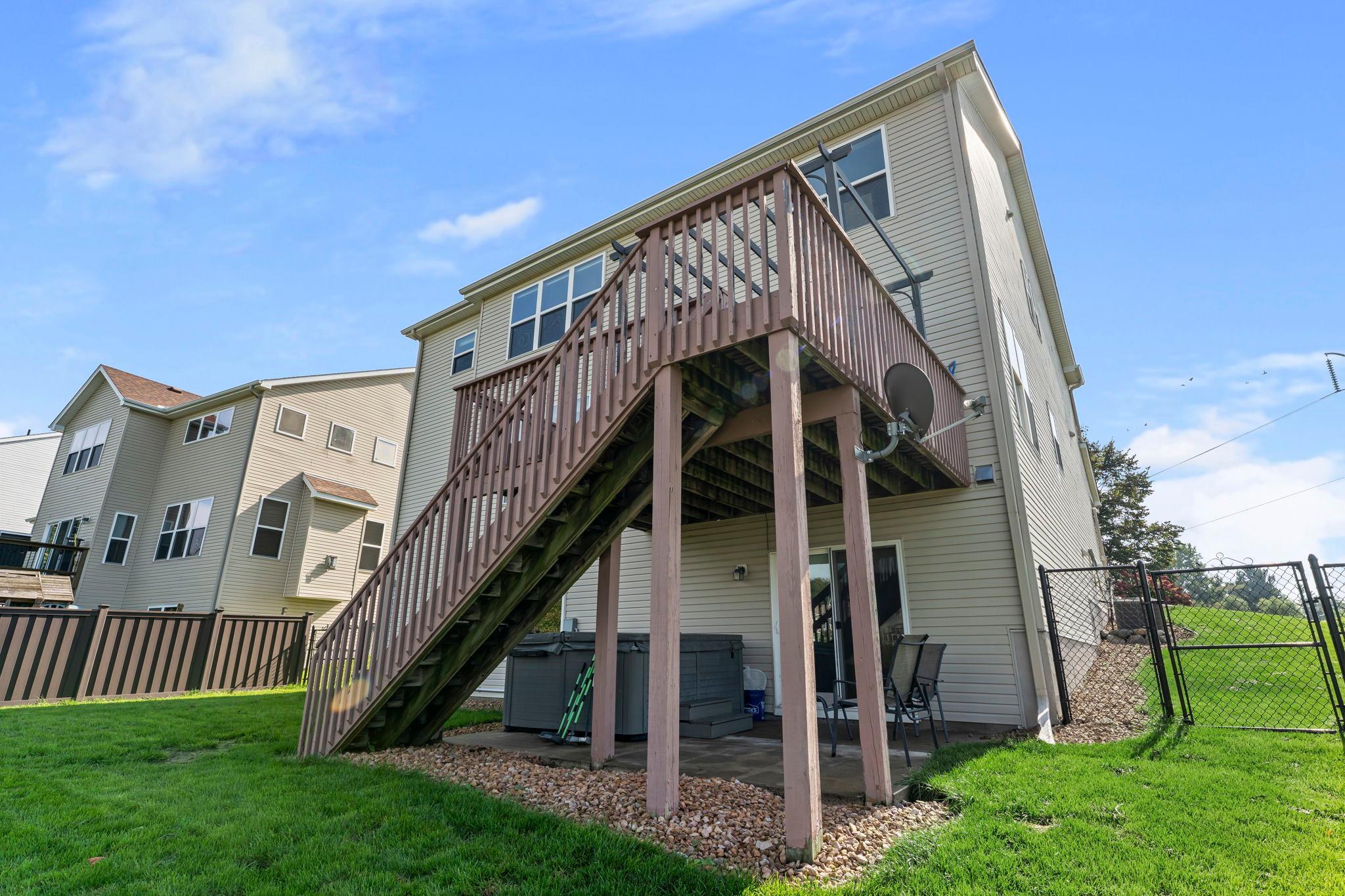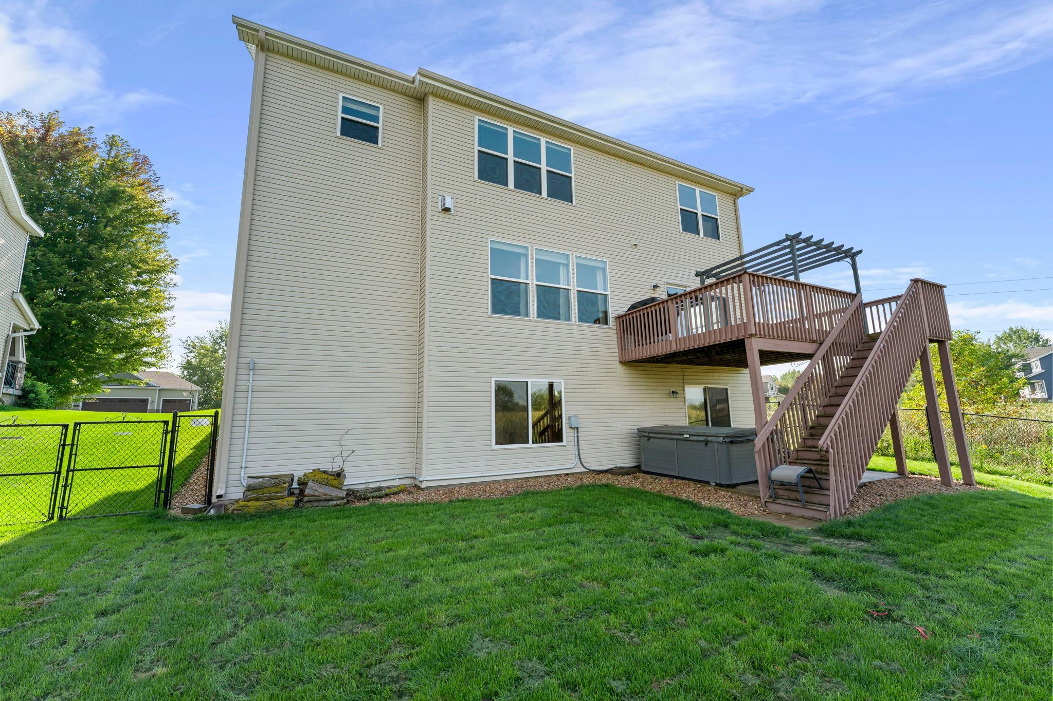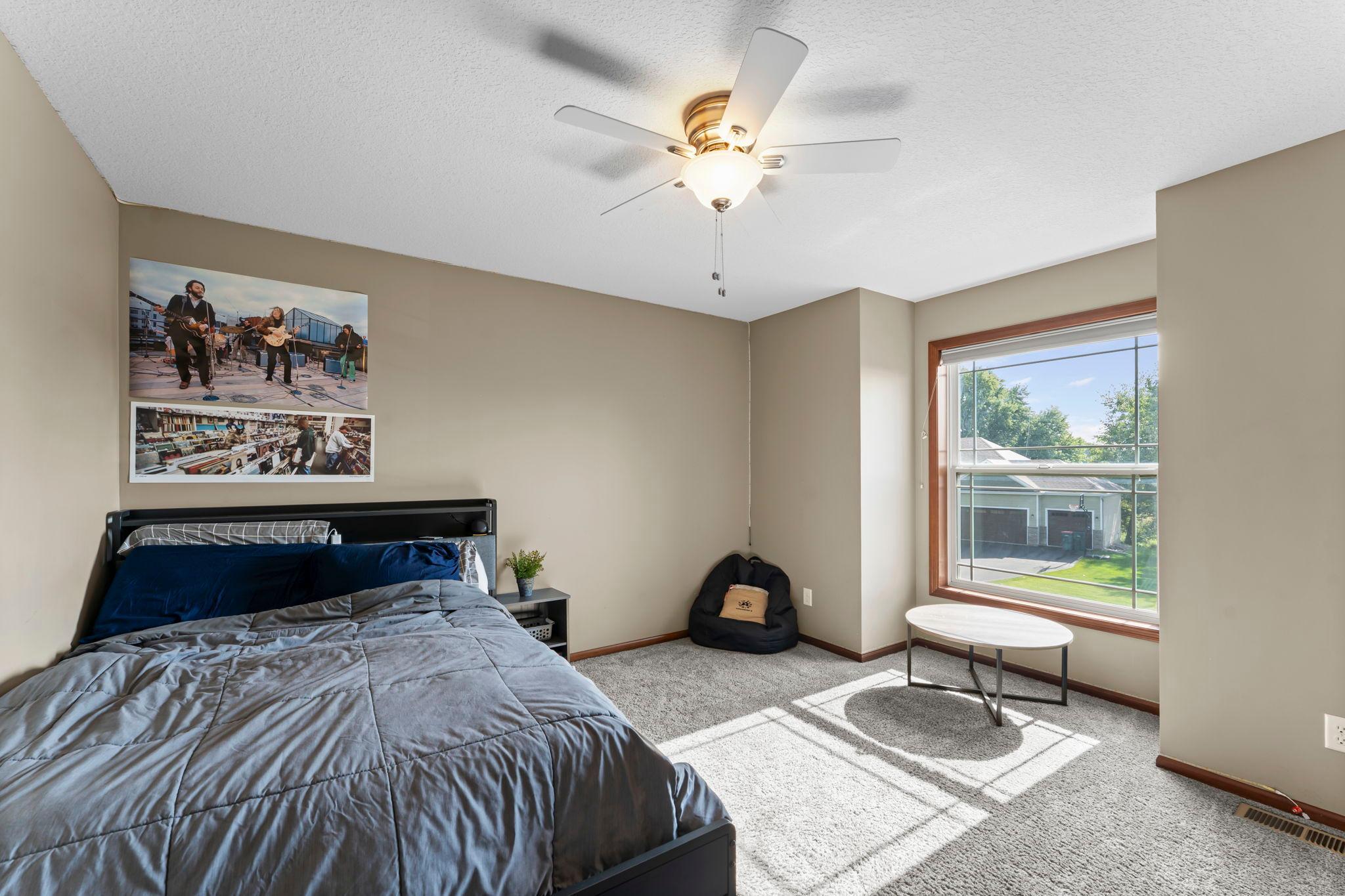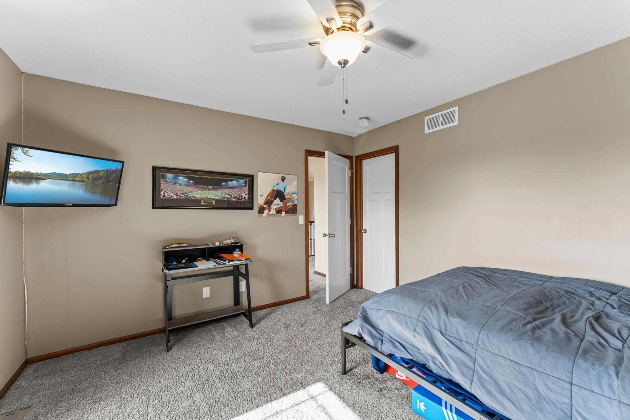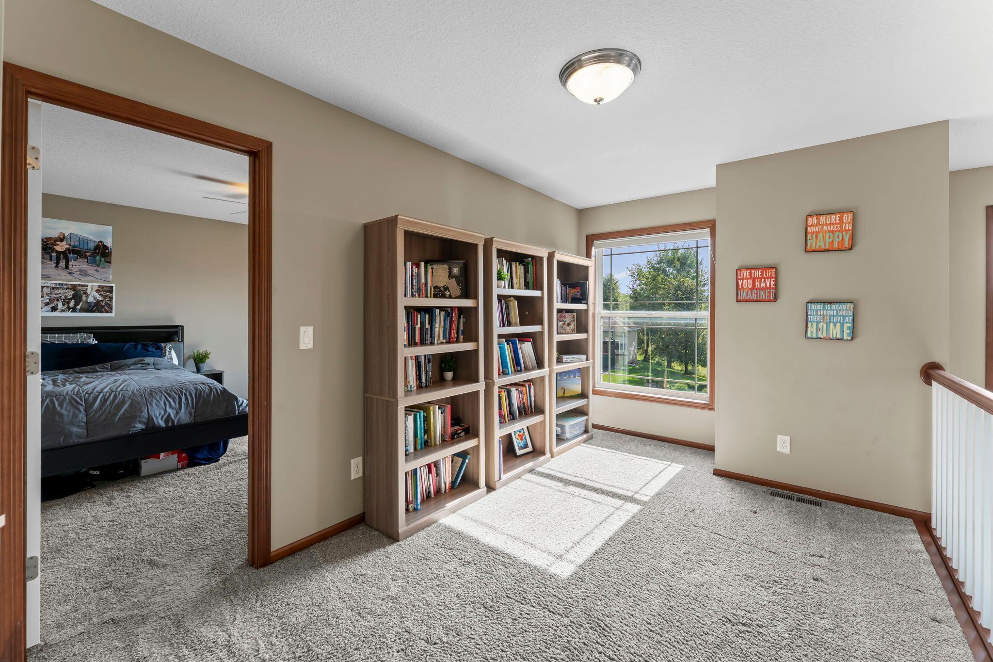 This spacious two-story in Blaine offers everything you’ve been looking for, starting with a welcoming covered front porch and a bright two-story foyer. French doors open to a main floor office, giving you a quiet space to work or study. The open floor plan makes daily living and entertaining easy, with the living room, dining room, and kitchen flowing together seamlessly. You’ll love the kitchen’s walk-in pantry, new refrigerator (2024), and new dishwasher (2023). Just off the dining area, a deck with stairs leads down to your private fenced yard overlooking nature and wetlands. Upstairs, you’ll find four generous bedrooms, each with its own walk-in closet, a loft, laundry room, and a private primary suite. The finished walk-out lower level adds a family room, fifth bedroom with walk-in closet, bath, and access to a patio under the deck. Major updates include a new roof, soffits, fascia, and rear windows (2019), flooring (2020), and garage doors/openers (2023). The 3-car tandem garage is insulated, sheet-rocked, and finished with epoxy floors. All of this is within walking distance to Sunrise Elementary, Lexington Athletic Complex, parks, and trails—making this the perfect place to call home.