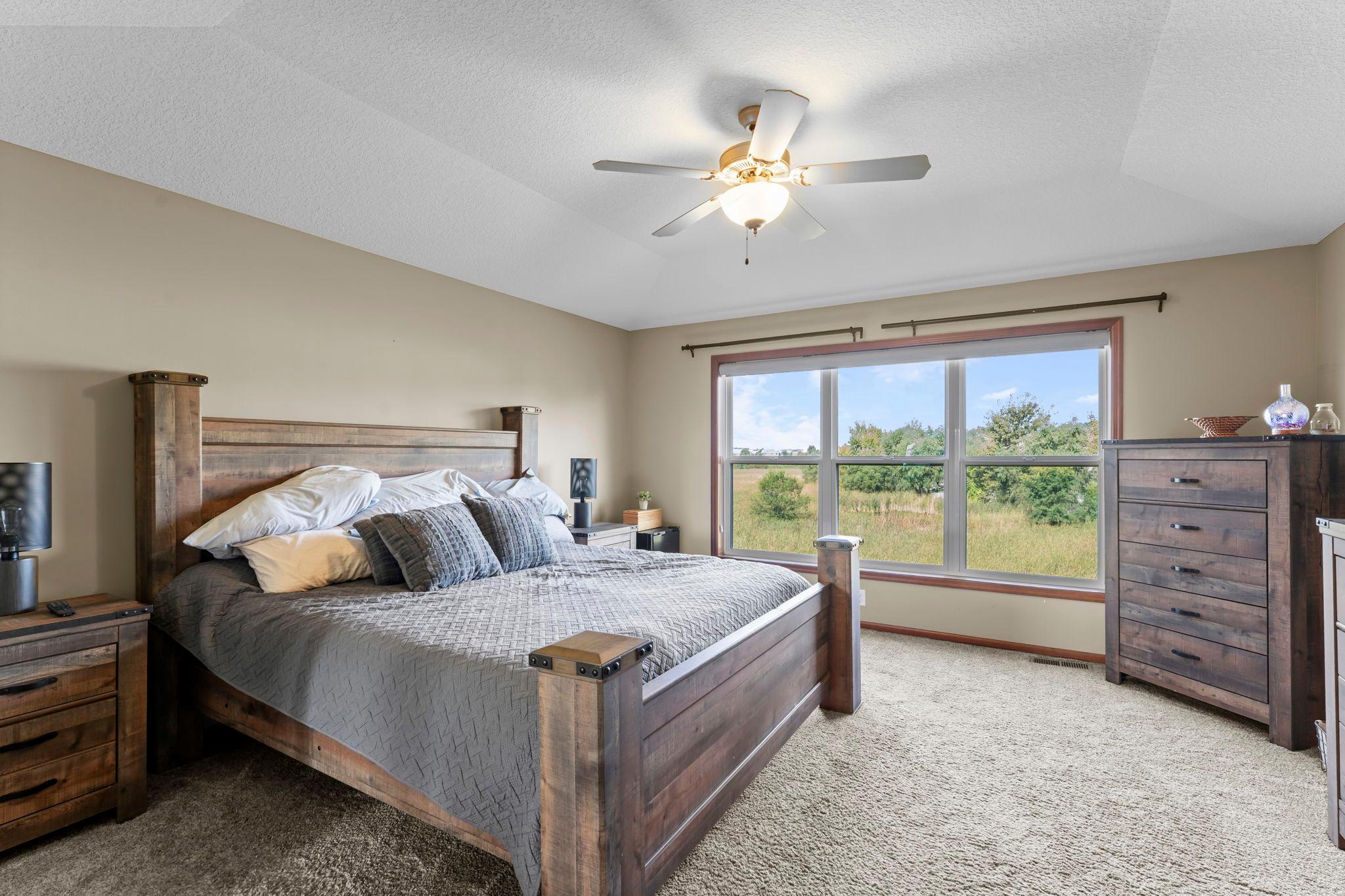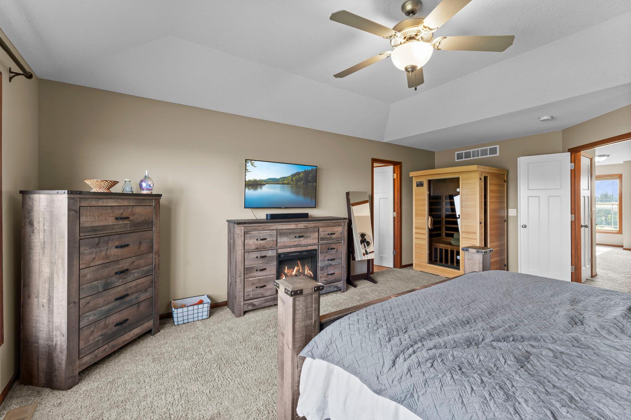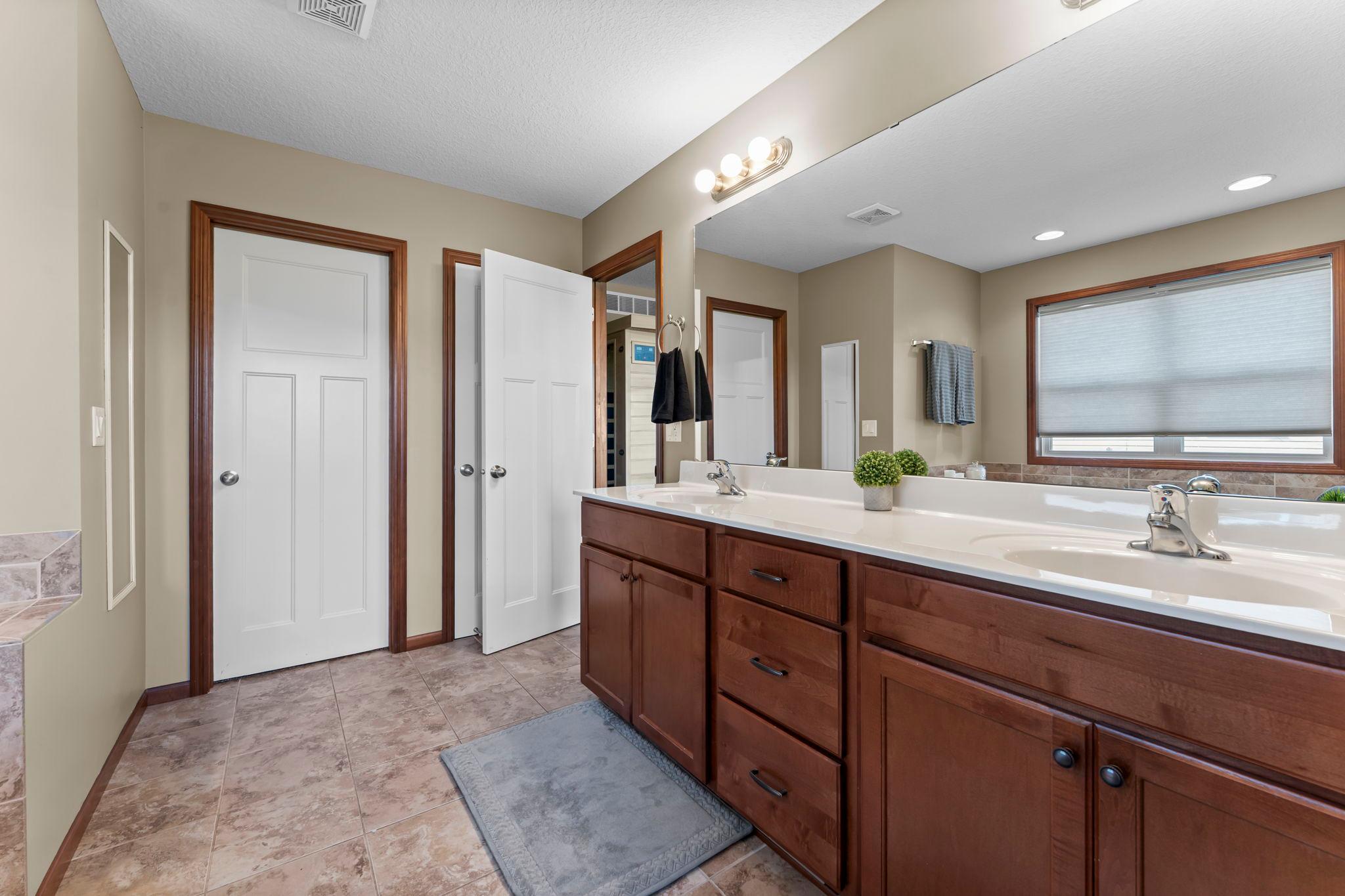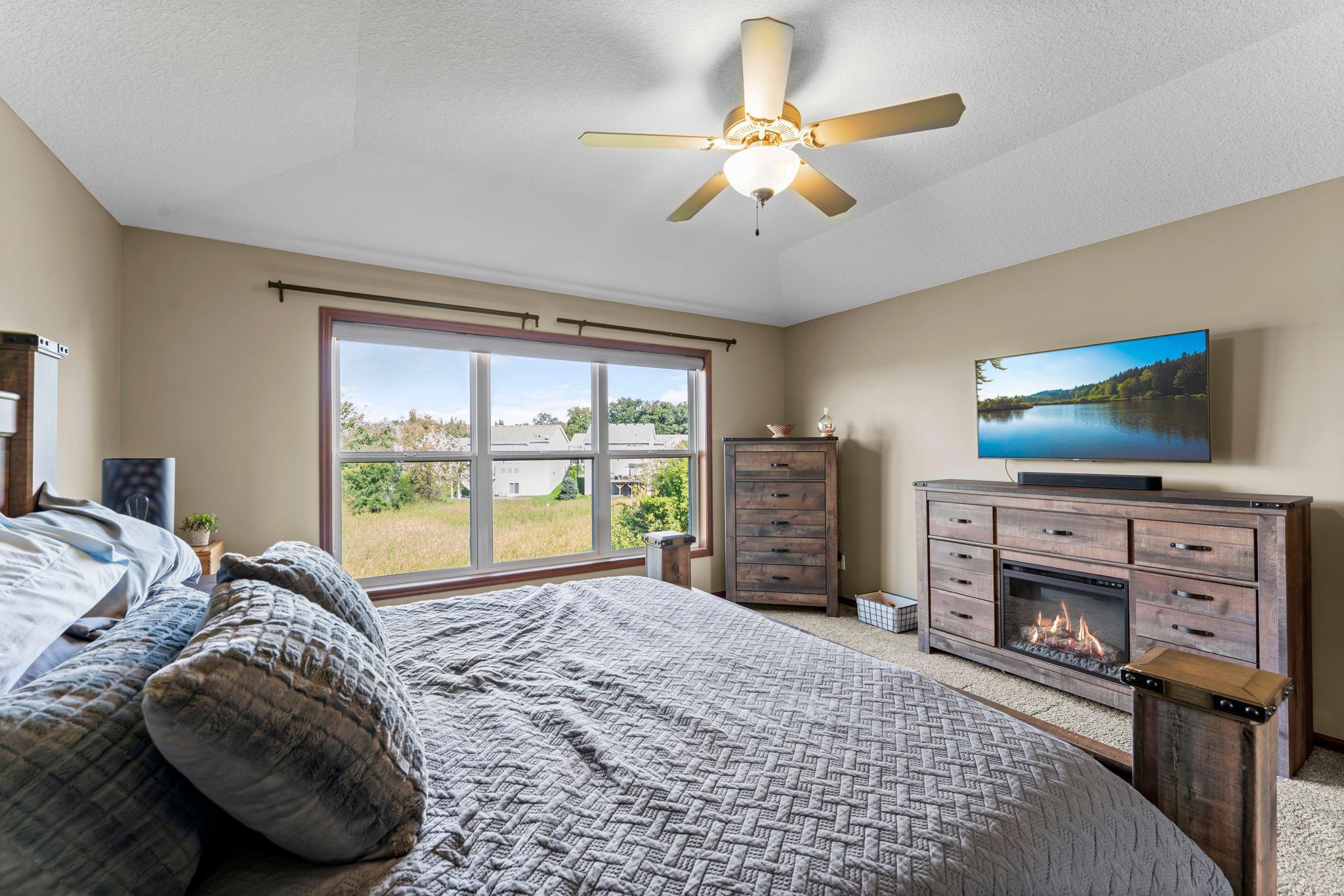This spacious two-story in Blaine offers everything you’ve been looking for, starting with a welcoming covered front porch and a bright two-story foyer. French doors open to a main floor office, giving you a quiet space to work or study. The open floor plan makes daily living and entertaining easy, with the living room, dining room, and kitchen flowing together seamlessly. You’ll love the kitchen’s walk-in pantry, new refrigerator (2024), and new dishwasher (2023). Just off the dining area, a deck with stairs leads down to your private fenced yard overlooking nature and wetlands. Upstairs, you’ll find four generous bedrooms, each with its own walk-in closet, a loft, laundry room, and a private primary suite. The finished walk-out lower level adds a family room, fifth bedroom with walk-in closet, bath, and access to a patio under the deck. Major updates include a new roof, soffits, fascia, and rear windows (2019), flooring (2020), and garage doors/openers (2023). The 3-car tandem garage is insulated, sheet-rocked, and finished with epoxy floors. All of this is within walking distance to Sunrise Elementary, Lexington Athletic Complex, parks, and trails—making this the perfect place to call home.