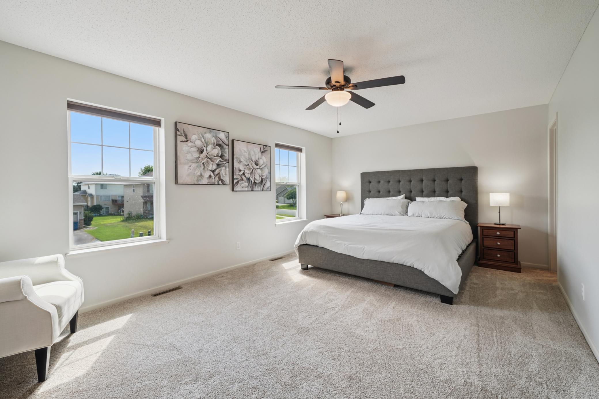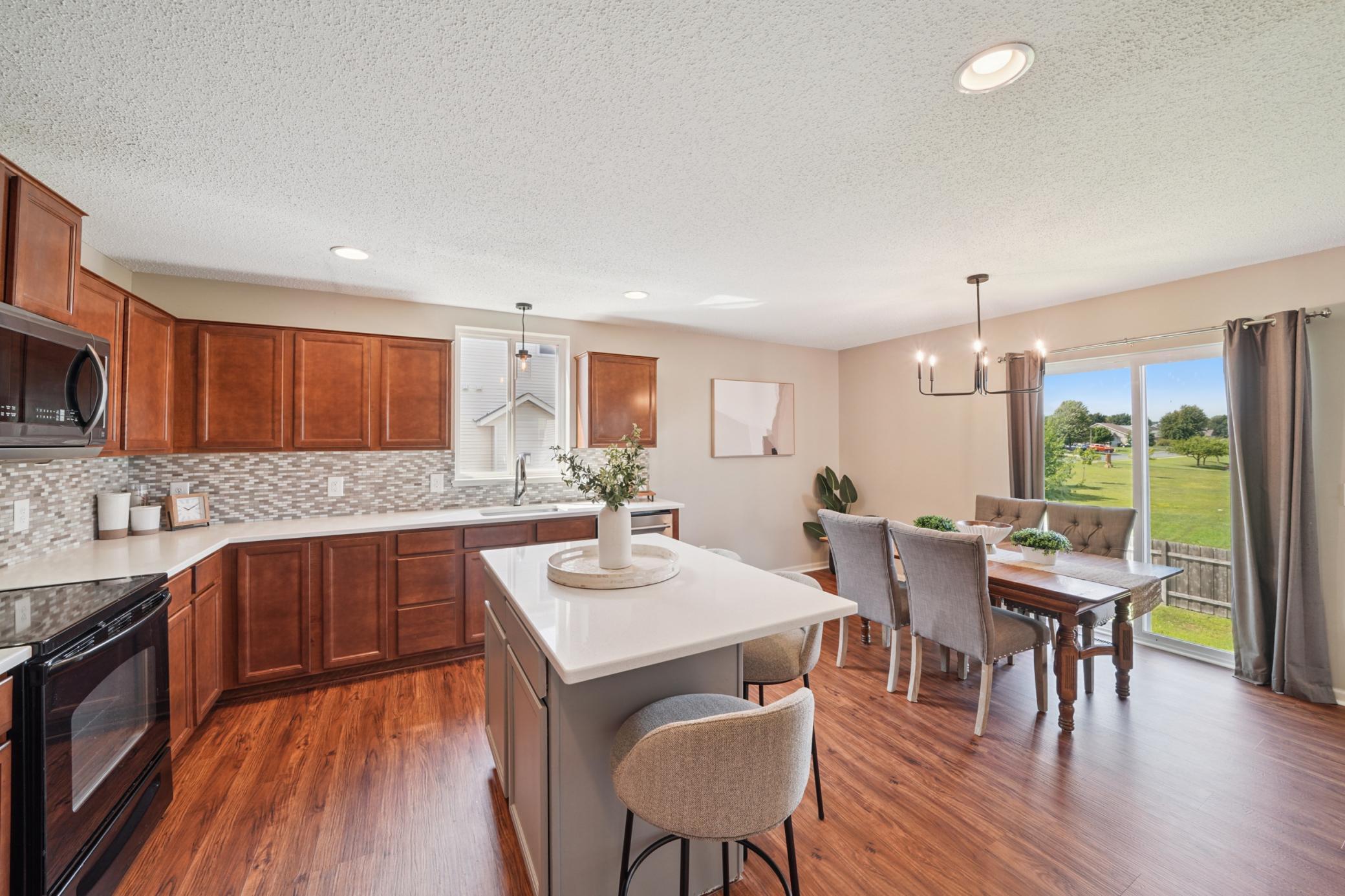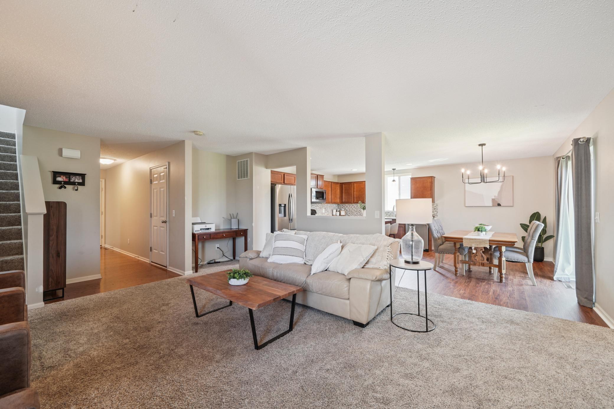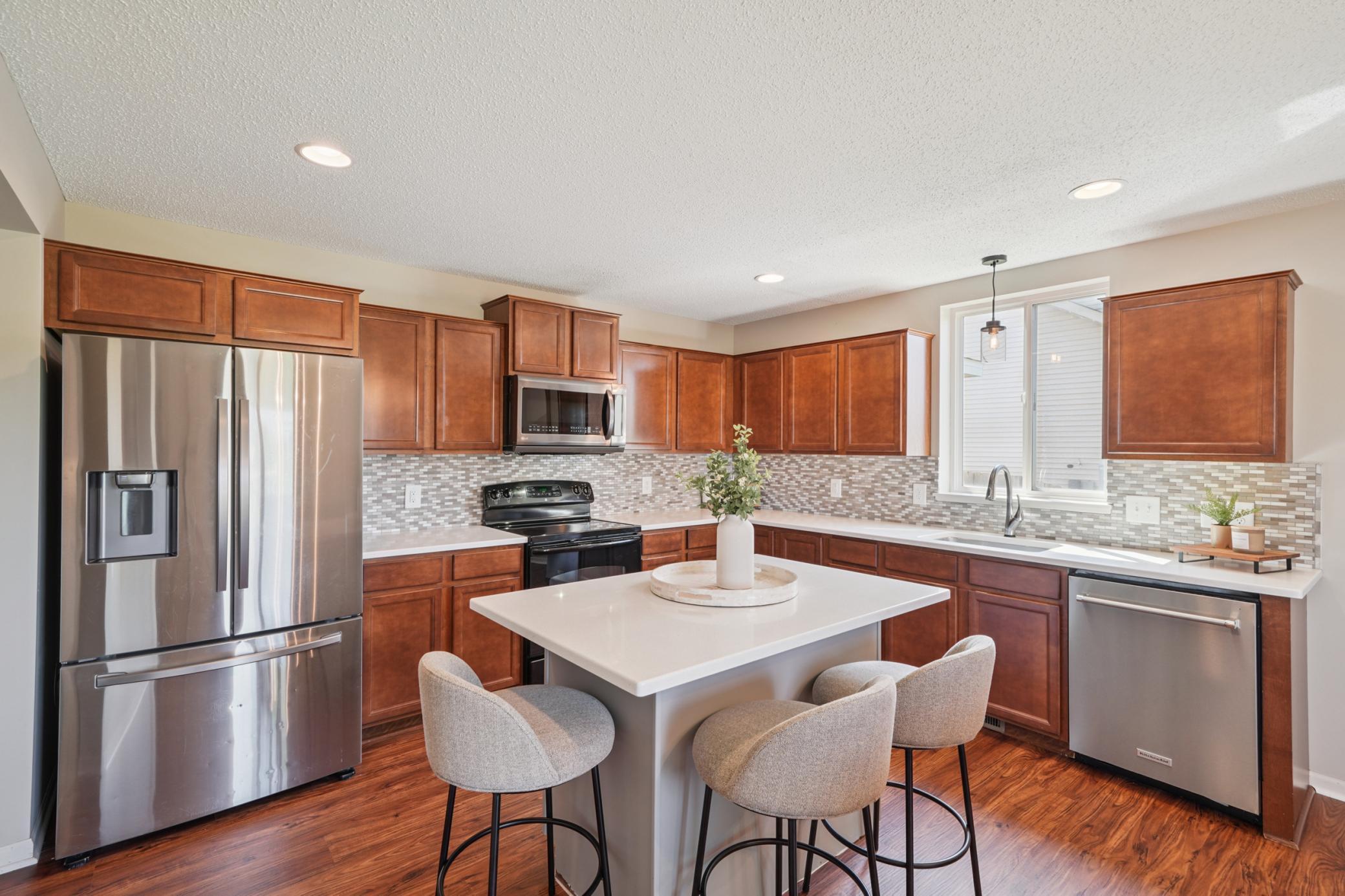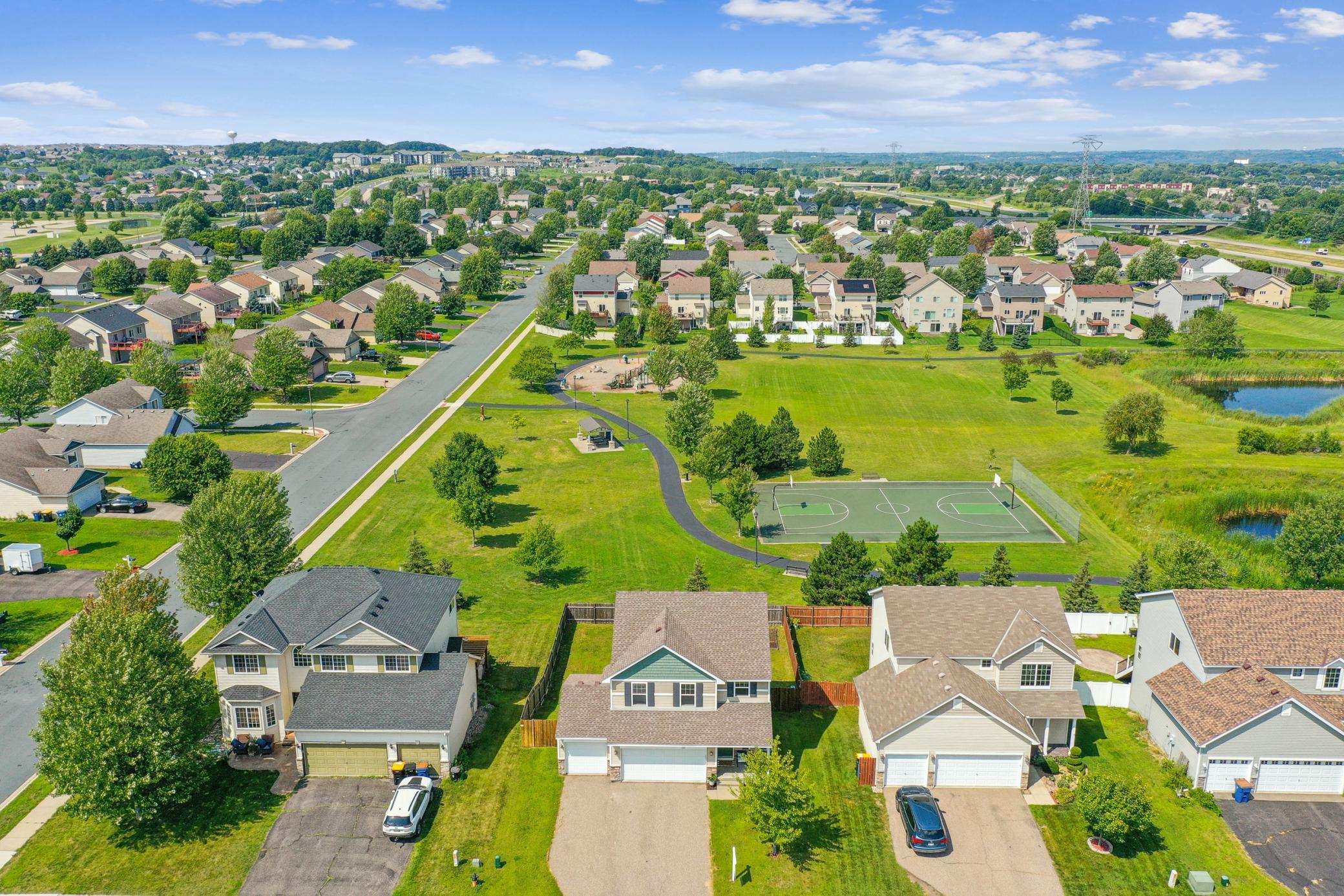 Welcome to this well-maintained two-story home in the desirable Countryside neighborhood of Shakopee, perfectly situated with scenic views backing up to Royalty Park. Built in 2010, this home offers a thoughtful layout with four spacious bedrooms, including three on the upper level. The generous owner’s suite features a private 3/4 bath and walk-in closet. You'll appreciate the convenience of an actual laundry room—not just a closet—plus plenty of room to spread out. The recently finished walkout lower level adds valuable living space with a fourth bedroom, a modern bathroom, fresh paint, and new carpet. Major updates include a new roof and A/C in 2023, a new water softener in 2022, and a new dishwasher and refrigerator in 2024—making this home truly move-in ready. A three-stall garage offers ample storage and parking. While the home does not have a deck, the backyard opens directly to Royalty Park for extra green space and outdoor enjoyment. Don't miss this opportunity to live in a prime location close to parks, trails, and schools!