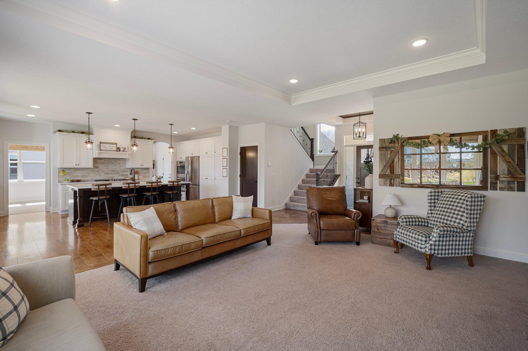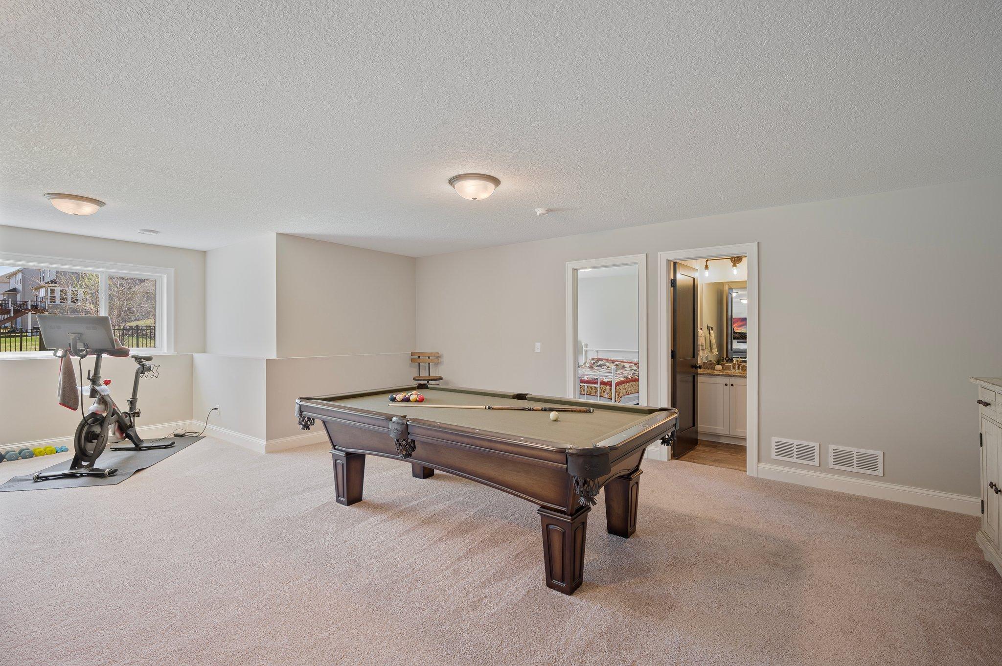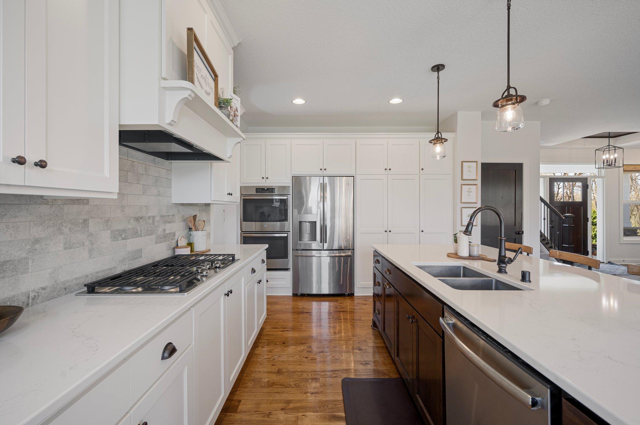 Welcome home to this immaculate 5 bedroom, 5 bath, custom built 2 story in the high demand neighborhood at the Reserve at Elm Creek, surrounded by the Elm Creek park reserve with neighborhood pool, park, and access to trails! This 2018 built home shows like a model home. Walk in an see the inviting open floor plan with gourmet kitchen featuring high end enameled cabinetry, quartz countertops, large center island, top end stainless steel appliances with double oven and gas cook top, with informal dining room with awesome views, spacious great room with box vault, gas fireplace, and built ins. Other main floor features include gorgeous hickory floors, bonus/flex room off kitchen and mudroom off garage with built in bench. Walk upstairs and find a gorgeous primary suite with huge walk in closet, and private primary bath with separate tub, and shower, two separate vanities. The upper-level features 3 additional large bedrooms, and two additional full baths, upper-level loft area and bedroom level laundry room. Head downstairs to the lower level and find a huge lower-level family/recreation room with built in entertainment center, additional bedroom and full bath. Walk to the backyard and relax with a beautiful patio and firepit overlooking nature! This quality-built home is a perfect blend of craftsmanship and high-end finishes, all within distance to numerous parks, trails, shopping, schools, and neighborhood amenities. A must see to appreciate!