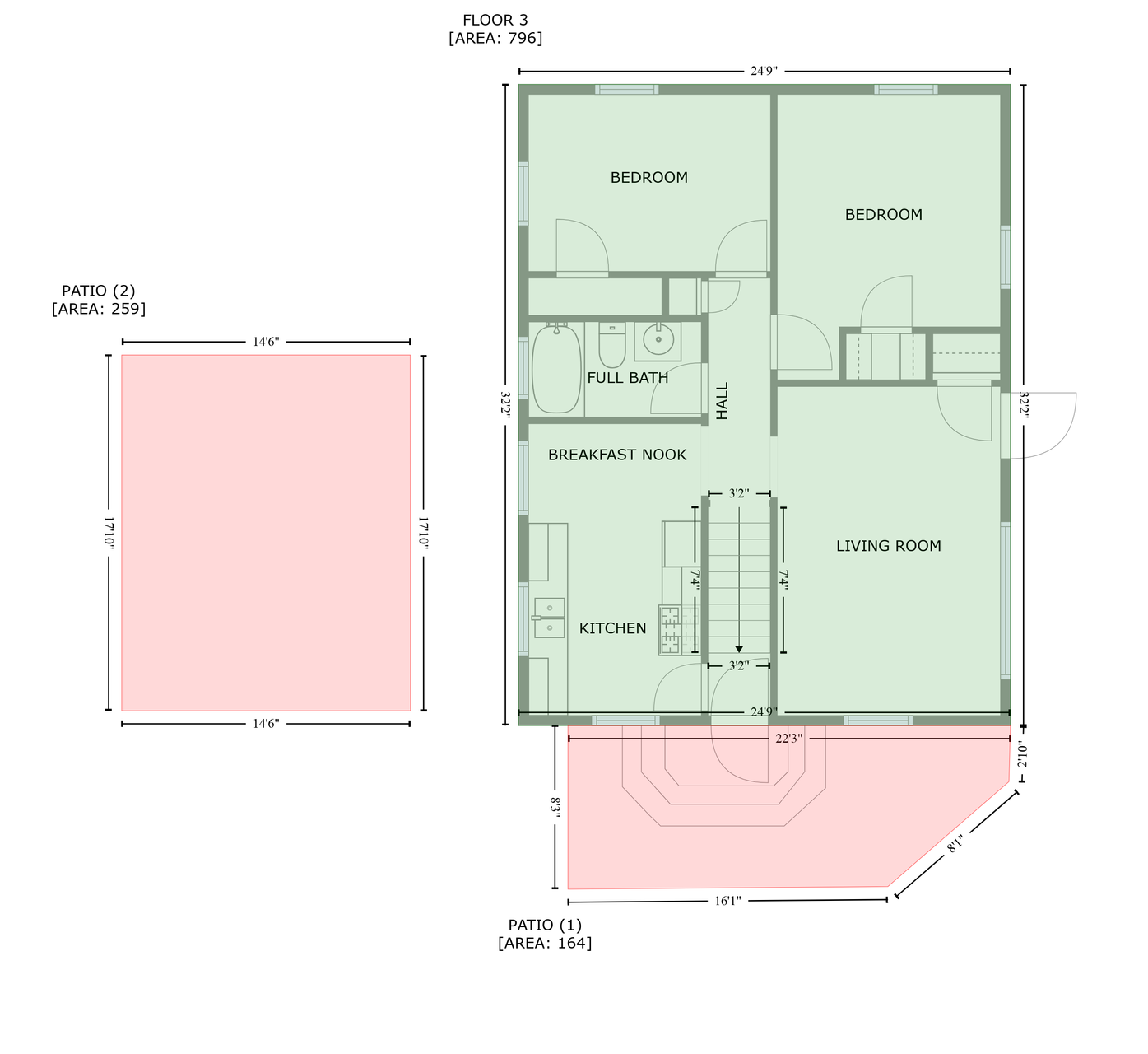 | Bedroom 1 | 11.3x14.4 | 161.25 ft² |