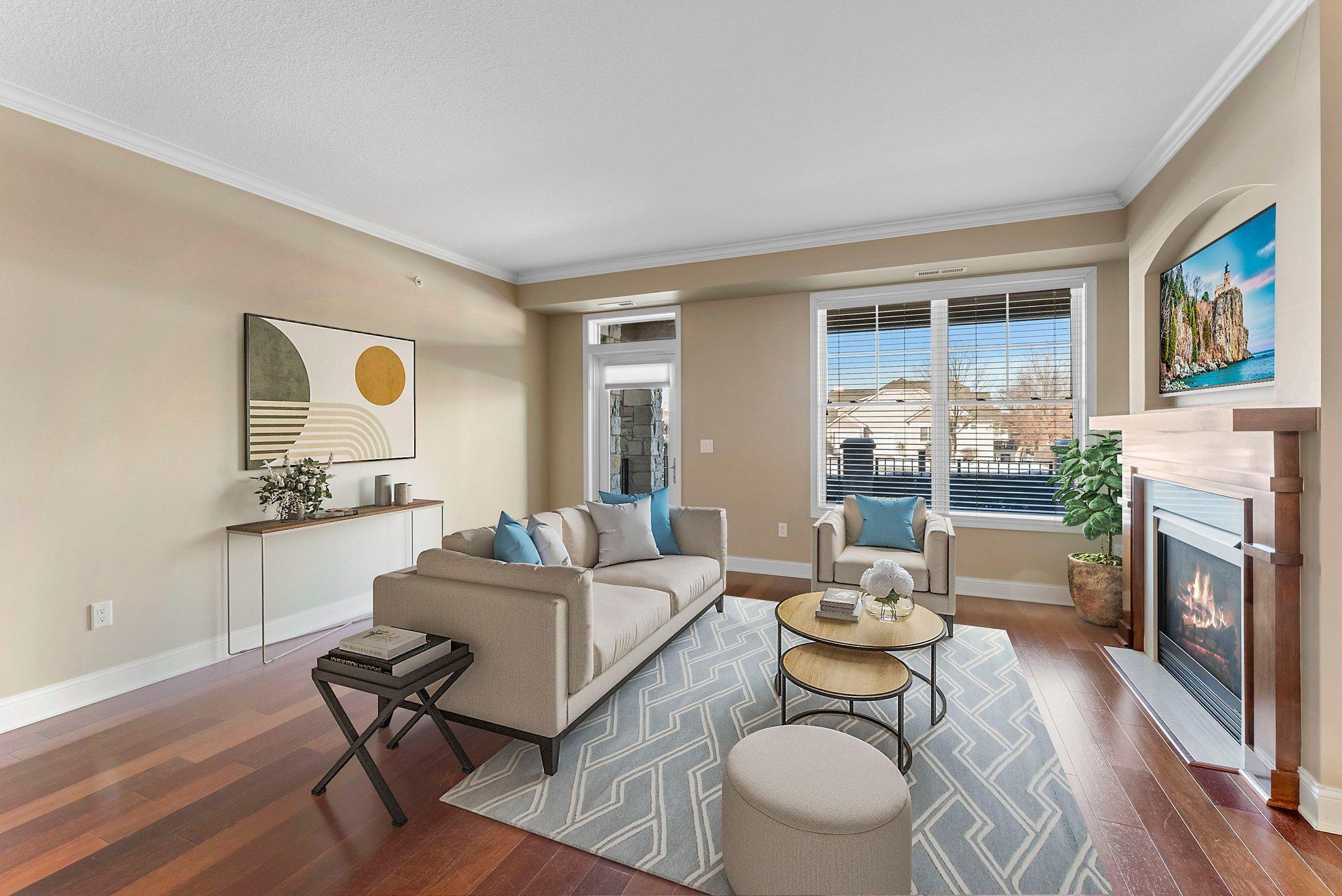 Exceptional main floor condo in the highly sought after Summit of Mendota Heights. Discover the comfort and convenience of living in this elegant building. Spacious unit with 9-foot ceilings and a bright, open, and airy feel. Desirable layout perfect for day-to-day life but also makes entertaining a breeze. Beautifully appointed kitchen with granite counters, stainless steel appliances, a breakfast bar, and a generous amount of cabinet and countertop space. Hardwood floors throughout the kitchen, dining, and living rooms. Living room has a cozy gas fireplace and leads out to the oversized patio. Great for relaxing and taking pets out through the gate. Primary bedroom is generously sized w/ a walk-in closet and separate bonus closet. Ensuite bath has a jetted tub, tiled walk-in shower, and dual sinks. This unit also has a versatile second bedroom, nicely updated 3/4 bath, and easily accessible full-sized laundry. You will love having two spots right next to each other in the heated, underground garage as well as a secure, assigned storage unit. This building has wonderful additional amenities including a car wash, exercise room, club room, and guest suite. Enjoy a carefree lifestyle nestled near the Mississippi River close to freeways, trails, restaurants, and shopping. Come see it today!
