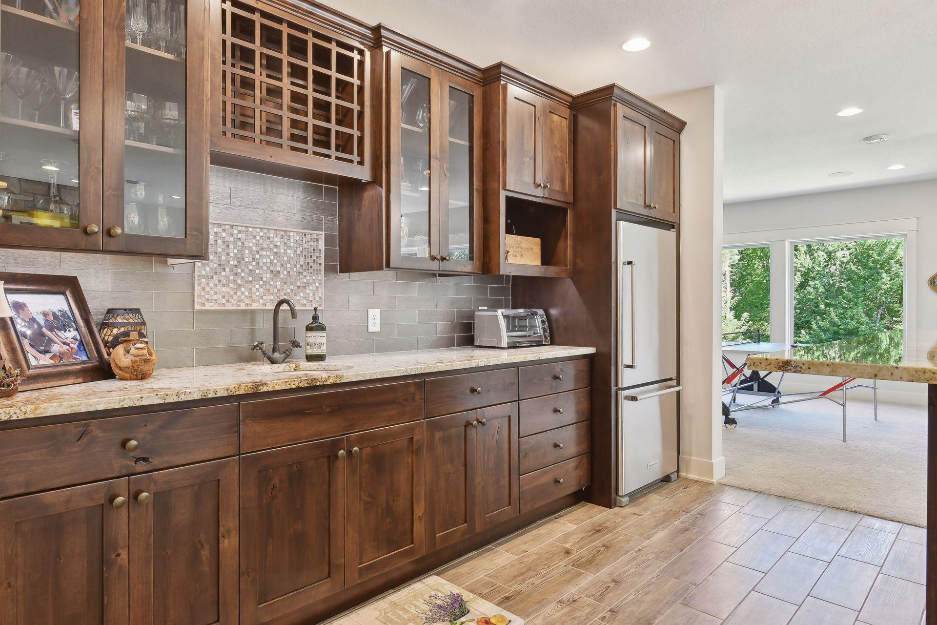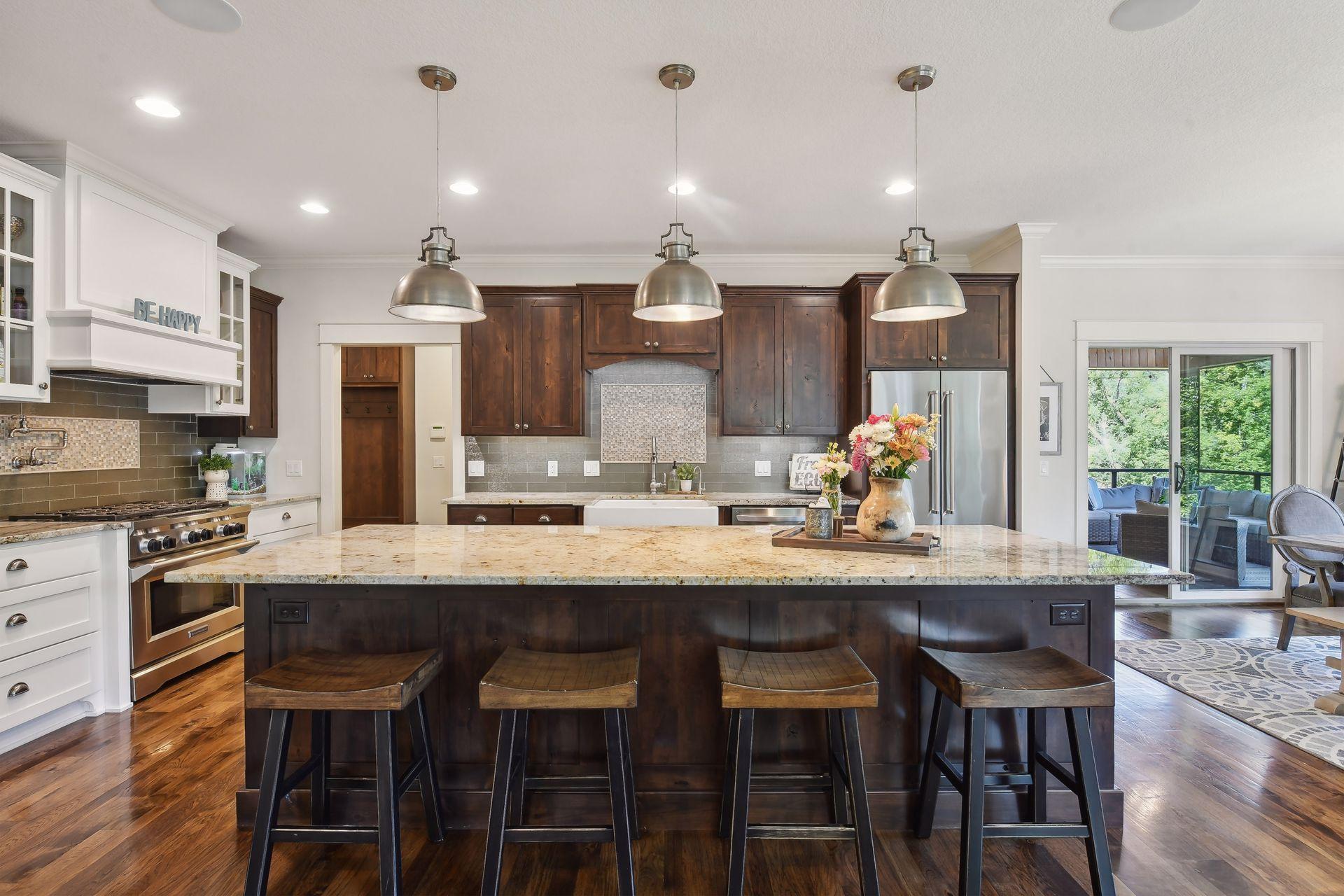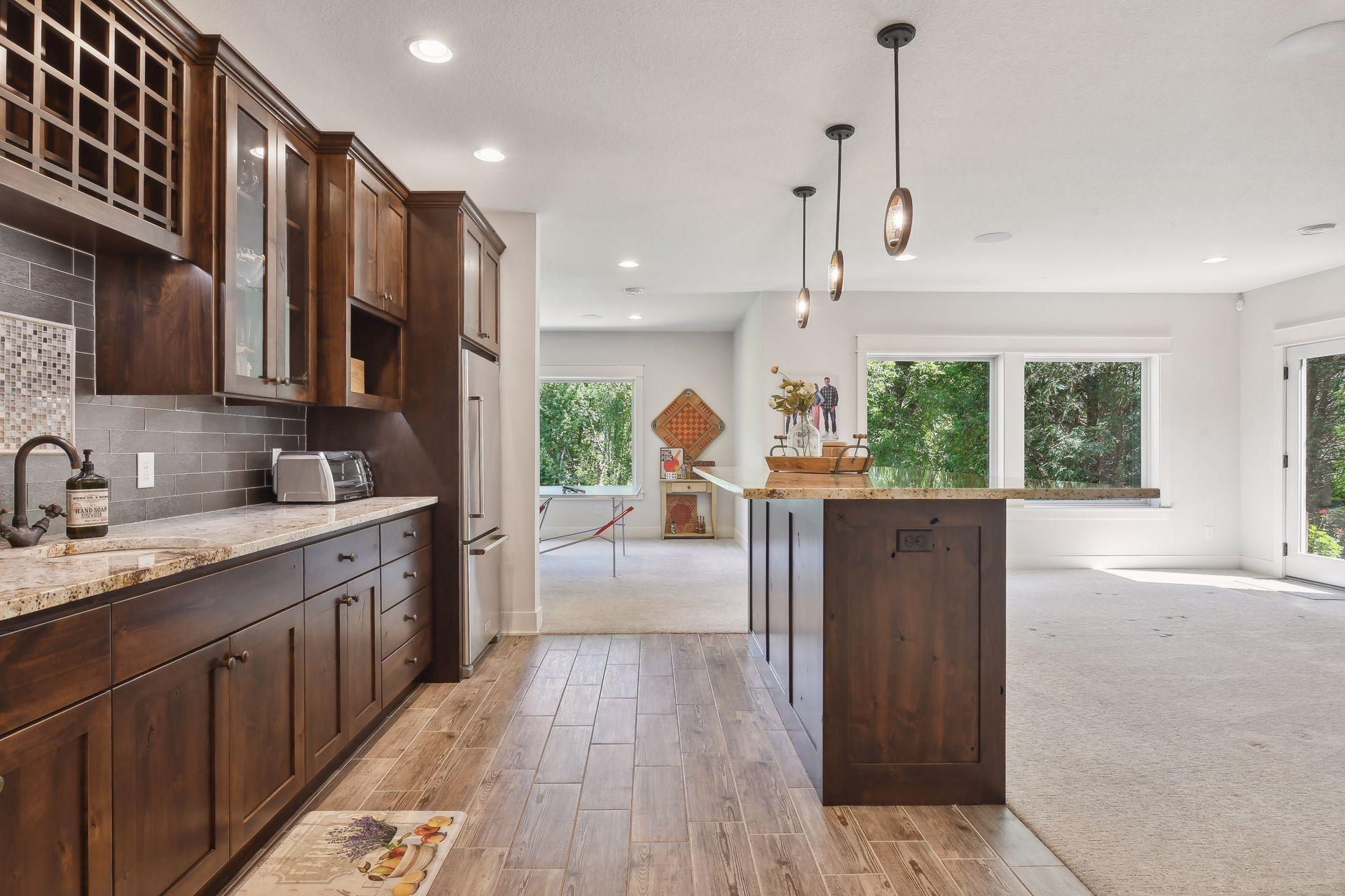 Hard to find newer construction in eastern Orono just steps to Dakota Trail and downtown Wayzata. Fabulous two-story in pristine condition boasting 5 BR, 5BA and walk-out lower level. Gourmet kitchen features massive center island with top of the line appliances, pot filler, extensive cabinets, additional drink fridge within island. Screened in porch walks out to backyard fire pit patio and built-in grill space. Upstairs offers 4BR, all with adjoining bathrooms and 2nd floor laundry. Primary bedroom has dual walk-in closets and ensuite with floating tub and luxurious walk-in shower stall. Lower level has additional bar/kitchen area with family room with fireplace, ideal for entertaining. Walk-out LL leads to recently installed paver walkway wrapping around the back of home. The three car heated garage has additional storage/shop space in the back for work shop or home gym. Additional setup for EV charger. Truly a move-in ready home in premier location.