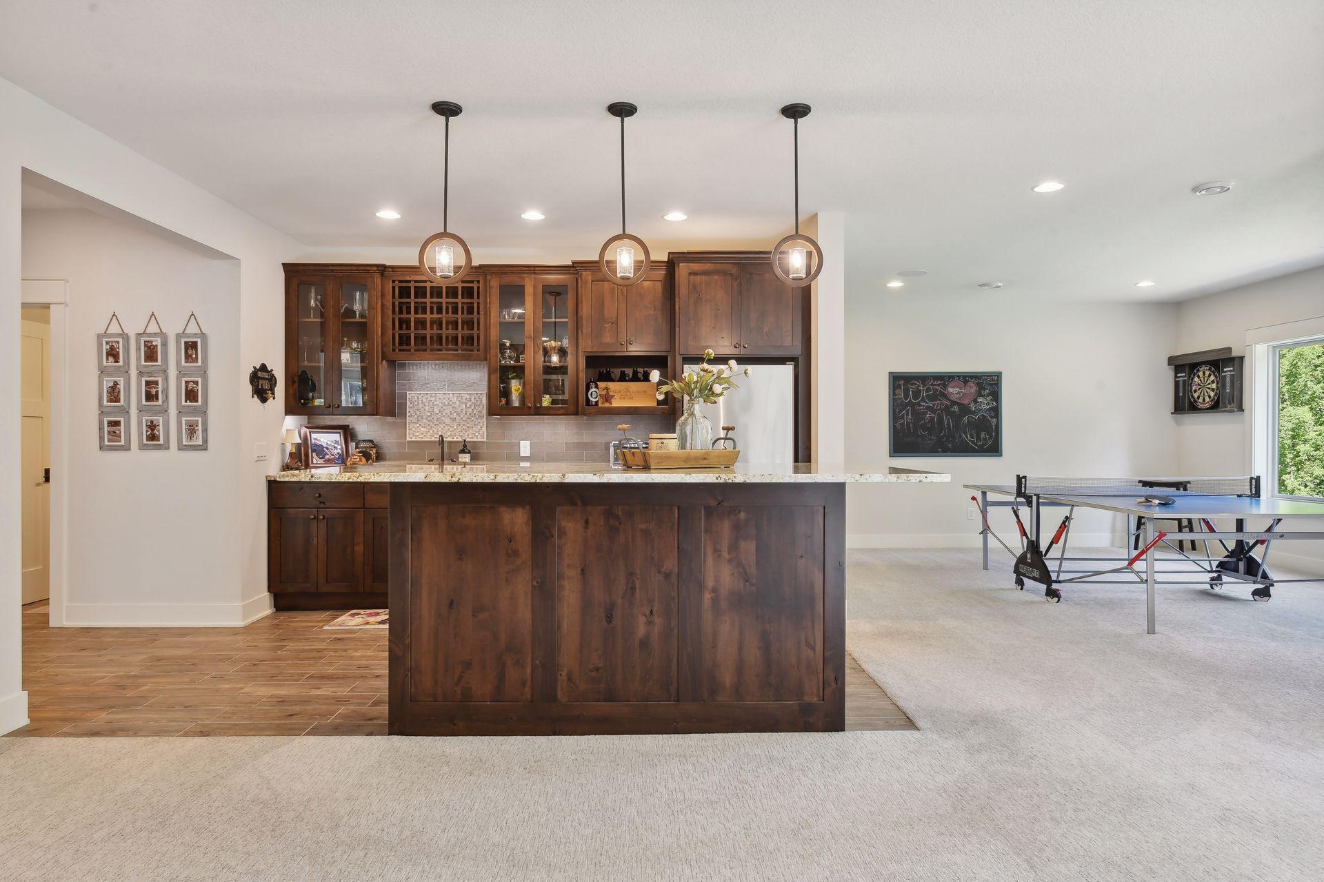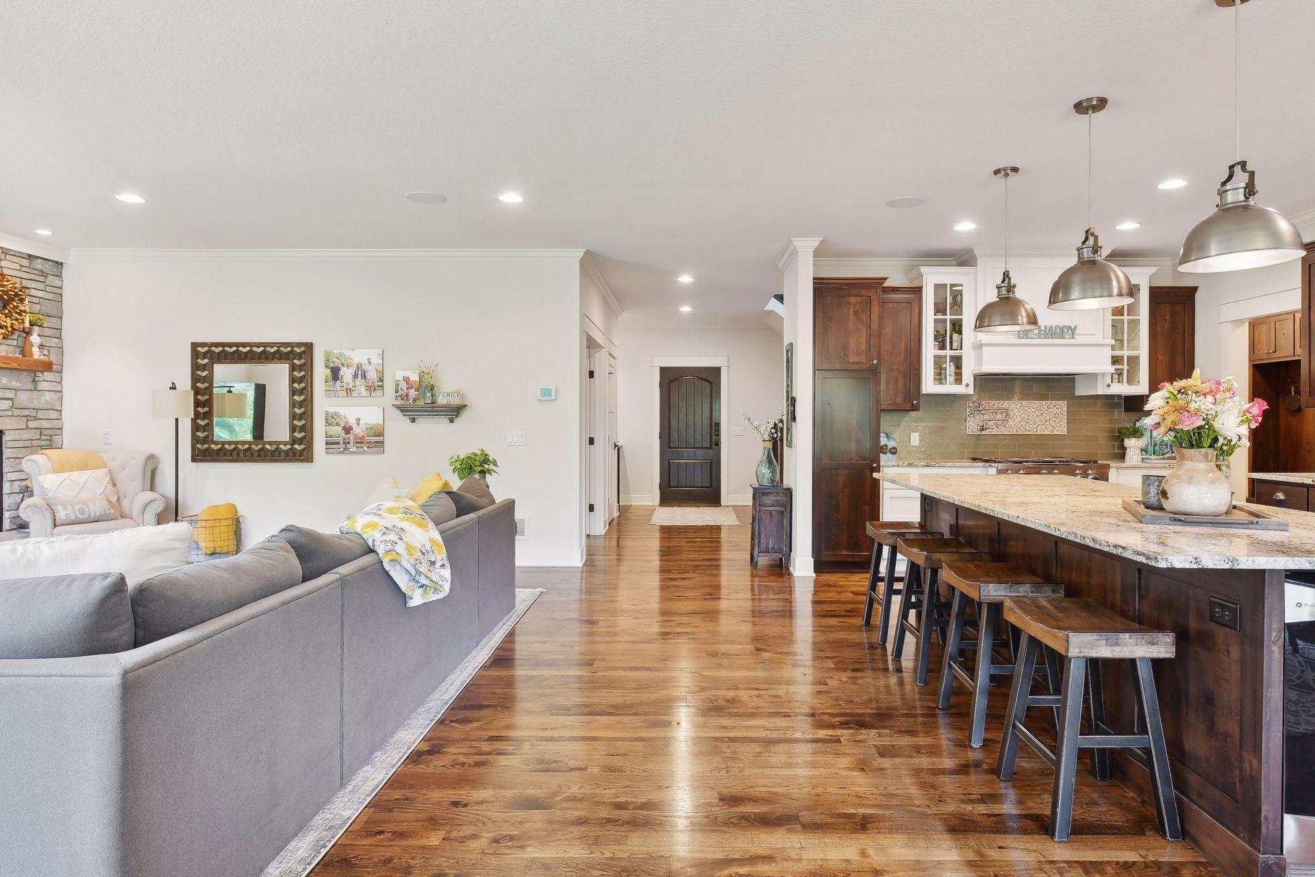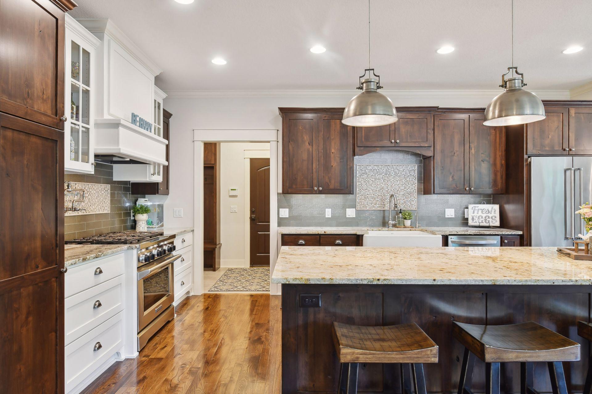 Hard to find newer construction in eastern Orono just steps to Dakota Trail and downtown Wayzata. Fabulous two-story in pristine condition boasting 5 BR, 5BA and walk-out lower level. Gourmet kitchen features massive center island with top of the line appliances, pot filler, extensive cabinets, additional drink fridge within island. Screened in porch walks out to backyard fire pit patio and built-in grill space. Upstairs offers 4BR, all with adjoining bathrooms and 2nd floor laundry. Primary bedroom has dual walk-in closets and ensuite with floating tub and luxurious walk-in shower stall. Lower level has additional bar/kitchen area with family room with fireplace, ideal for entertaining. Walk-out LL leads to recently installed paver walkway wrapping around the back of home. The three car heated garage has additional storage/shop space in the back for work shop or home gym. Additional setup for EV charger. Truly a move-in ready home in premier location.