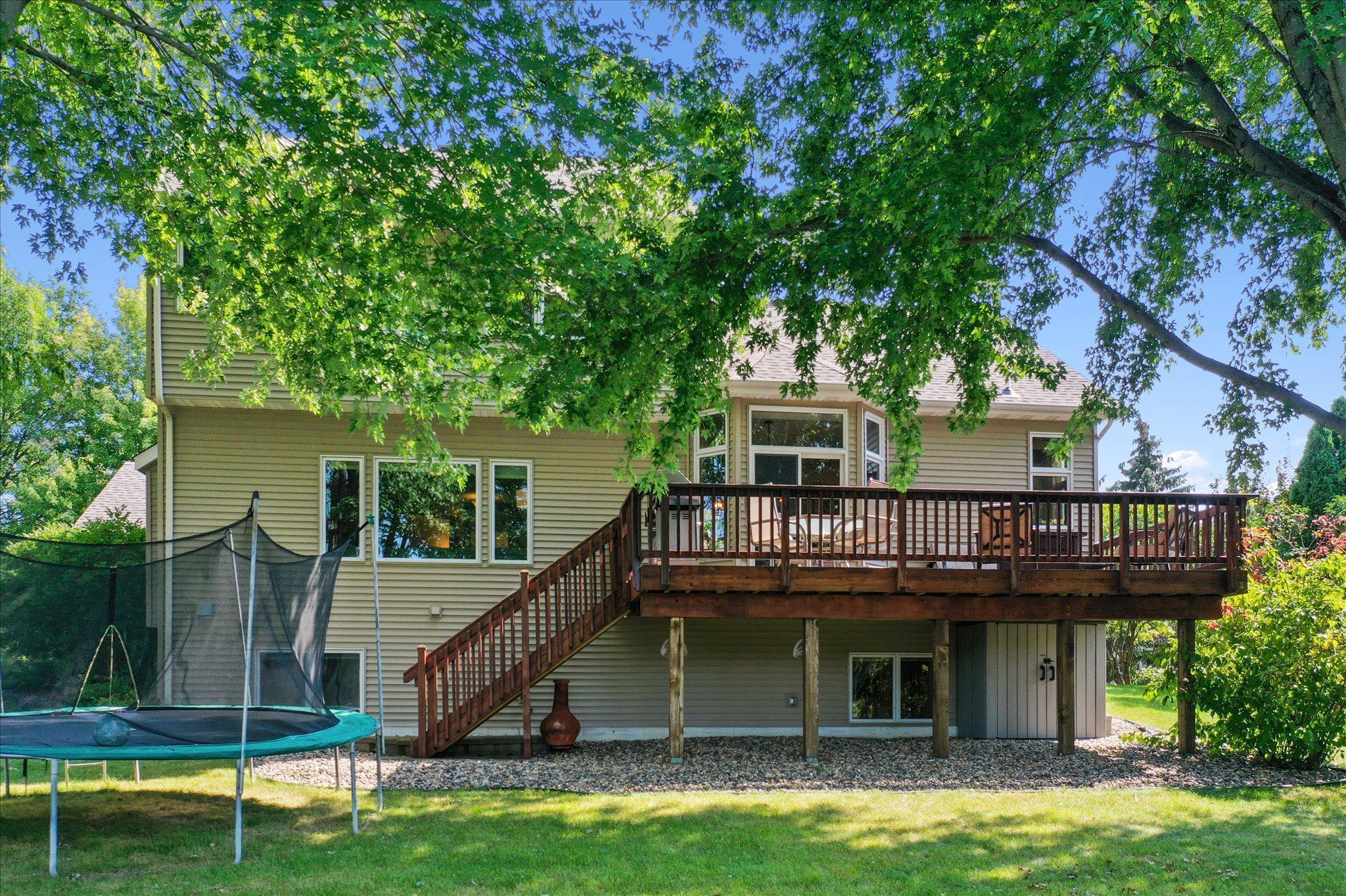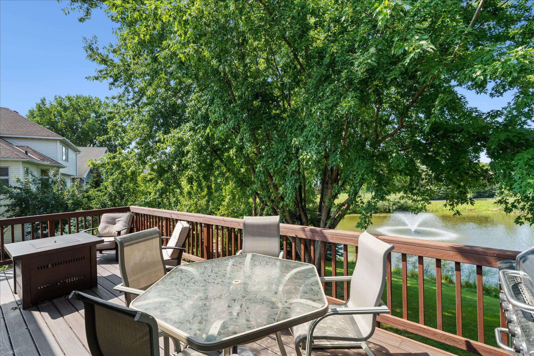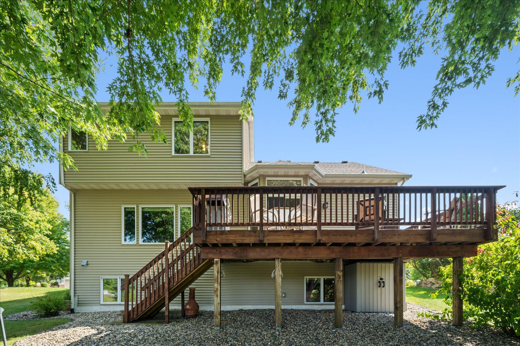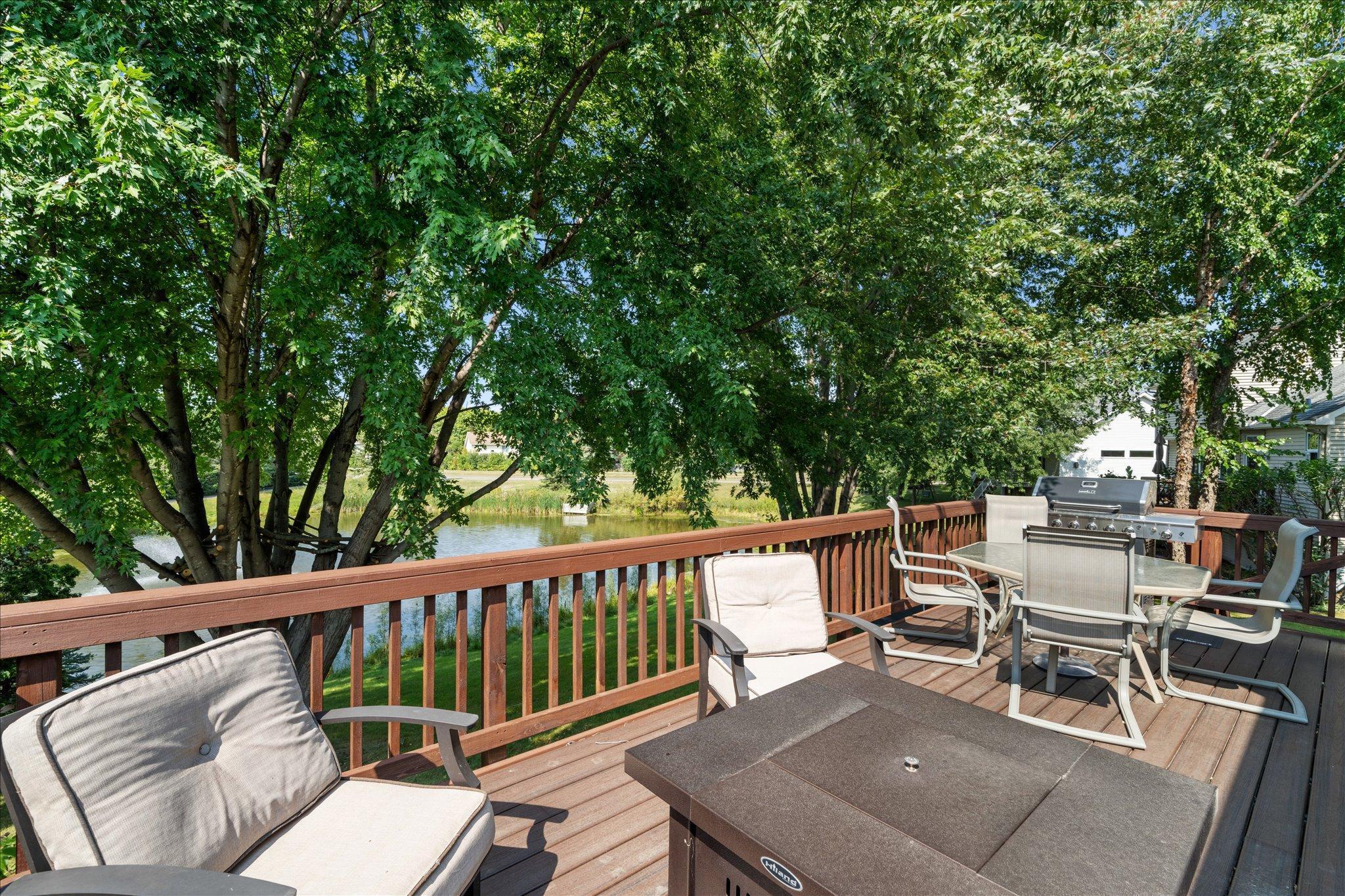 Welcome home to the beautifully-maintained home on tree-lined street a short distance from charming downtown Victoria. Many updates make this home move-in ready including newer roof, siding, most windows, garage door, concrete apron, and driveway. The spacious composite deck has room for seating, dining set, and grill and overlooks the neighborhood pond with fountain. Main floor has wonderful flowing floorplan offering hardwood floors, spacious family room with gas fireplace and wall of built-ins, updated sunny kitchen, dedicated home office with closet and French doors, living room that could also be used as formal dining room or second home office. The upper level features primary bedroom with ensuite bath plus 2 junior bedrooms and full bath. If you seek space for active family members, the lower level recreation room has that and more plus room for family movie night or playing video games. There is a 5th bedroom here currently used as an exercise room. A large storage room and 3/4 bath complete this space. This home is convenient to both Chanhassen and Chaska, local public and private schools, Victoria Rec Center and all the conveniences for shopping, dining, and entertainment you could want. Shed below deck is included. Freshly painted interior and carpets cleaned March 2025. One year home warranty included for new owners. Agent is related to seller