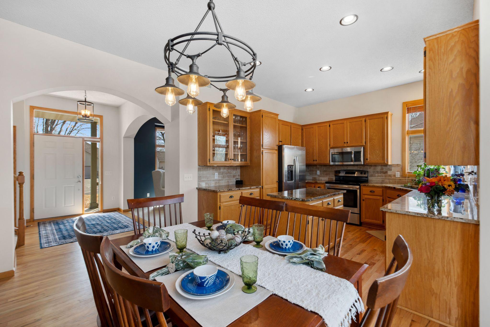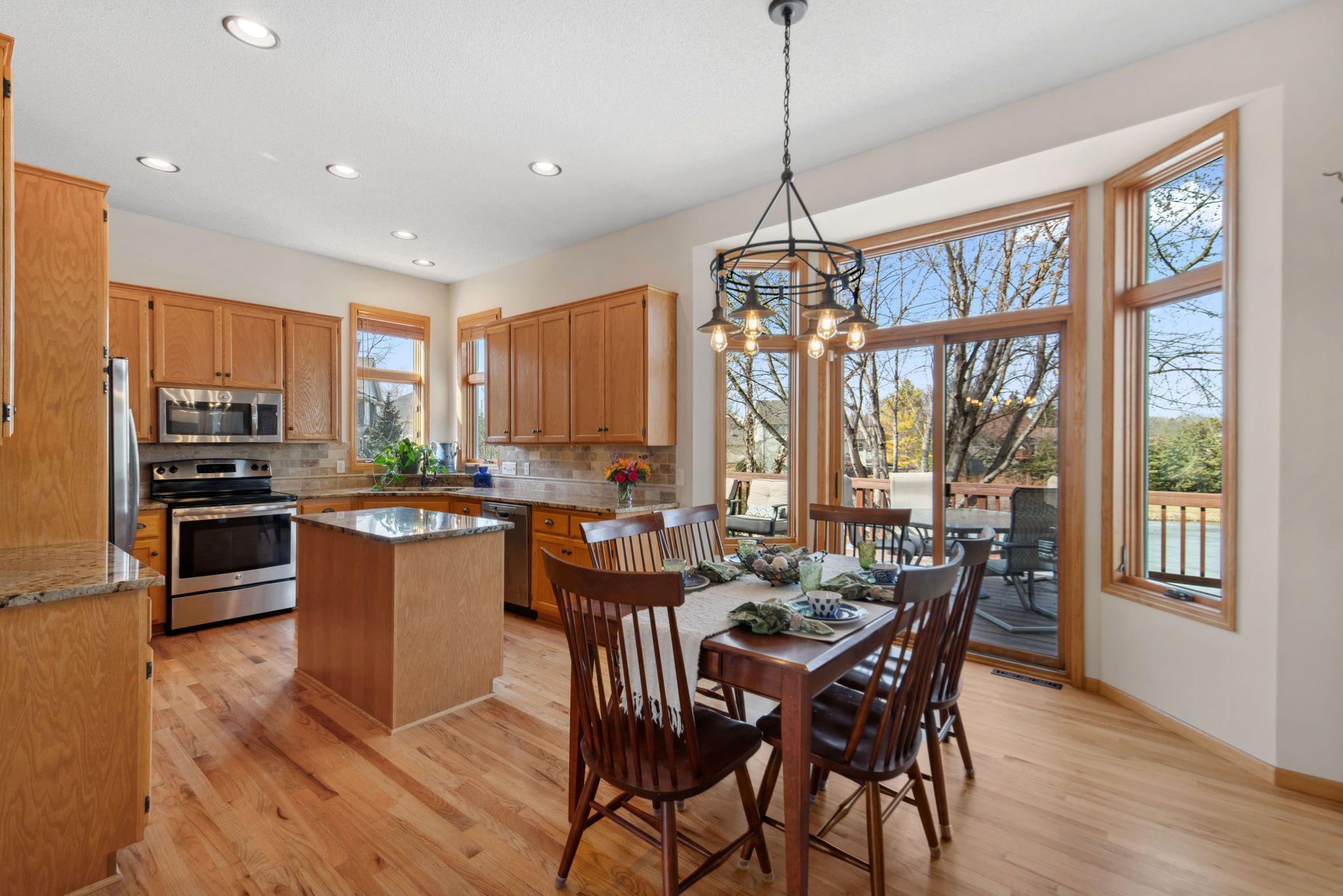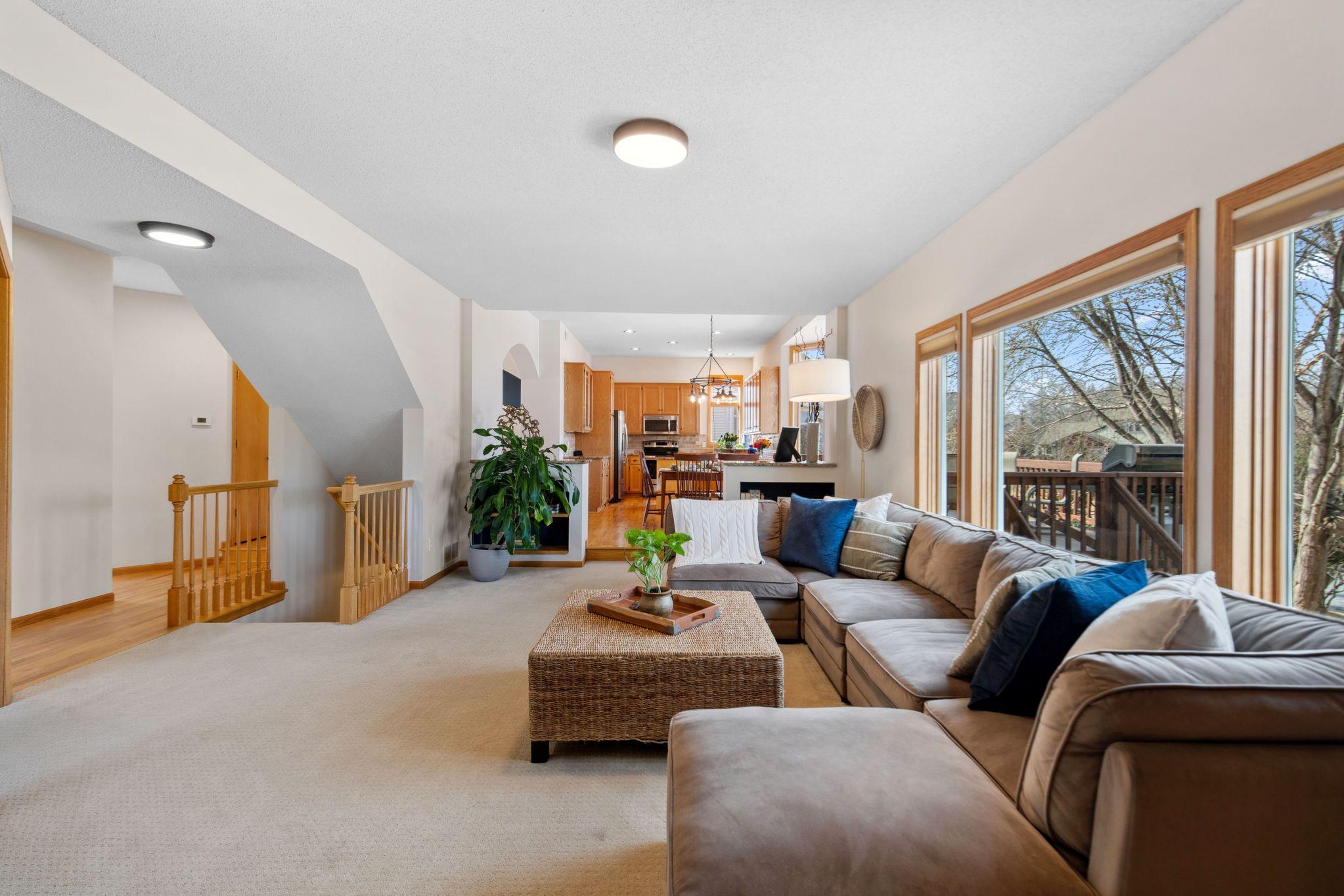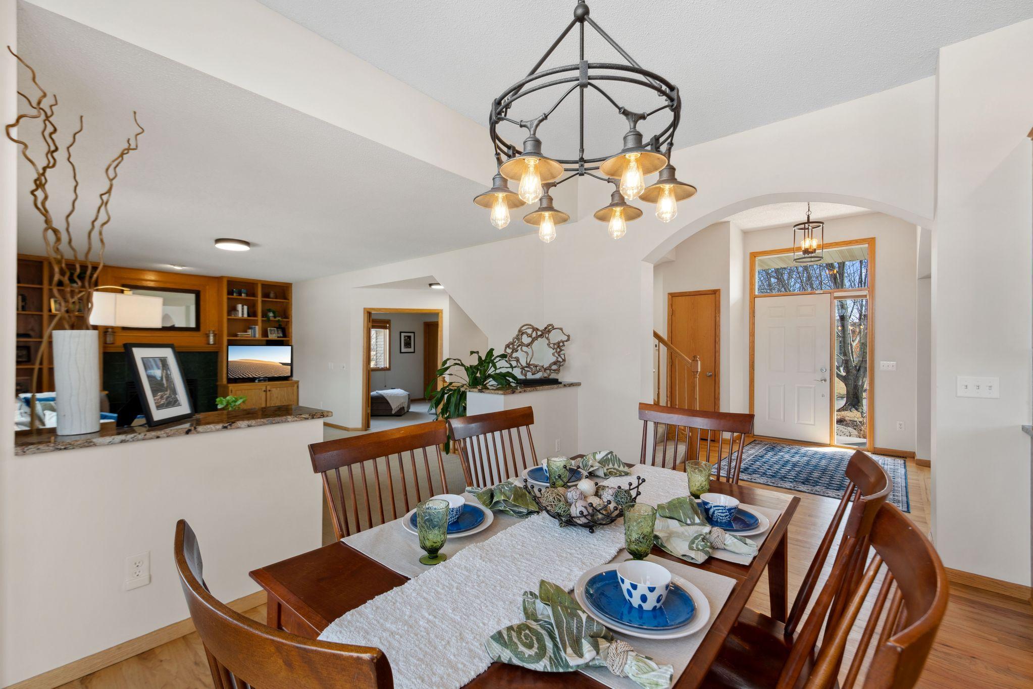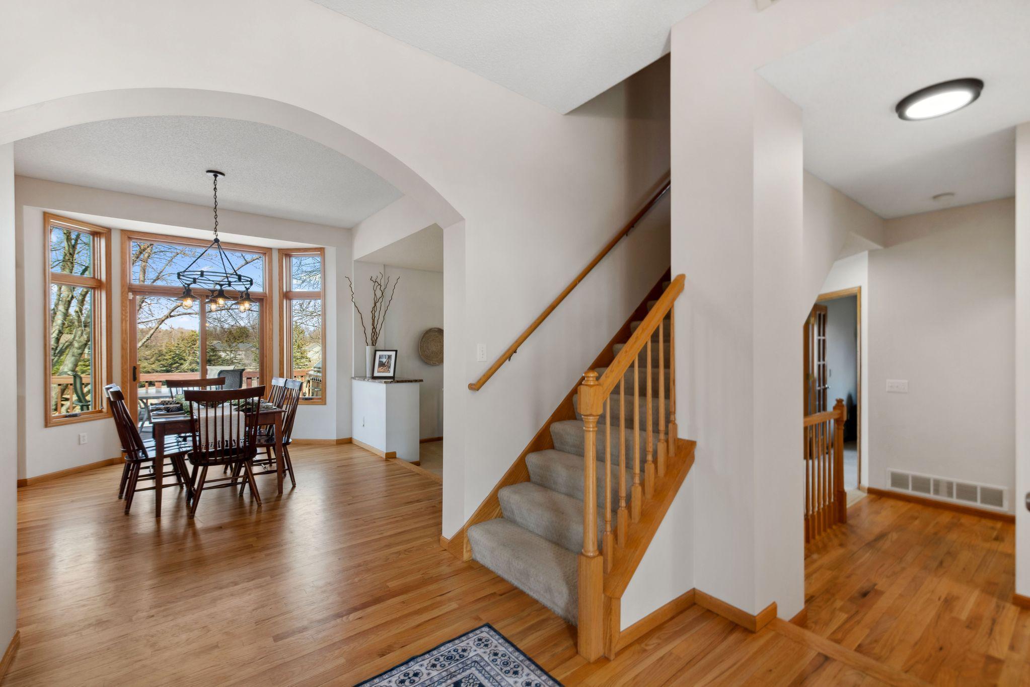 Welcome home to the beautifully-maintained home on tree-lined street a short distance from charming downtown Victoria. Many updates make this home move-in ready including newer roof, siding, most windows, garage door, concrete apron, and driveway. The spacious composite deck has room for seating, dining set, and grill and overlooks the neighborhood pond with fountain. Main floor has wonderful flowing floorplan offering hardwood floors, spacious family room with gas fireplace and wall of built-ins, updated sunny kitchen, dedicated home office with closet and French doors, living room that could also be used as formal dining room or second home office. The upper level features primary bedroom with ensuite bath plus 2 junior bedrooms and full bath. If you seek space for active family members, the lower level recreation room has that and more plus room for family movie night or playing video games. There is a 5th bedroom here currently used as an exercise room. A large storage room and 3/4 bath complete this space. This home is convenient to both Chanhassen and Chaska, local public and private schools, Victoria Rec Center and all the conveniences for shopping, dining, and entertainment you could want. Shed below deck is included. Freshly painted interior and carpets cleaned March 2025. One year home warranty included for new owners. Agent is related to seller