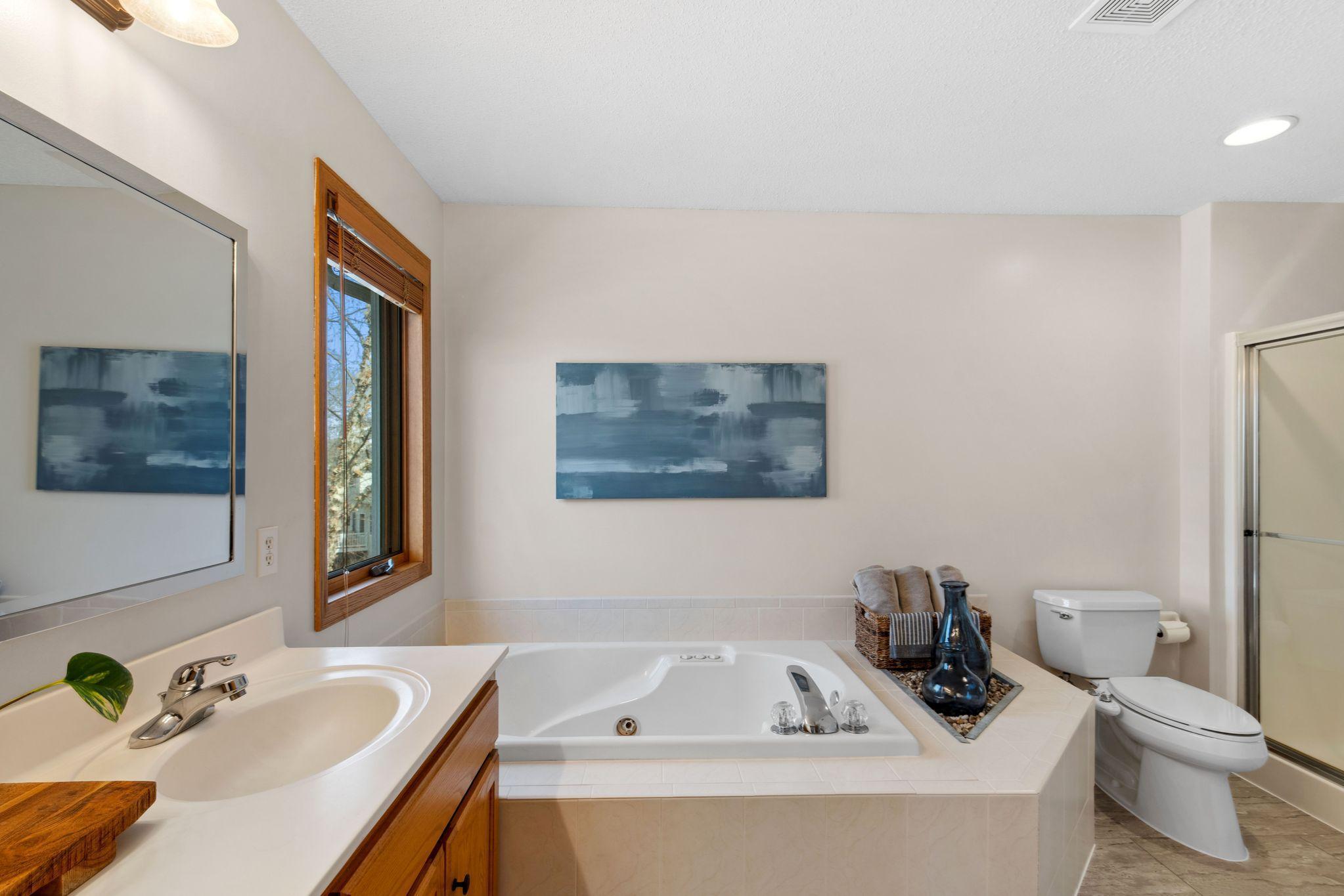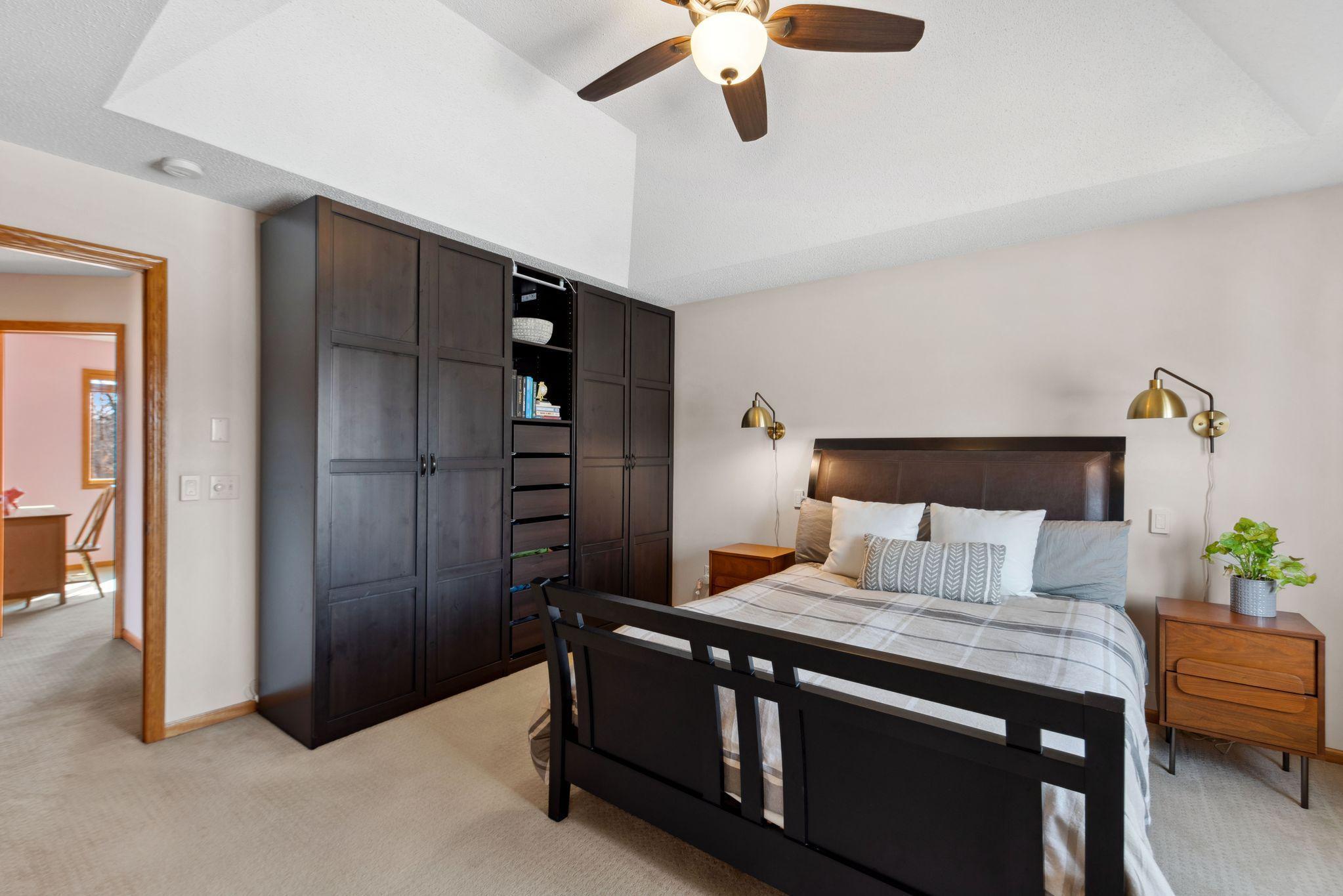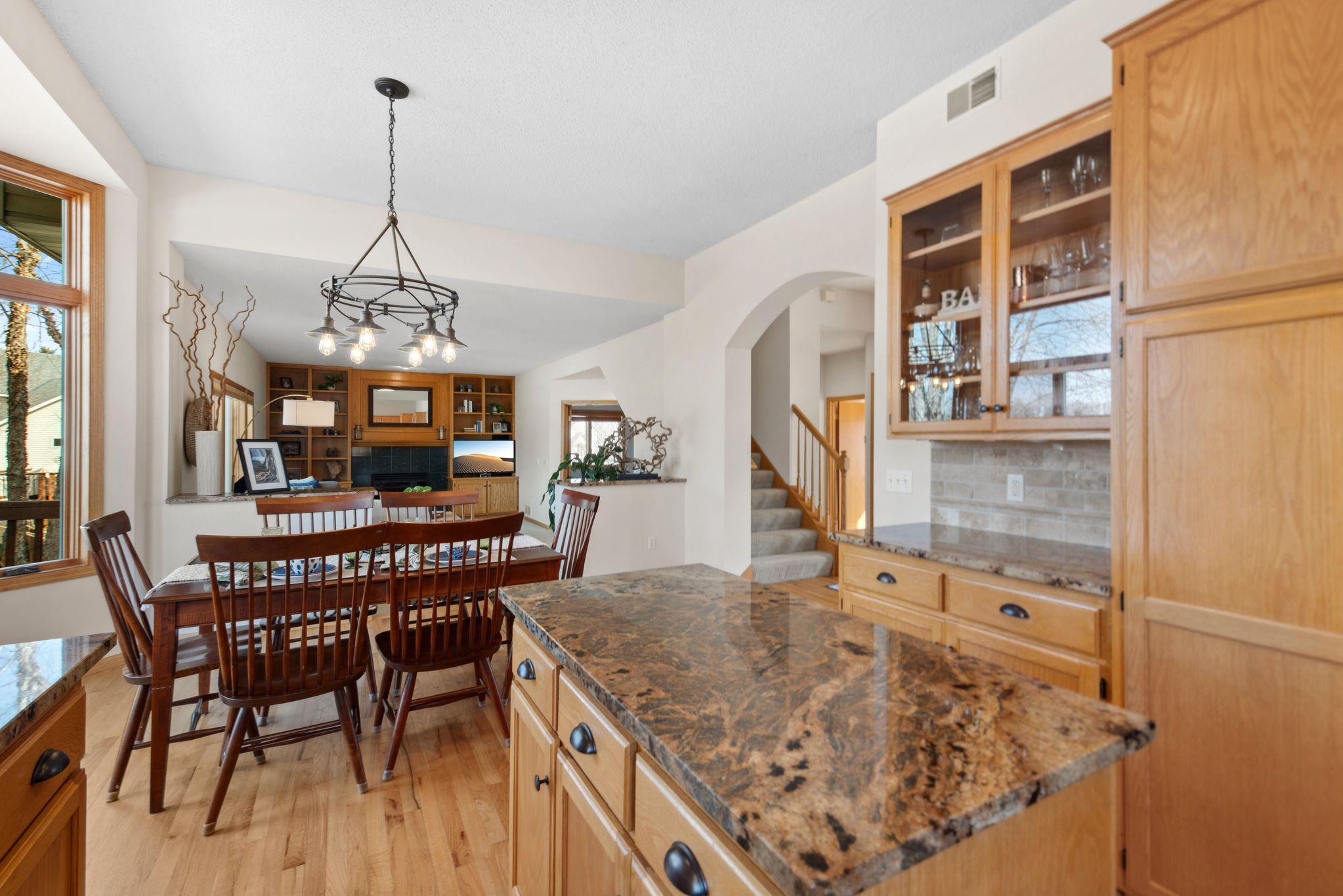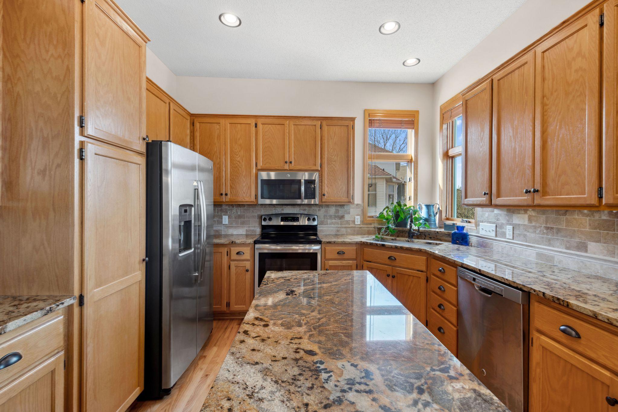 Welcome home to the beautifully-maintained home on tree-lined street a short distance from charming downtown Victoria. Many updates make this home move-in ready including newer roof, siding, most windows, garage door, concrete apron, and driveway. The spacious composite deck has room for seating, dining set, and grill and overlooks the neighborhood pond with fountain. Main floor has wonderful flowing floorplan offering hardwood floors, spacious family room with gas fireplace and wall of built-ins, updated sunny kitchen, dedicated home office with closet and French doors, living room that could also be used as formal dining room or second home office. The upper level features primary bedroom with ensuite bath plus 2 junior bedrooms and full bath. If you seek space for active family members, the lower level recreation room has that and more plus room for family movie night or playing video games. There is a 5th bedroom here currently used as an exercise room. A large storage room and 3/4 bath complete this space. This home is convenient to both Chanhassen and Chaska, local public and private schools, Victoria Rec Center and all the conveniences for shopping, dining, and entertainment you could want. Shed below deck is included. Freshly painted interior and carpets cleaned March 2025. One year home warranty included for new owners. Agent is related to seller