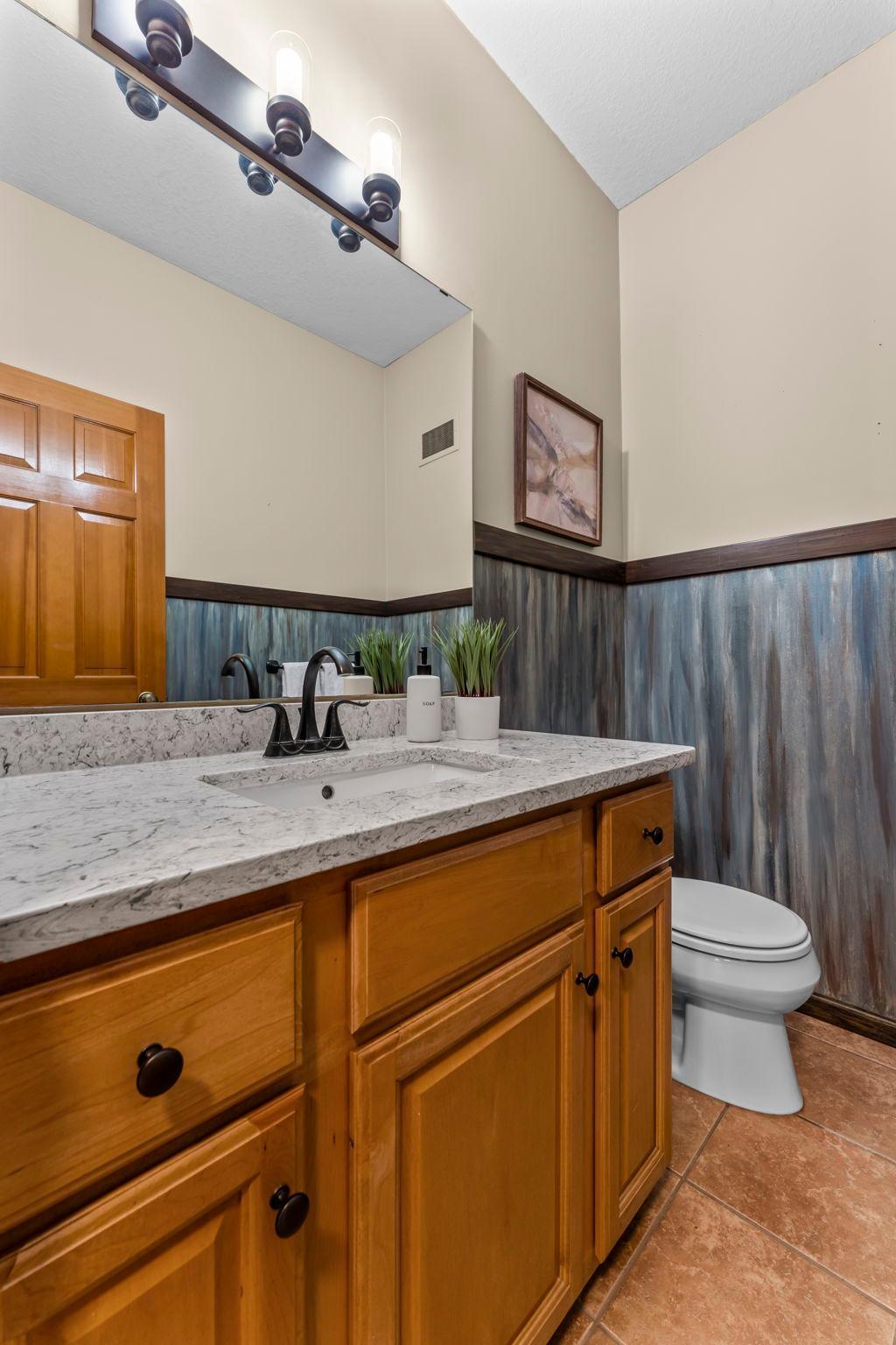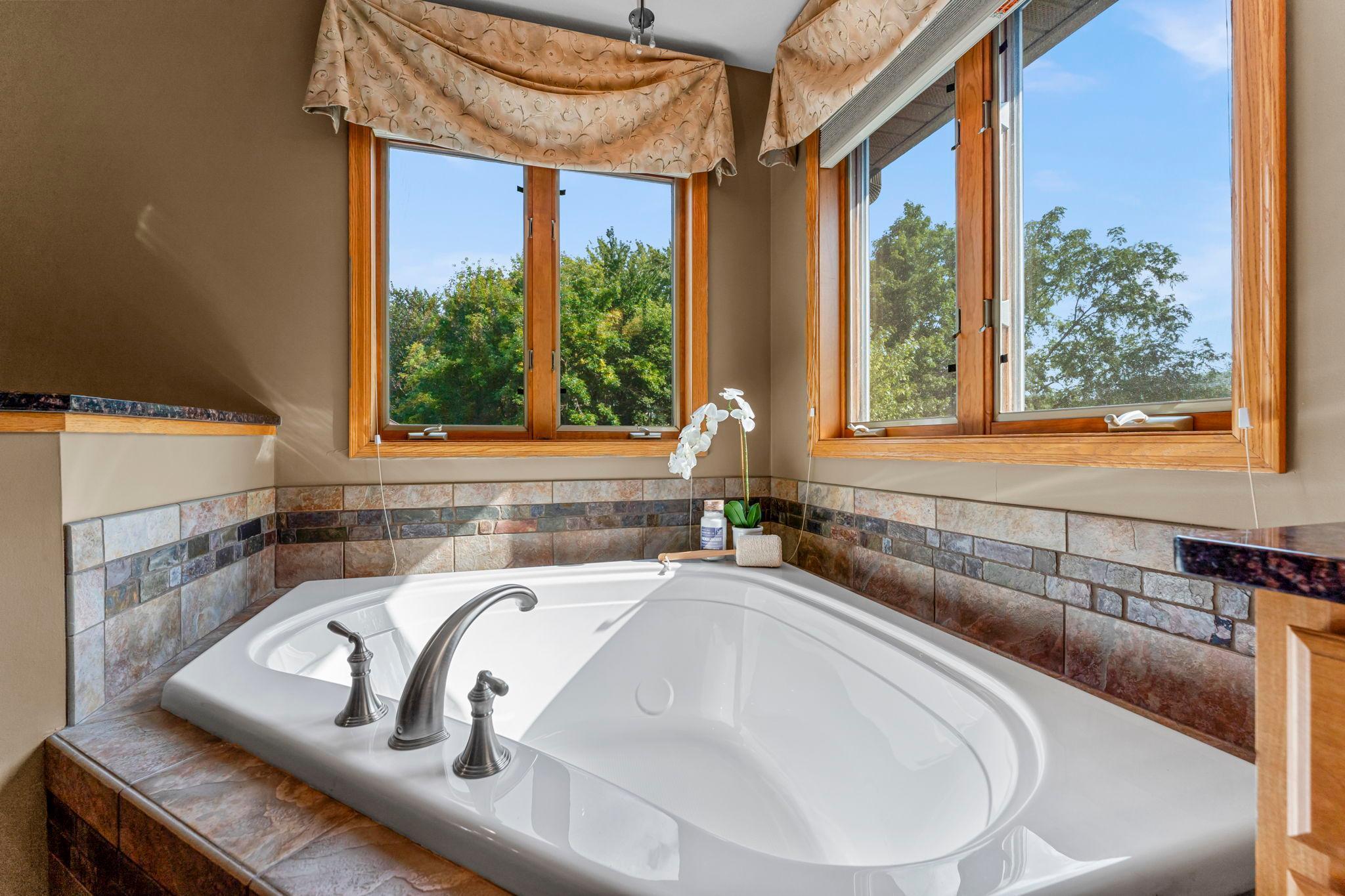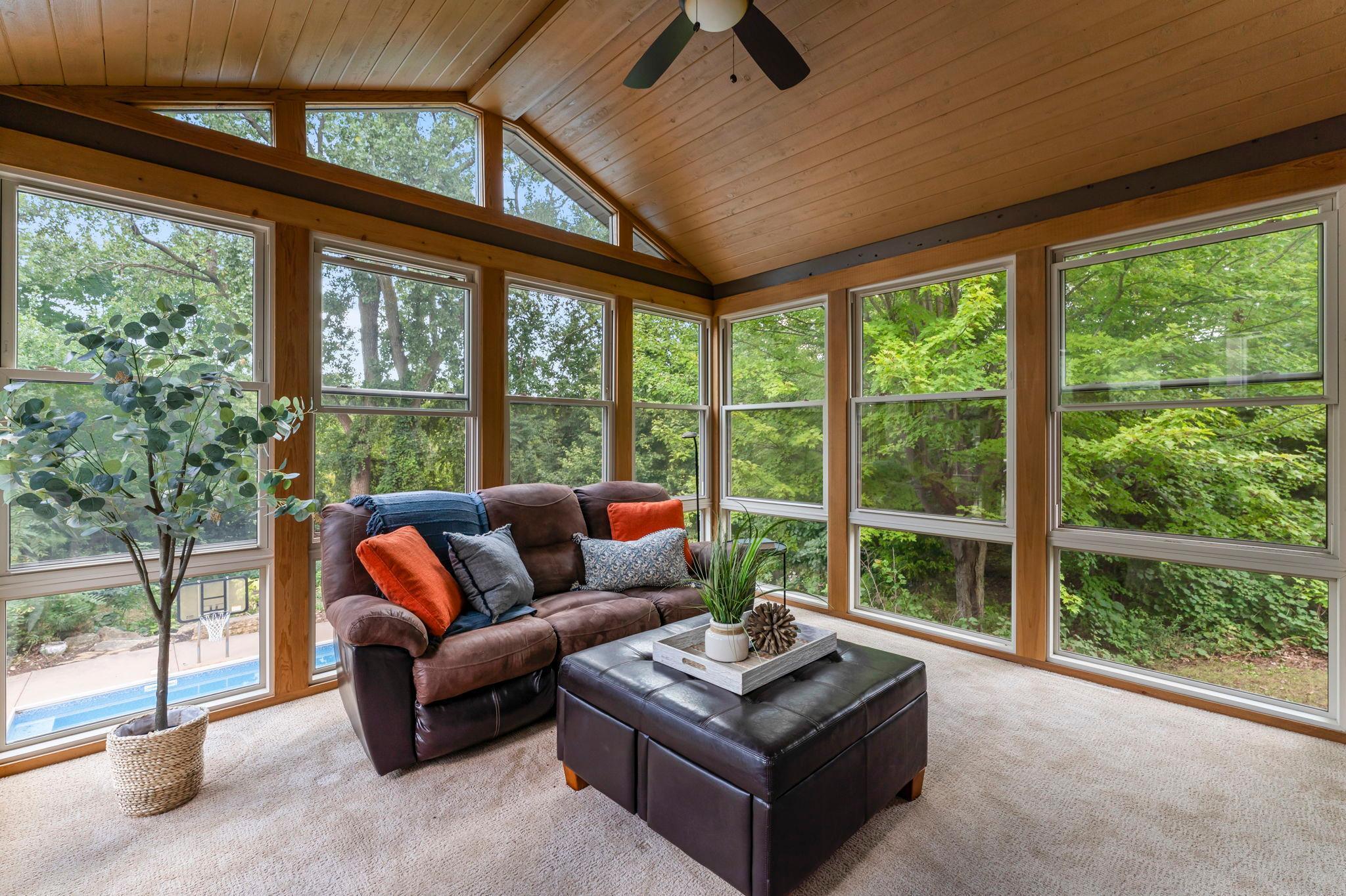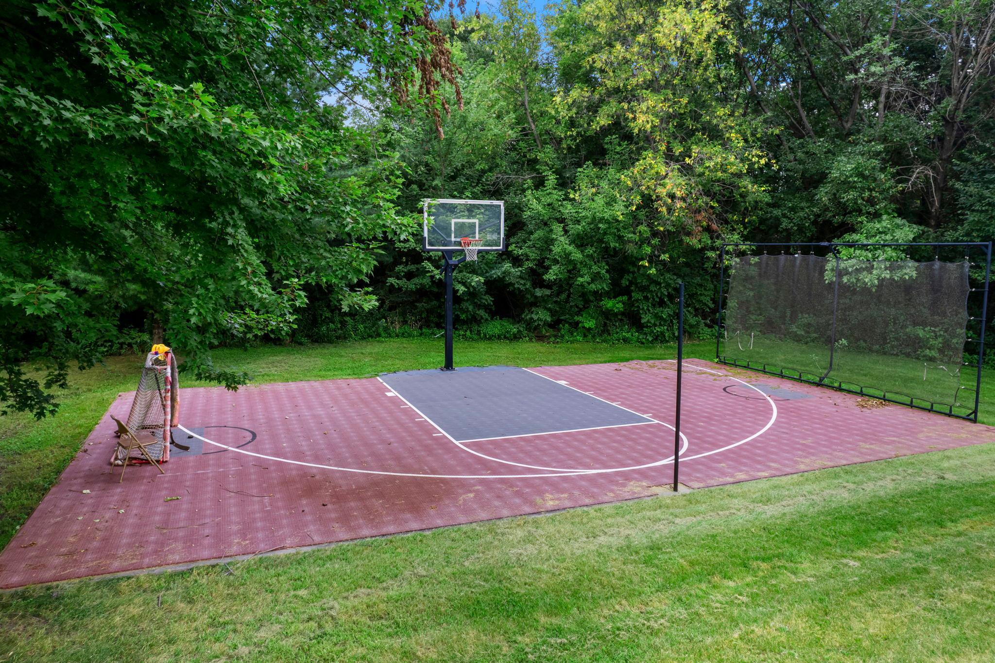 Welcome to a home that combines elegance, comfort, and incredible outdoor living. Set on 3+ private acres near Stonebrooke Golf Club, this 4-bedroom, 4-bath residence offers a backyard retreat with a heated saltwater pool, sport court, firepit, and maintenance-free deck—perfect for entertaining or relaxing in style. Inside, a two-story foyer with hardwood floors opens to a sun-filled living room with a gas fireplace, a main floor office, and a three-season porch. The gourmet kitchen features hickory cabinets, granite counters, stainless steel appliances, and an adjacent laundry/mud room with custom cabinetry. Upstairs, you’ll find spacious bedrooms with walk-in closets and heated tile floors in all baths, including the serene primary suite with its own fireplace. The walk-out lower level expands your living space with a large family room featuring a stone fireplace, custom built-ins, and a 4th bedroom with an ensuite bath. This is the perfect blend of privacy, space, and high-end living.
