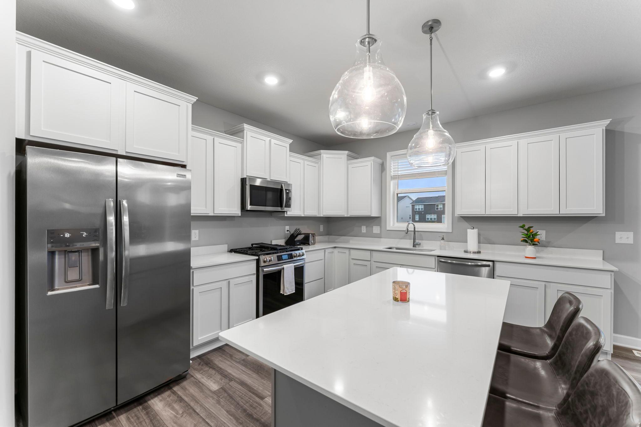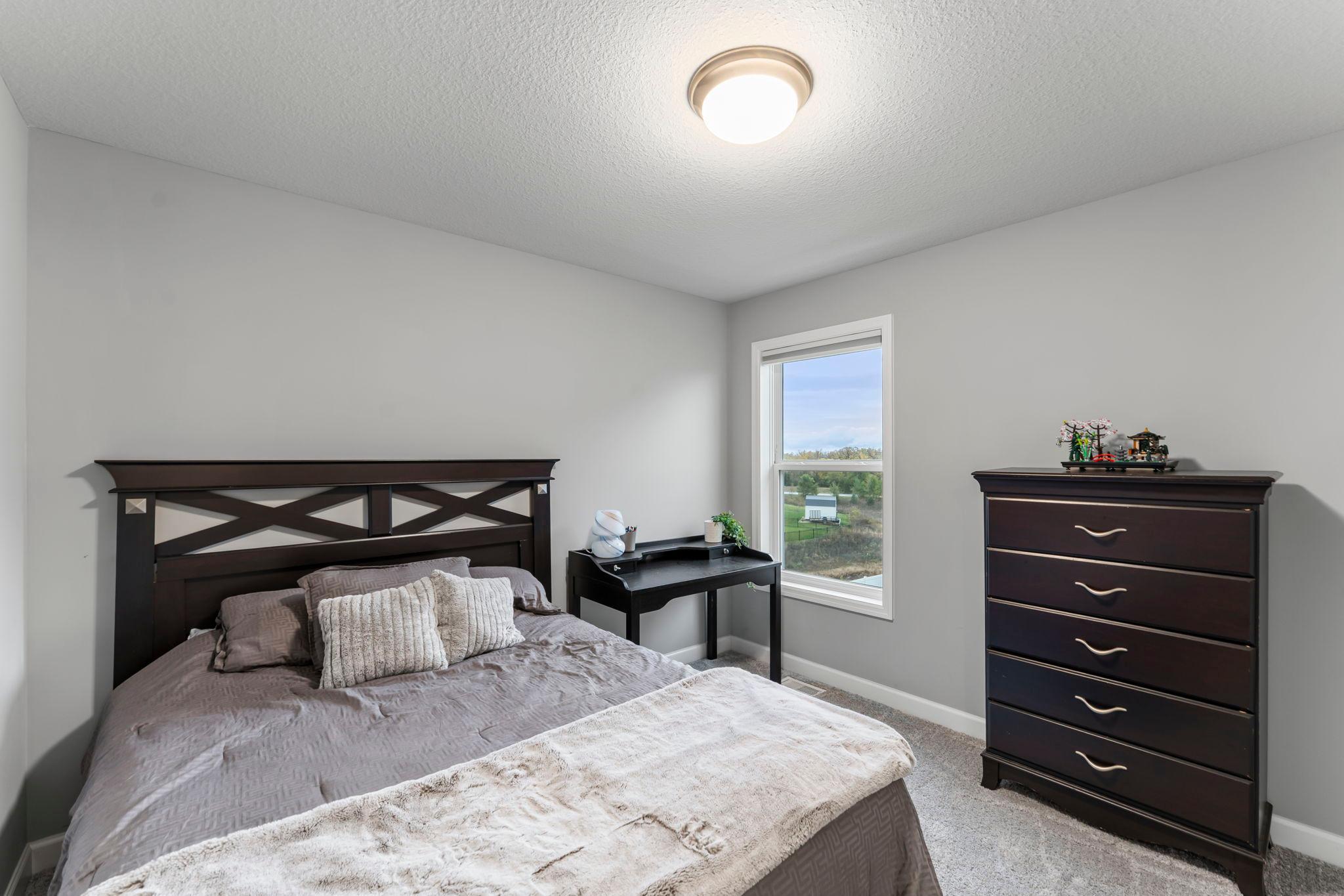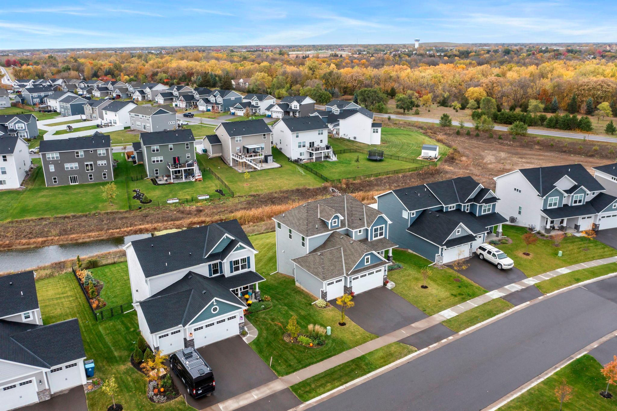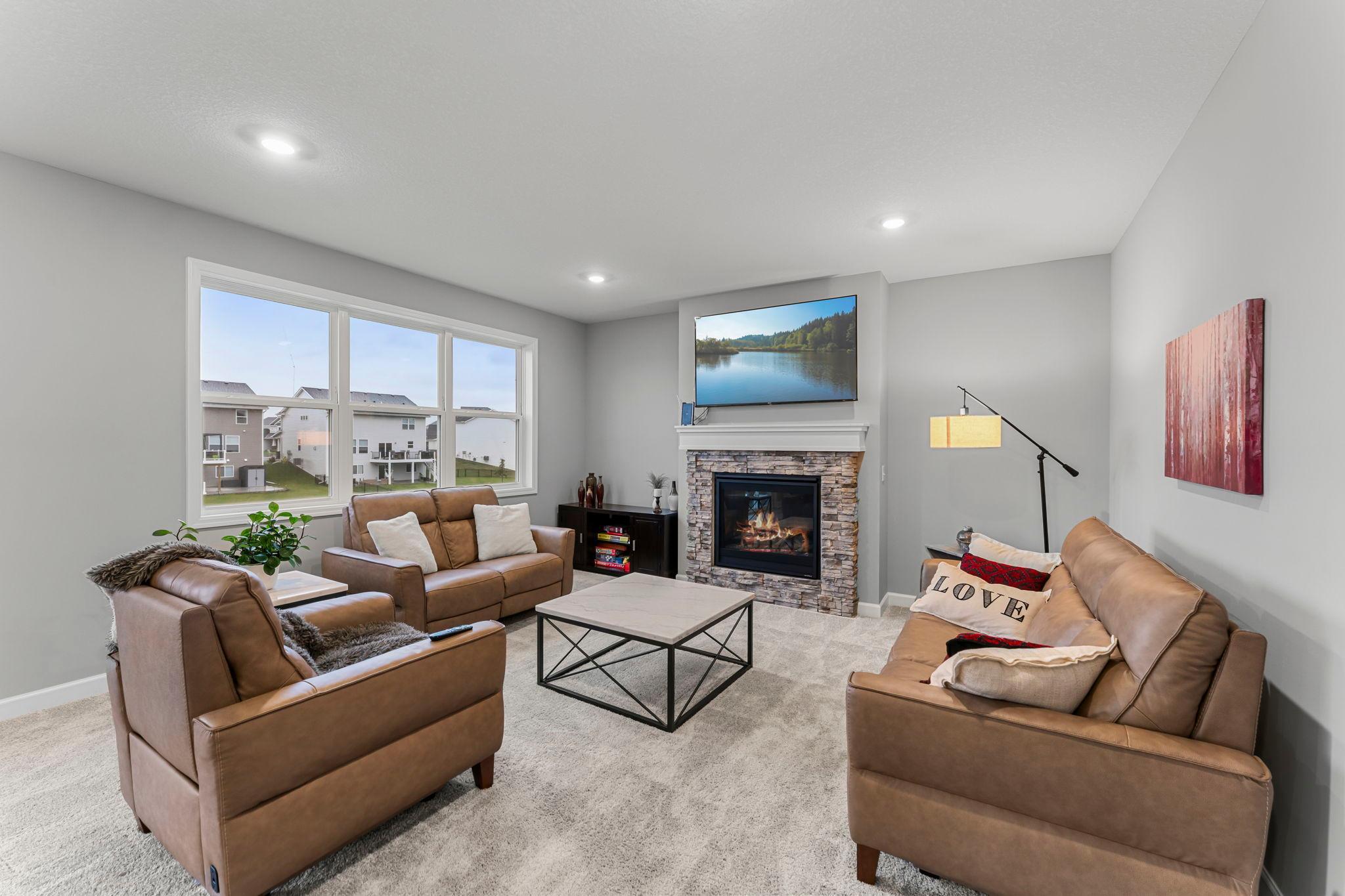 Welcome to this stunning four-bedroom, three-bathroom Lennar home in the highly sought-after Edgewater community. Built in 2023 near the Mississippi River, enjoy easy access to scenic trails, parks, shopping, and dining. The bright, open main level features luxury plank flooring, a front office with French doors, a spacious kitchen with stainless steel appliances, a large center island, and walk-in pantry, plus a cozy living room with a gas fireplace. Upstairs offers four generously sized bedrooms, including a luxurious primary suite with a walk-in closet and private bathroom. The upper-level laundry includes a washer and dryer. The partially finished walkout lower level with new carpet is perfect for future living space. Three-car garage. A must-see!