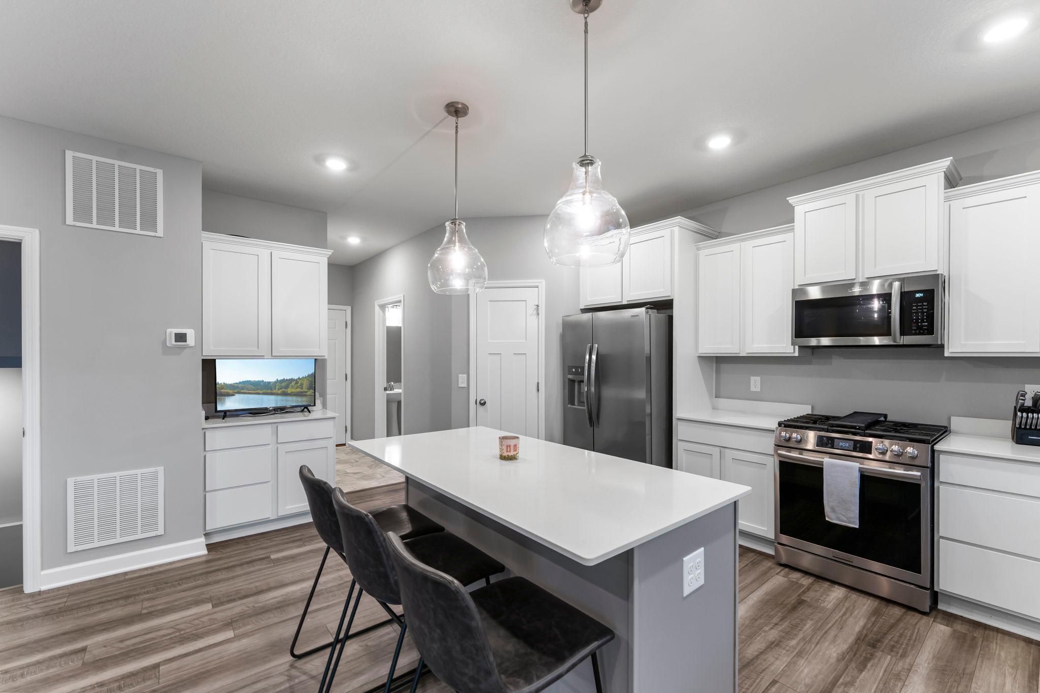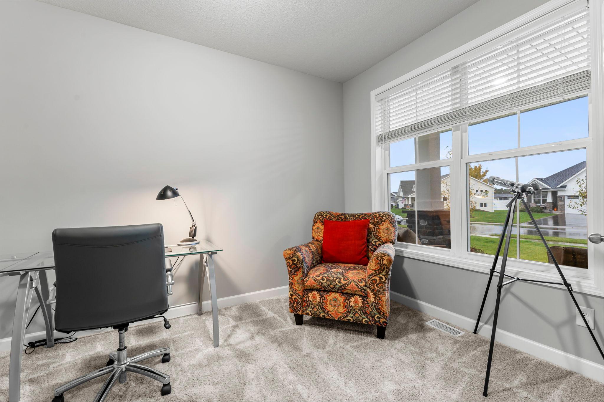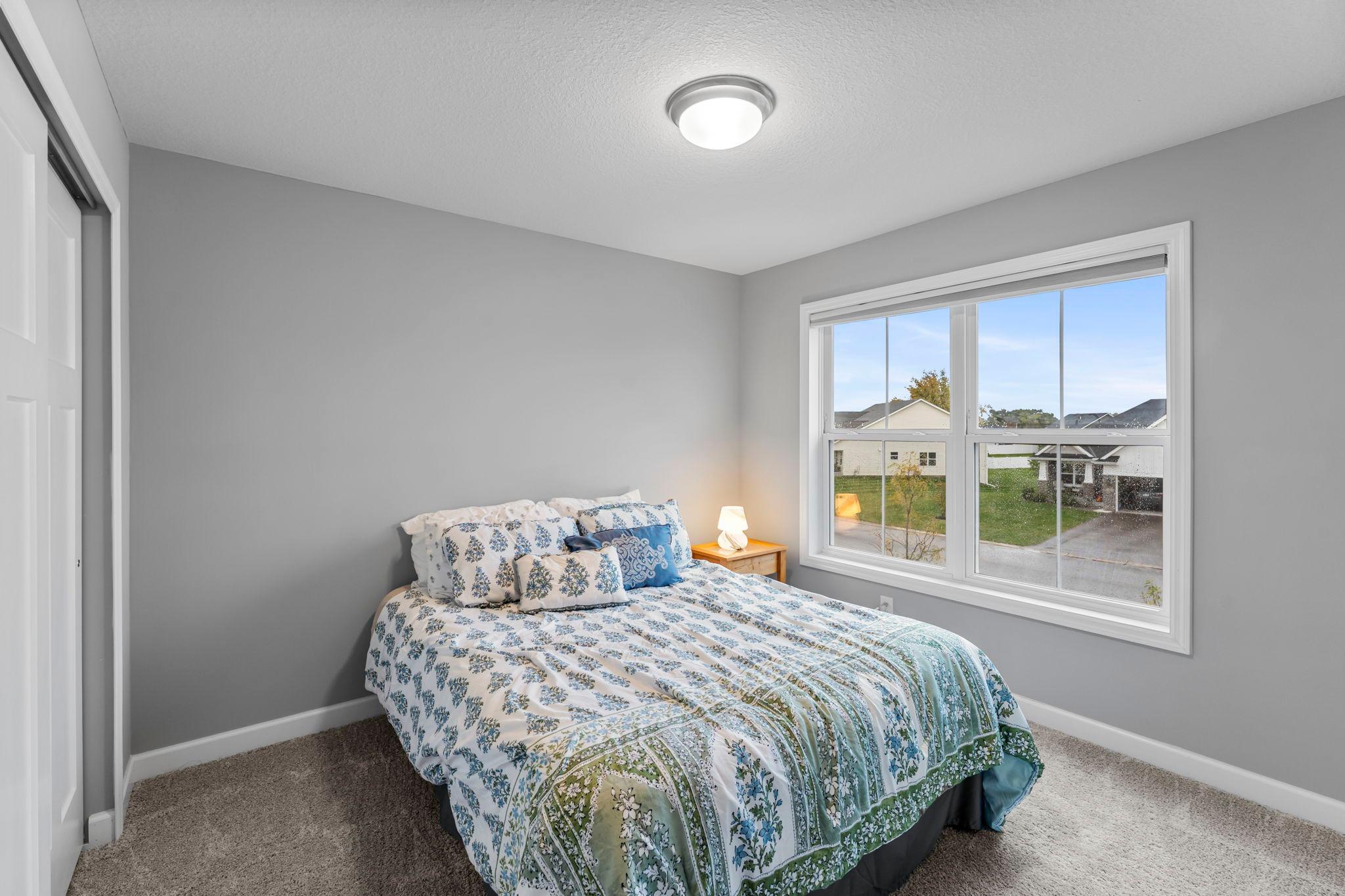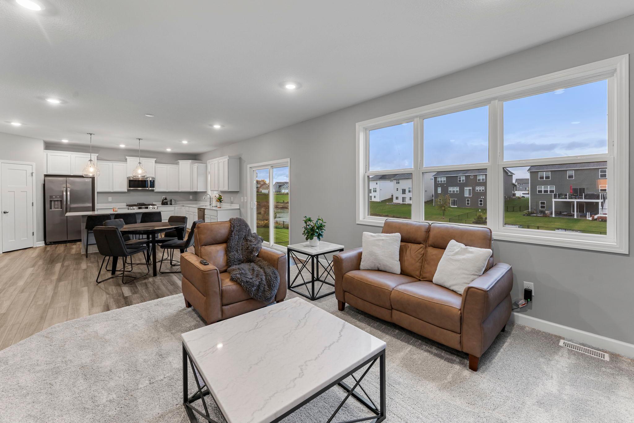 Welcome to this stunning four-bedroom, three-bathroom Lennar home in the highly sought-after Edgewater community. Built in 2023 near the Mississippi River, enjoy easy access to scenic trails, parks, shopping, and dining. The bright, open main level features luxury plank flooring, a front office with French doors, a spacious kitchen with stainless steel appliances, a large center island, and walk-in pantry, plus a cozy living room with a gas fireplace. Upstairs offers four generously sized bedrooms, including a luxurious primary suite with a walk-in closet and private bathroom. The upper-level laundry includes a washer and dryer. The partially finished walkout lower level with new carpet is perfect for future living space. Three-car garage. A must-see!
