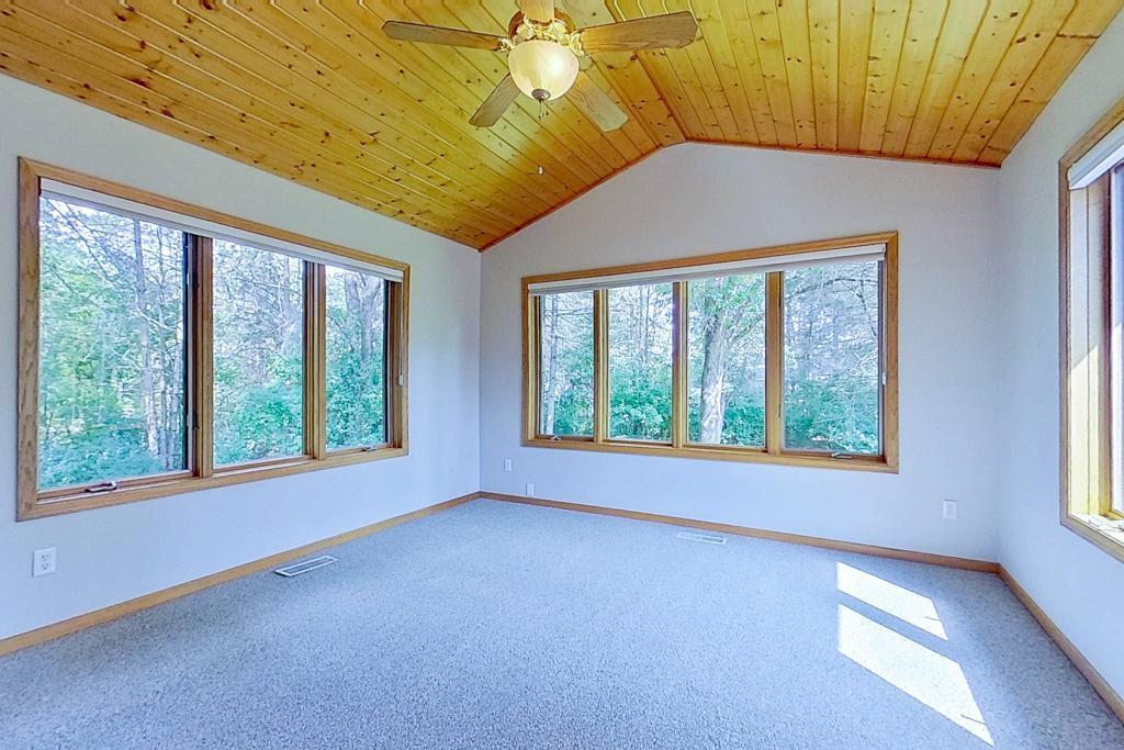 Hurry back in! If you are looking for a single level semi-detached townhome, this is the home for you! Just listed, freshly painted, new carpet and vin1 and Septic System in 2021! S!op new and come back and see this, like new, massive home! 18 SF 1834 on the main level including a kitchen with informal eating space and loads of cabinets! There is a huge dining room that opens on to the cozy living room with gas fireplace and built in cabinets. Just off the living room there is a 14x14 vaulted porch with wood ceilings and tons of windows! It opens onto a large, newer 14x14 maintenance free deck where you can sit and view all of the wildlife that wanders through the beautiful, wooded lot. There is a huge master bedroom with large walk-in closet and beautiful ensuite bath including whirlpool tub and separate shower. There are dual vanities and lots of cabinets too! Just out the door is the main floor laundry and another bedroom/office. The lower level completes the picture with a huge family room, 2 more nice sized bedrooms and another bath! So much space for such a competitive price! Hurry to see! It won't last long!!