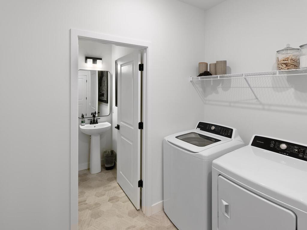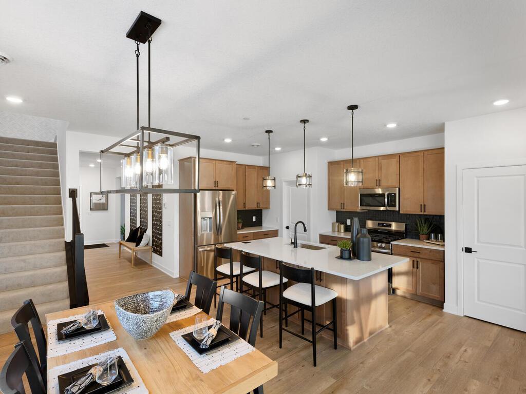 Our new Nolan floorplan offers many characteristics including a spacious main level living design with an open kitchen that includes an oversized center island, staggered height cabinetry, and quartz countertops! There are 2 additional bedrooms, a flex room and a loft in the upper level. The home comes with a Stainless Steel Appliance Package featuring a counter-depth refrigerator. Luxury vinyl plank flooring in Foyer, Kitchen, Dinette and Great Room! Convenient main level laundry room and 9' ceilings on main level with Knock Down finish. The home comes with our Hayfield® Vinyl Window Package, Moen® Kitchen and bath faucets and a concrete patio, and an oversized 2-car garage!