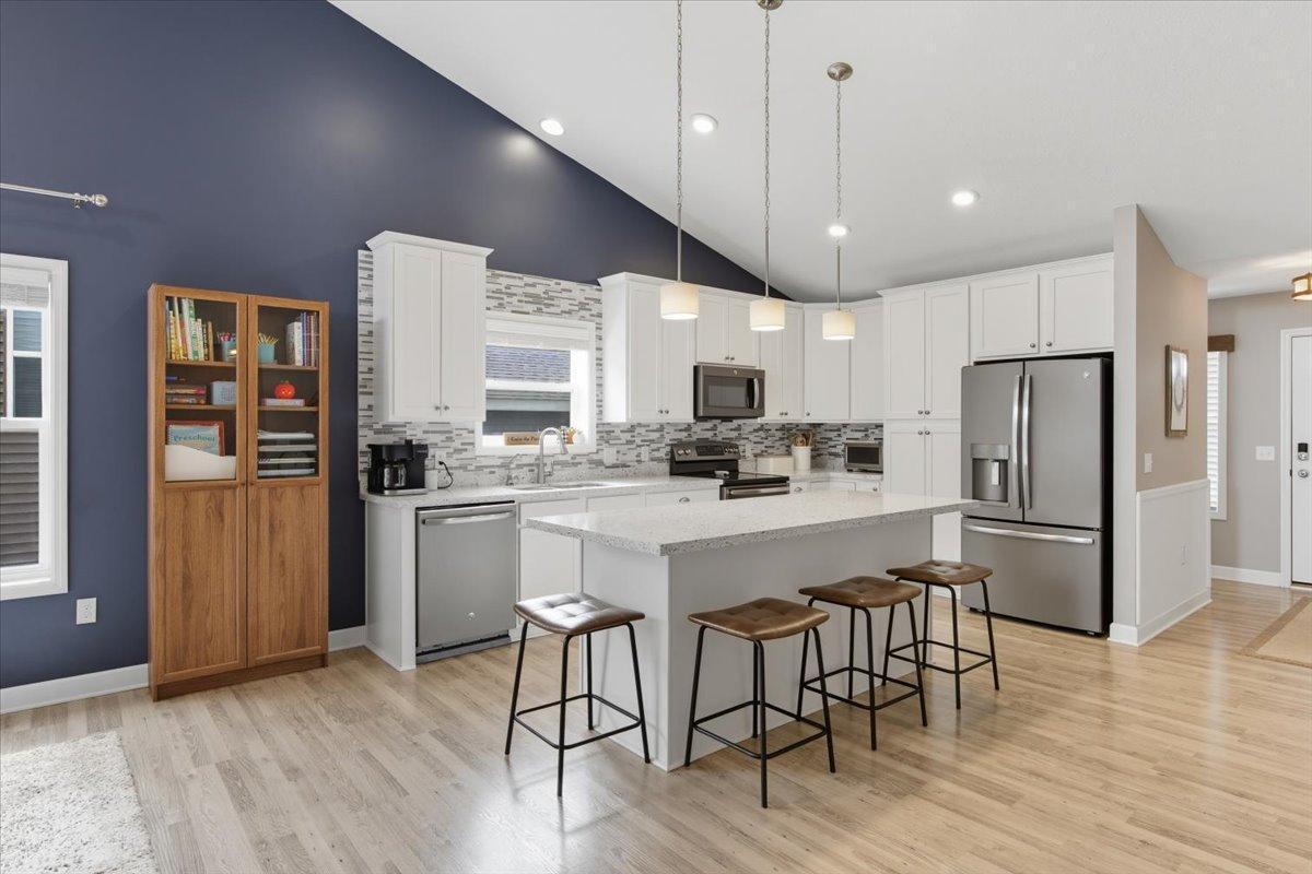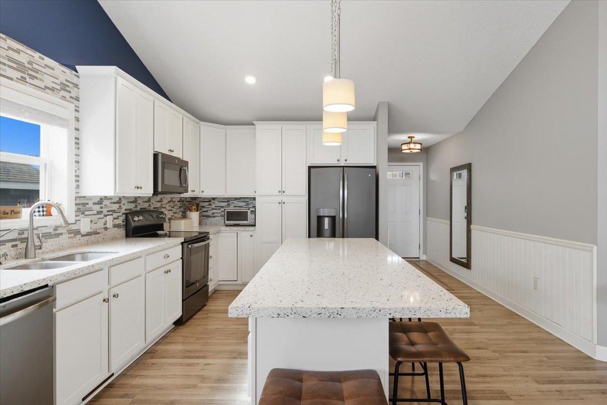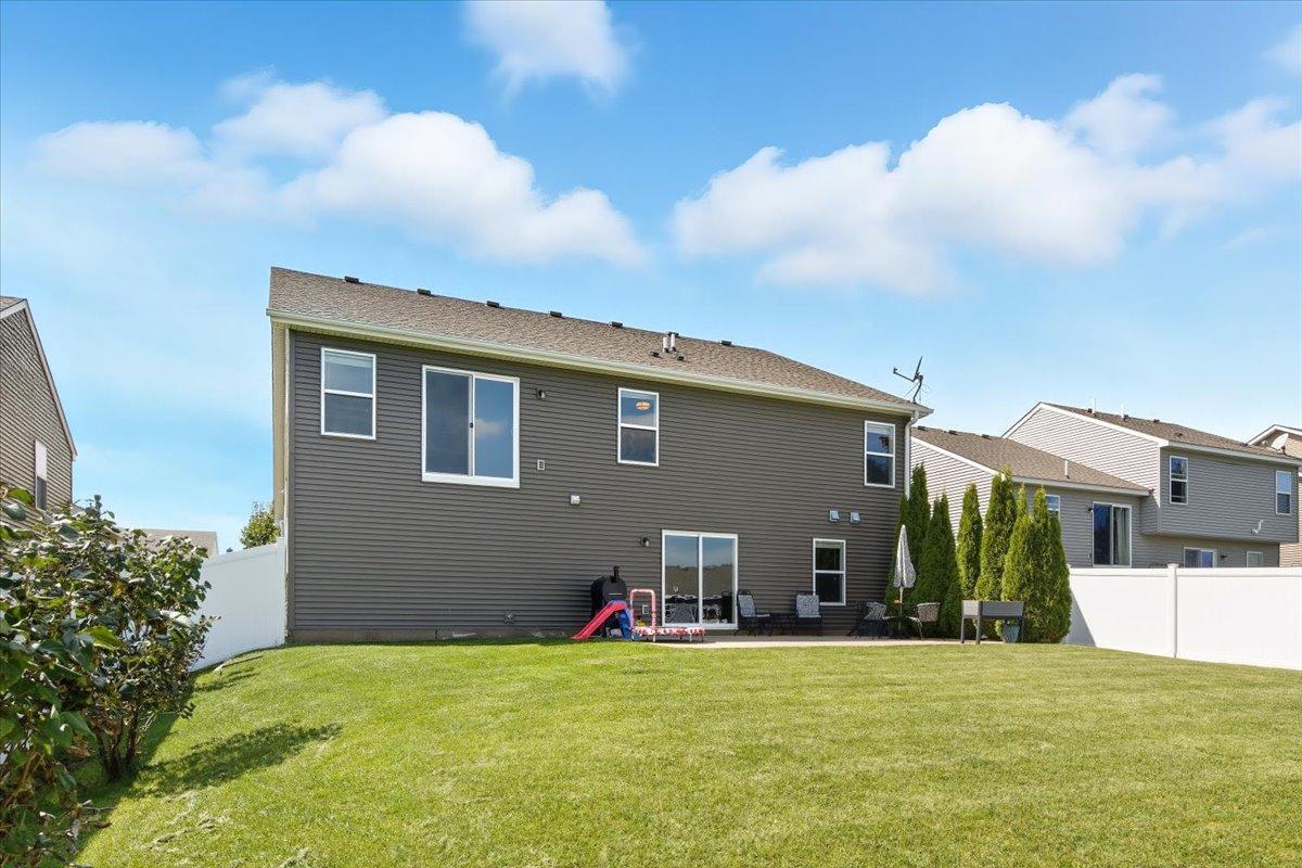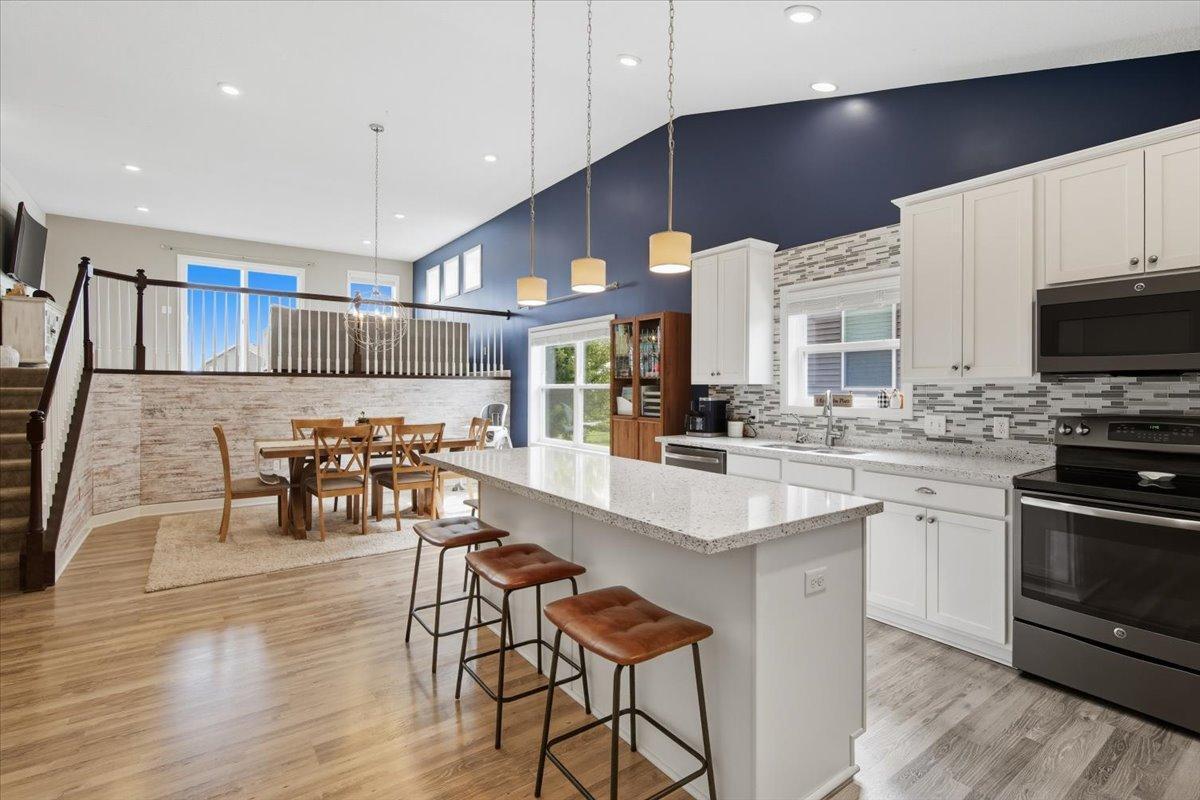 Welcome to this well-maintained 4-bedroom, 4-bathroom Home located in Rosemount’s desirable Greystone neighborhood. Built in 2015, the property offers nearly 2,800 finished square feet with a floor plan that provides both functionality and flexibility. The main level features an open design with large windows that bring in natural light. The living room flows into the dining area and kitchen, creating a central gathering space. The kitchen includes modern cabinetry, stainless steel appliances, and a center island that allows for both preparation and informal seating. A mudroom and half bath complete the main level. Upstairs, you will find a large living room complete with sliding glass door and transom windows that bring ample light in the space. Three spacious bedrooms and two bathrooms on the upstairs level create a great floor plan with room for everyone. The primary suite includes a private en suite bath with double vanities and large walk-in shower. Your private retreat also features two large closets, including a walk-in. The fully finished walk-out lower level extends the living space and provides direct access to the fully-fenced backyard. This level includes a large family room and rec room, a full bathroom, and access to the patio, making it well suited for both entertaining and everyday use. The exterior of the home features a fenced backyard with a 6-foot vinyl privacy fence installed with a transferable warranty. The oversized 3-car garage is heated, insulated, and outfitted with epoxy flooring, side access, and a built-in storage system. Additional updates include fresh paint, a high-efficiency water softener, and a reverse osmosis water system. Situated in a rapidly growing community with nearby parks, walking trails, and local amenities, this home offers modern updates, practical features, and a location that supports both comfort and convenience. Within walking distance of School District 196's newest elementary school, Emerald Trail.