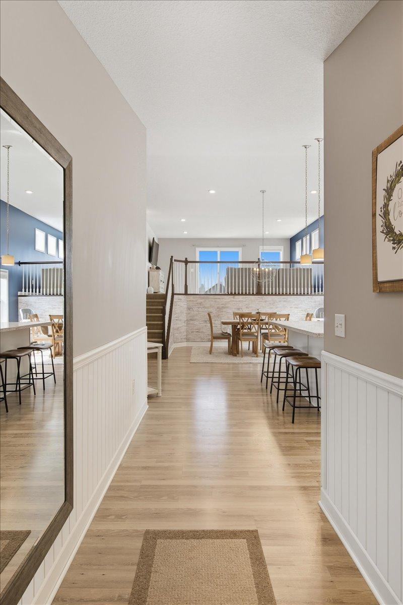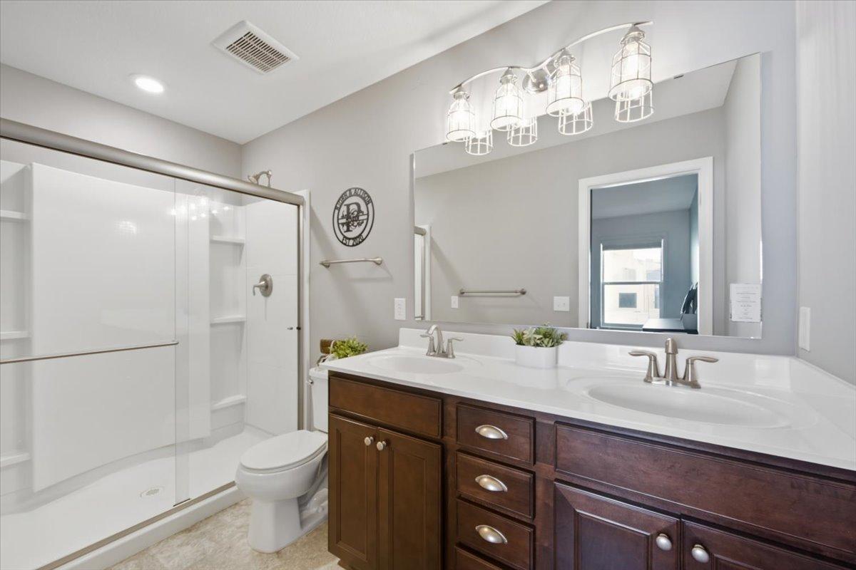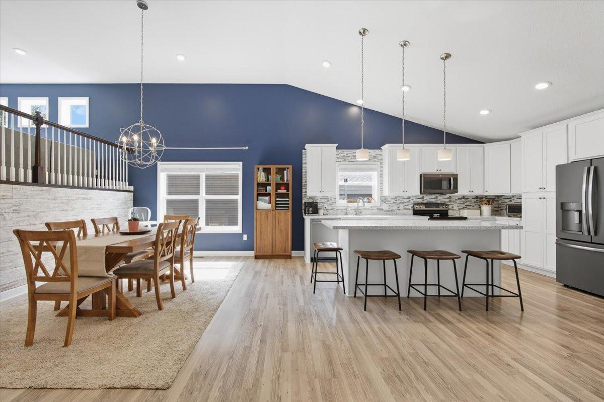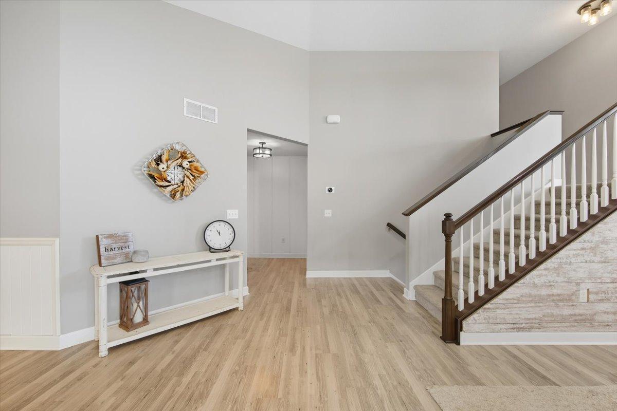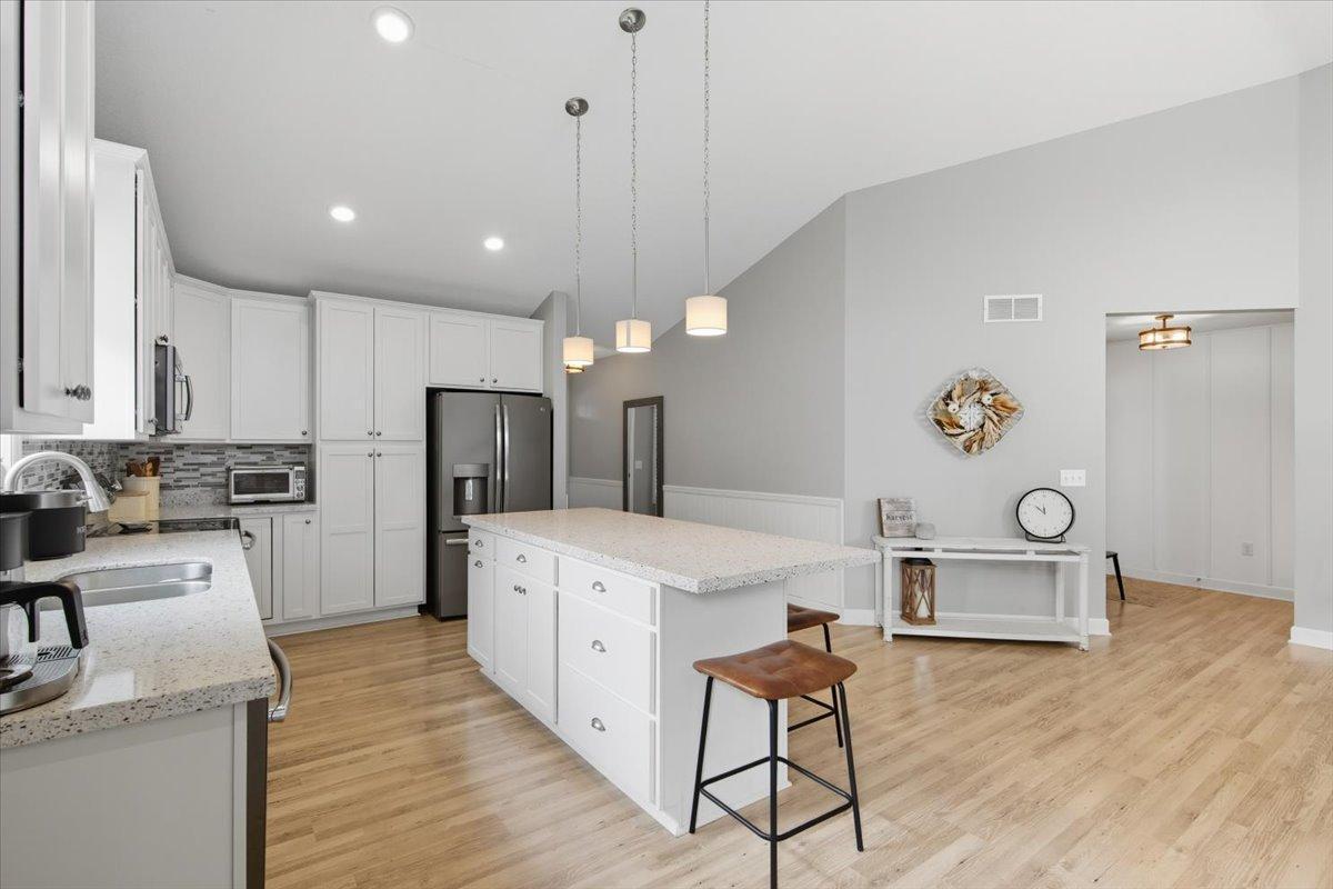 Welcome to this well-maintained 4-bedroom, 4-bathroom Home located in Rosemount’s desirable Greystone neighborhood. Built in 2015, the property offers nearly 2,800 finished square feet with a floor plan that provides both functionality and flexibility. The main level features an open design with large windows that bring in natural light. The living room flows into the dining area and kitchen, creating a central gathering space. The kitchen includes modern cabinetry, stainless steel appliances, and a center island that allows for both preparation and informal seating. A mudroom and half bath complete the main level. Upstairs, you will find a large living room complete with sliding glass door and transom windows that bring ample light in the space. Three spacious bedrooms and two bathrooms on the upstairs level create a great floor plan with room for everyone. The primary suite includes a private en suite bath with double vanities and large walk-in shower. Your private retreat also features two large closets, including a walk-in. The fully finished walk-out lower level extends the living space and provides direct access to the fully-fenced backyard. This level includes a large family room and rec room, a full bathroom, and access to the patio, making it well suited for both entertaining and everyday use. The exterior of the home features a fenced backyard with a 6-foot vinyl privacy fence installed with a transferable warranty. The oversized 3-car garage is heated, insulated, and outfitted with epoxy flooring, side access, and a built-in storage system. Additional updates include fresh paint, a high-efficiency water softener, and a reverse osmosis water system. Situated in a rapidly growing community with nearby parks, walking trails, and local amenities, this home offers modern updates, practical features, and a location that supports both comfort and convenience. Within walking distance of School District 196's newest elementary school, Emerald Trail.