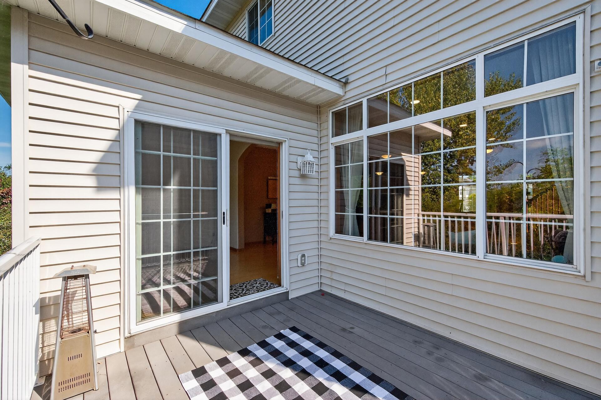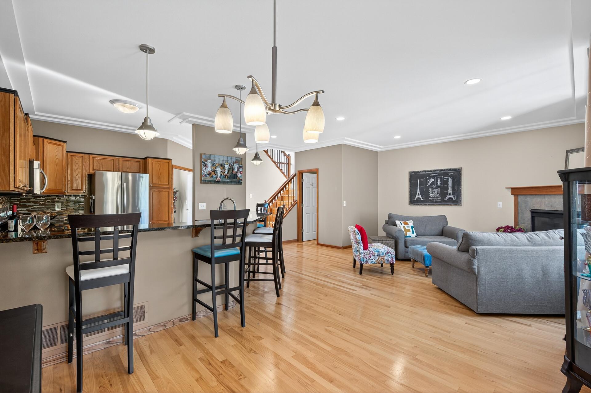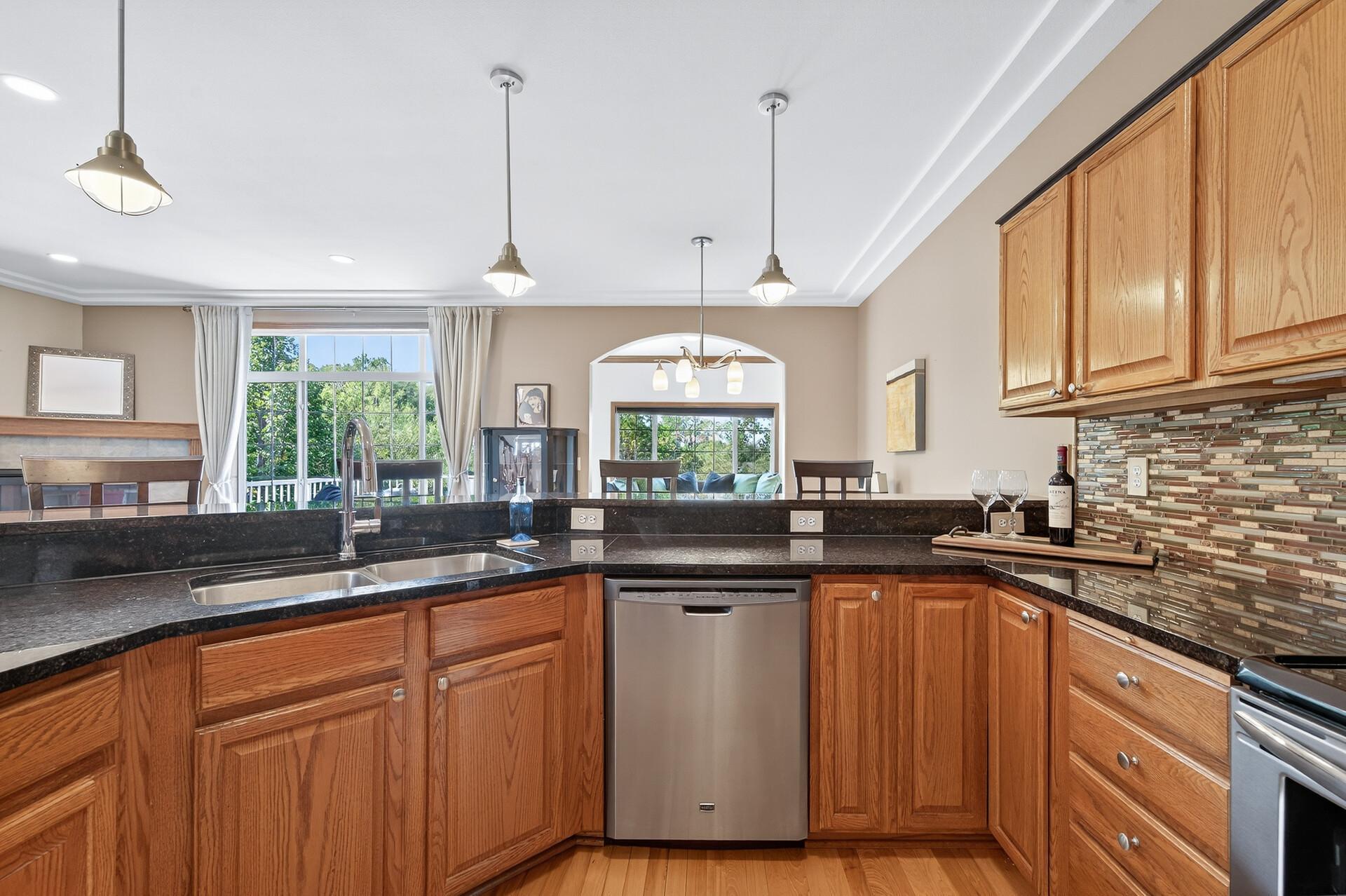 Light-filled end-unit in Fountain Hills! This well maintained, beautiful end-unit townhome boasts a bright and open main level, designed for effortless living and entertaining. Expansive windows fill the space with natural light, highlighting hickory hardwood floors and a seamless flow from the living area with a cozy gas fireplace to the dining area and sunroom, perfect for additional seating. The stylish kitchen features upgraded stainless steel appliances, granite countertops, a tile backsplash, and a breakfast bar. There is also a dedicated office with French doors, perfect for a home workspace. With 3 bedrooms and 4 baths, this home offers exceptional flexibility. The primary suite includes a spa-inspired bath with a soaking tub, separate walk-in shower, double sinks, and a spacious walk-in closet. The laundry room is conveniently located near the bedrooms. The walkout lower level features the 3rd bedroom with an adjoining ¾ bath—perfect for a guest suite or family room. Additional highlights include 9-foot ceilings, a heated two-car garage, two outdoor living areas—a composite deck off the sunroom, ideal for entertaining, plus a patio—and a serene tree-lined lot providing added privacy and natural beauty. The HOA Dues are only $263 a month, reasonable taxes too! Turnkey and move-in ready, this townhome combines comfort, functionality, and style—an outstanding opportunity in Fountain Hills!