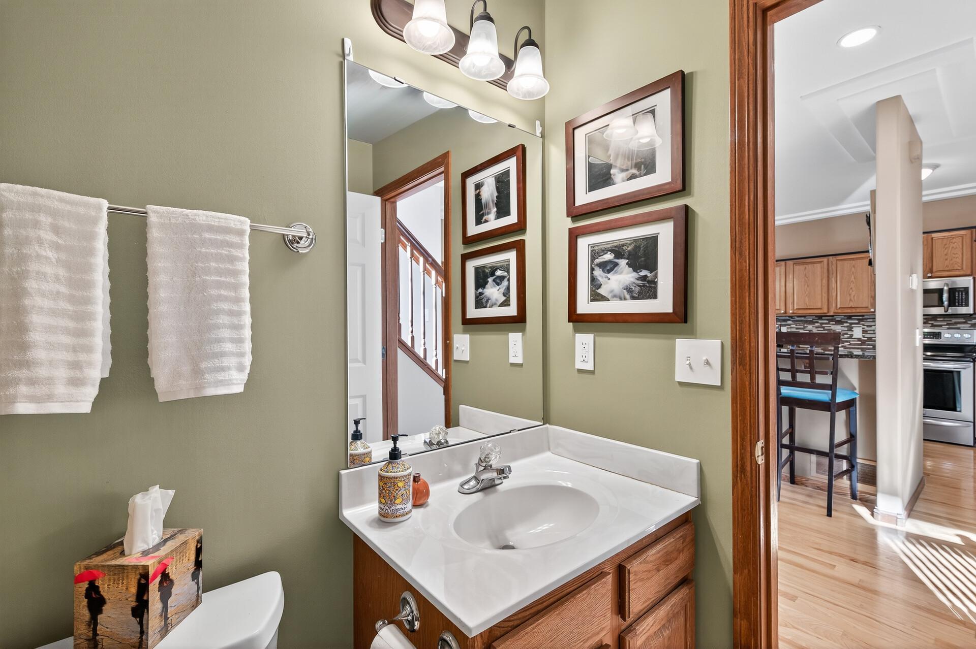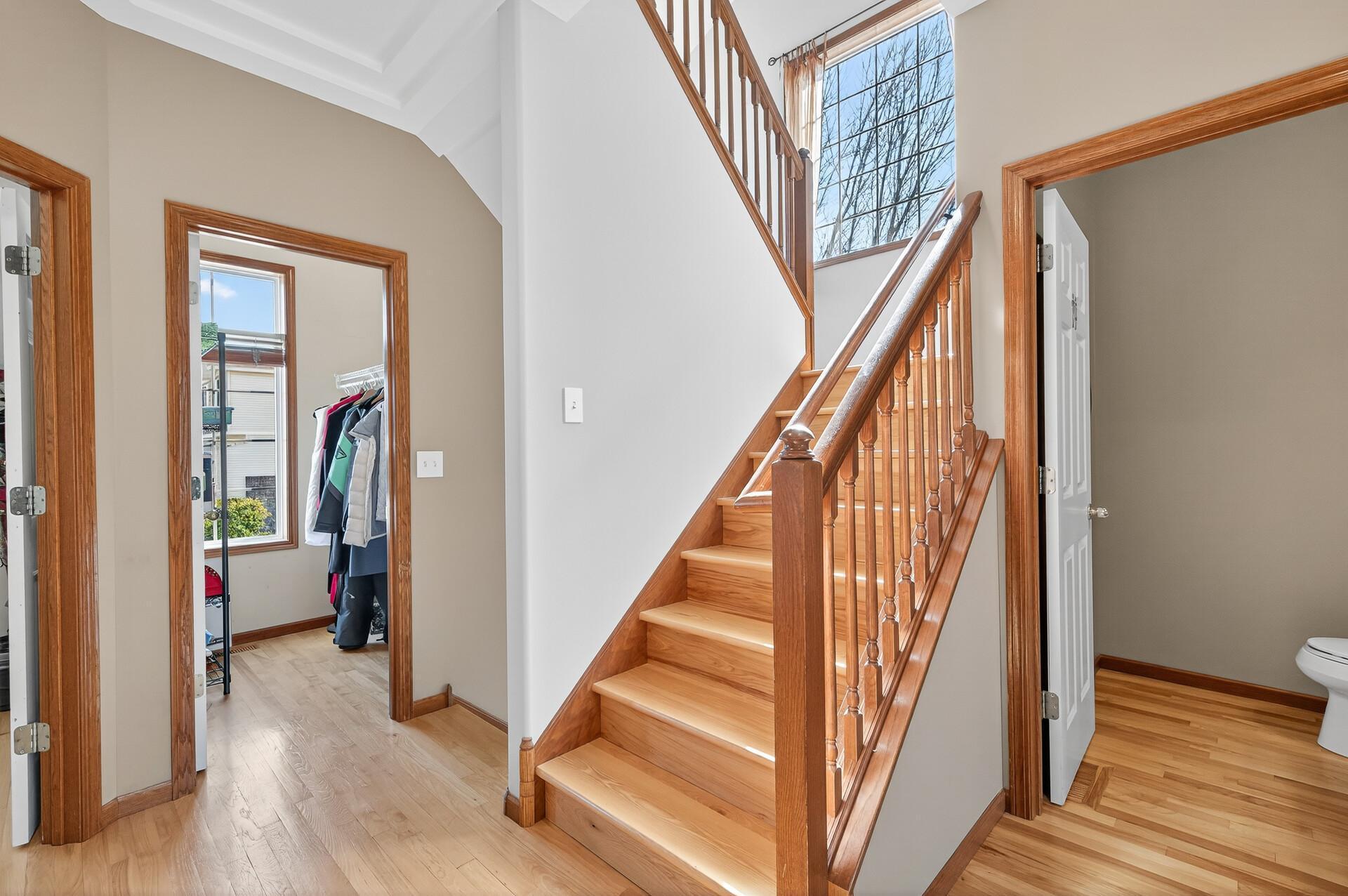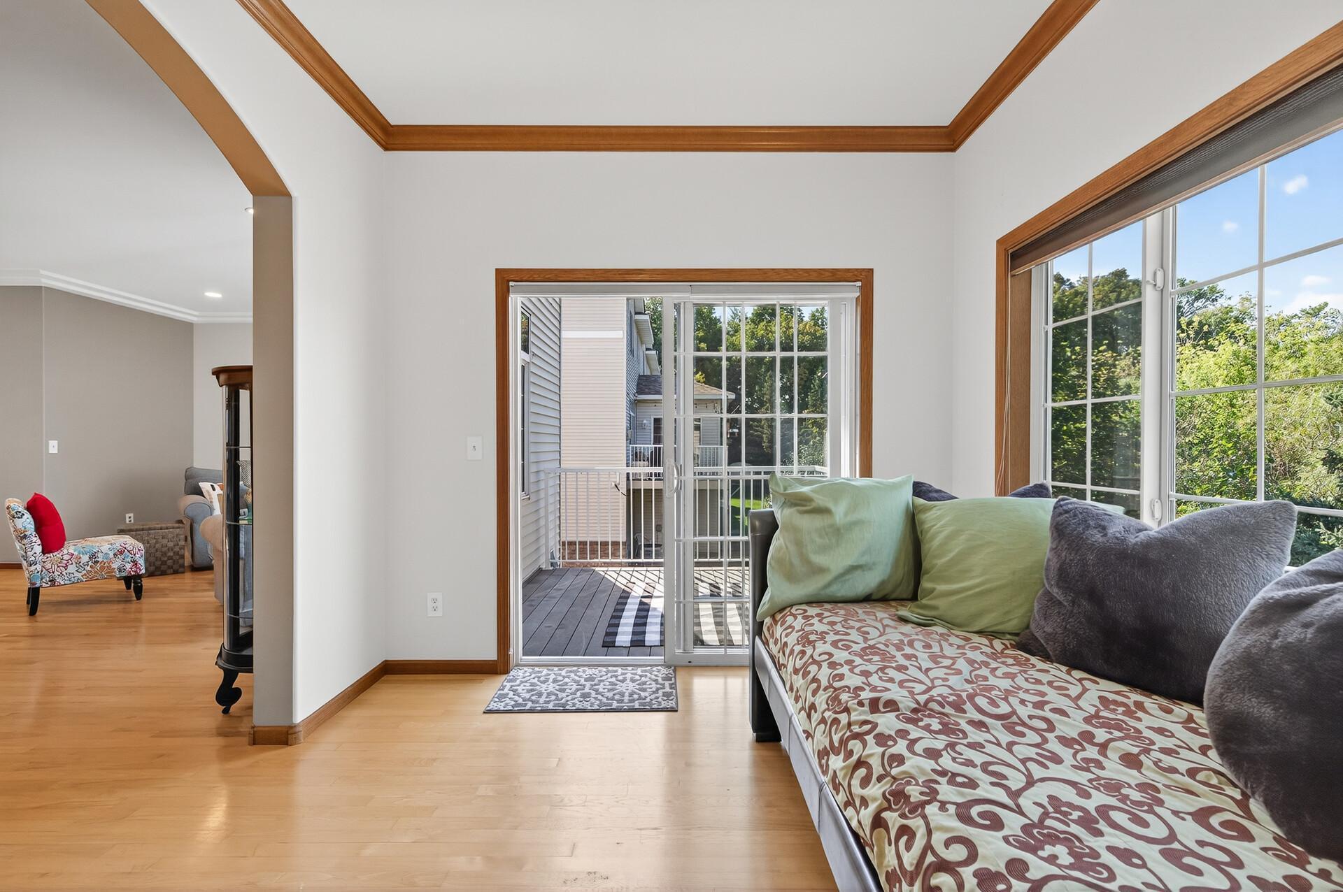 Light-filled end-unit in Fountain Hills! This well maintained, beautiful end-unit townhome boasts a bright and open main level, designed for effortless living and entertaining. Expansive windows fill the space with natural light, highlighting hickory hardwood floors and a seamless flow from the living area with a cozy gas fireplace to the dining area and sunroom, perfect for additional seating. The stylish kitchen features upgraded stainless steel appliances, granite countertops, a tile backsplash, and a breakfast bar. There is also a dedicated office with French doors, perfect for a home workspace. With 3 bedrooms and 4 baths, this home offers exceptional flexibility. The primary suite includes a spa-inspired bath with a soaking tub, separate walk-in shower, double sinks, and a spacious walk-in closet. The laundry room is conveniently located near the bedrooms. The walkout lower level features the 3rd bedroom with an adjoining ¾ bath—perfect for a guest suite or family room. Additional highlights include 9-foot ceilings, a heated two-car garage, two outdoor living areas—a composite deck off the sunroom, ideal for entertaining, plus a patio—and a serene tree-lined lot providing added privacy and natural beauty. The HOA Dues are only $263 a month, reasonable taxes too! Turnkey and move-in ready, this townhome combines comfort, functionality, and style—an outstanding opportunity in Fountain Hills!