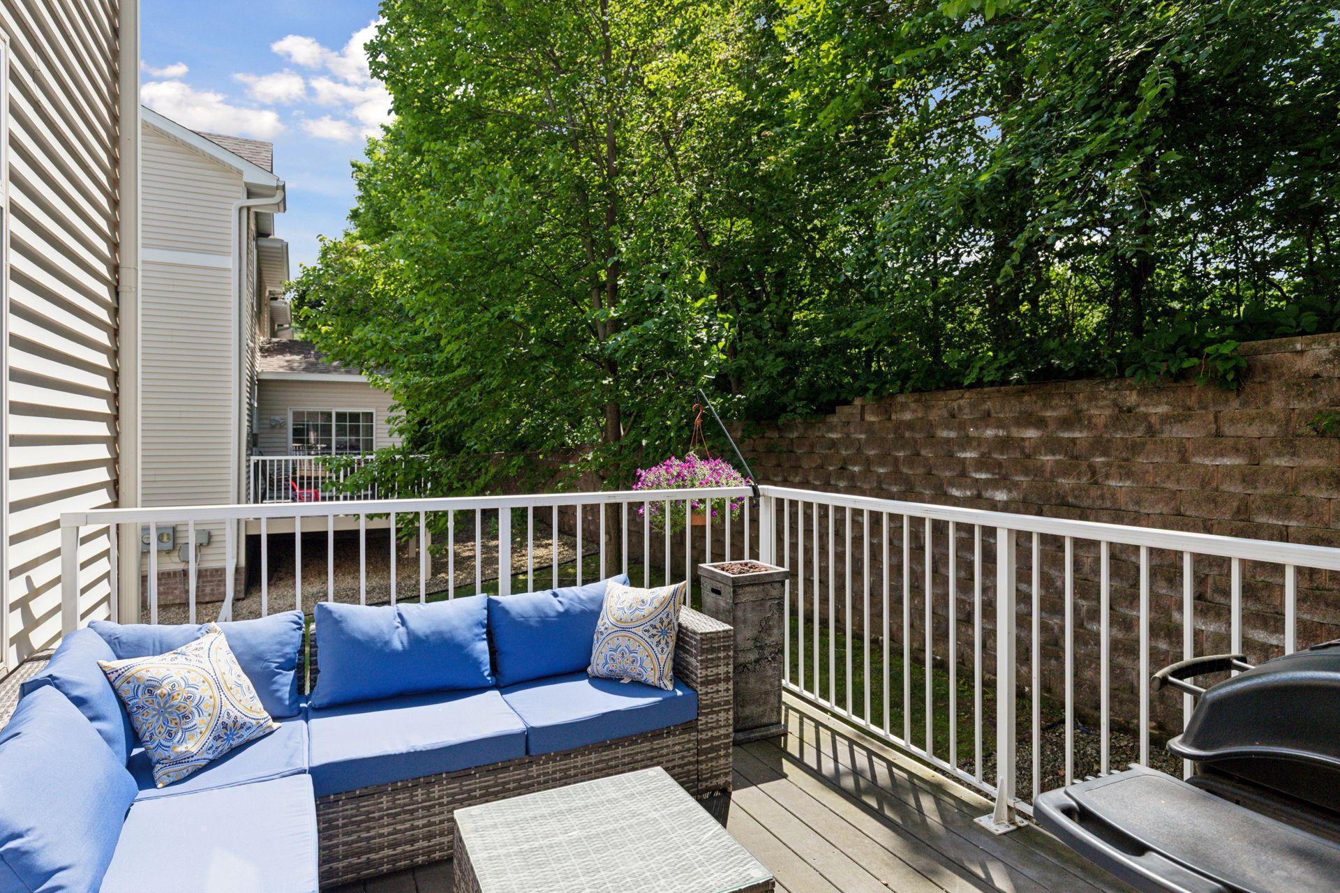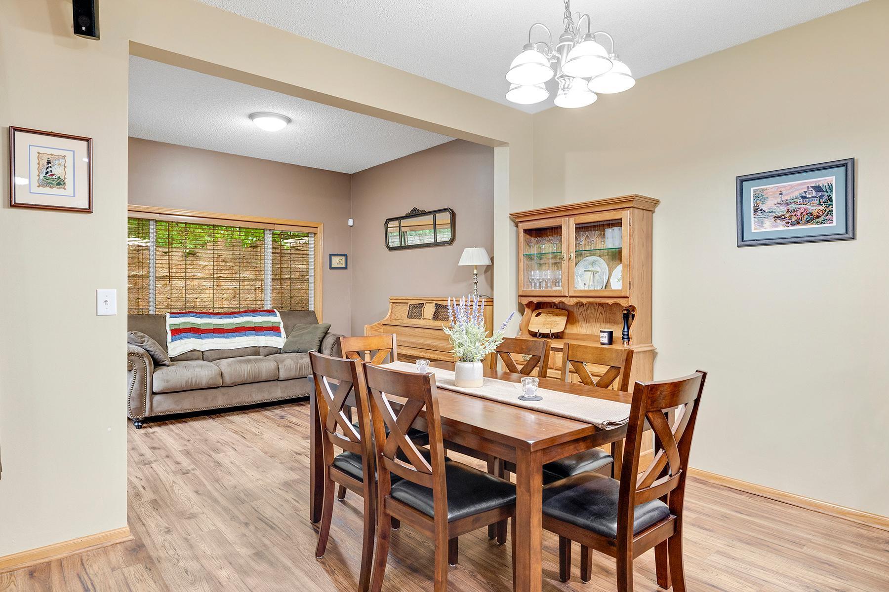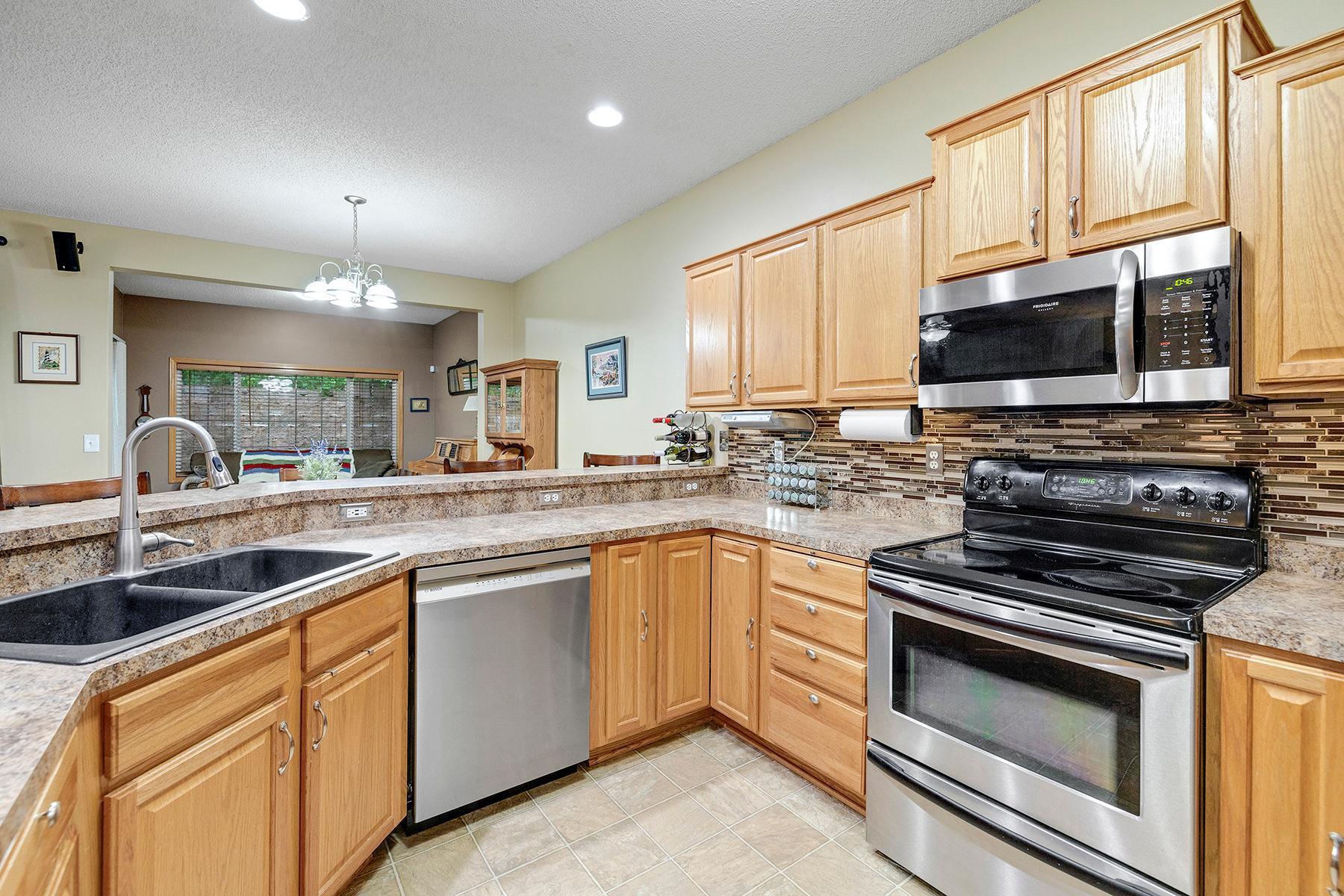 This stunning end-unit townhome offers privacy and natural beauty, backing up to serene woods and featuring front-to-back windows that fill the home with light. The open-concept main level includes hardwood floors throughout the living areas, a bright sunroom with peaceful wooded views, and a spacious kitchen that flows into the living room—perfect for entertaining. The kitchen includes quality appliances, a walk-in pantry, and access to the deck. You'll also find a convenient main-level office. Upstairs, the primary suite features a private bath, along with a second bedroom, full bath, and laundry. The finished lower level is currently used as a family room with a wet bar but could easily function as a third bedroom with its own 3/4 bath. Recent updates include new toilets (2021), CO2/smoke detectors on each level (2021), bedroom smoke detectors (2021), a new furnace and A/C (2022), water heater and softener (2023), and a new dishwasher (2024). Carpets were professionally cleaned in 2025, and the home has been meticulously maintained with annual servicing of HVAC, electric, and plumbing systems by On Time Service Pros. Located in a highly convenient area close to shopping, restaurants, and major freeways, and served by the sought-after Prior Lake schools. Move-in ready with thoughtful upgrades throughout!