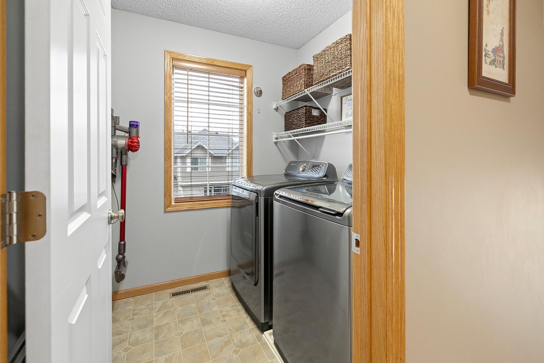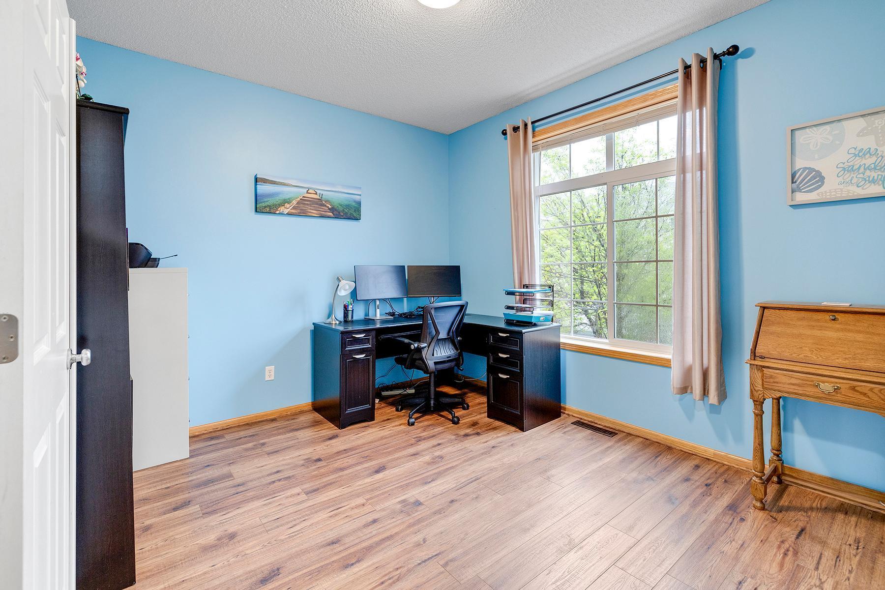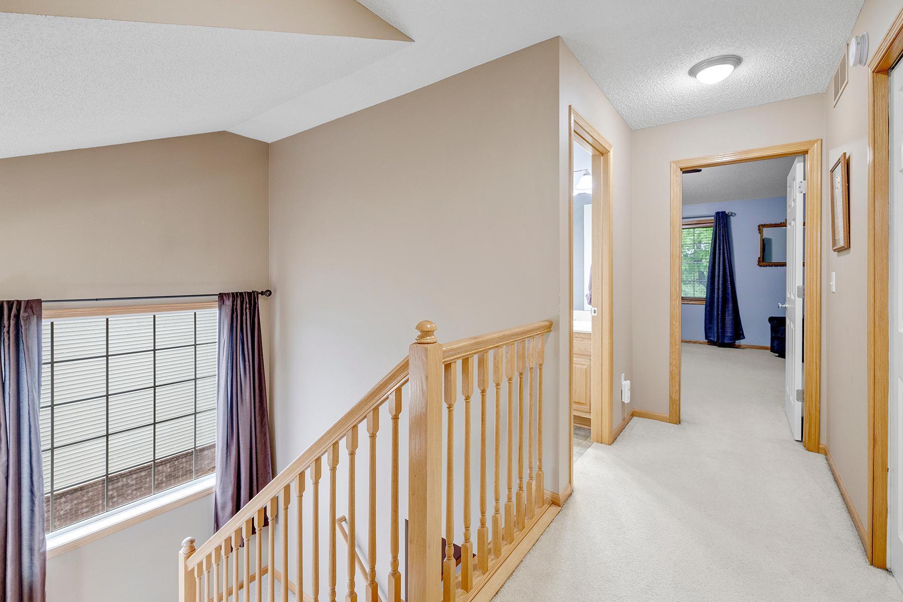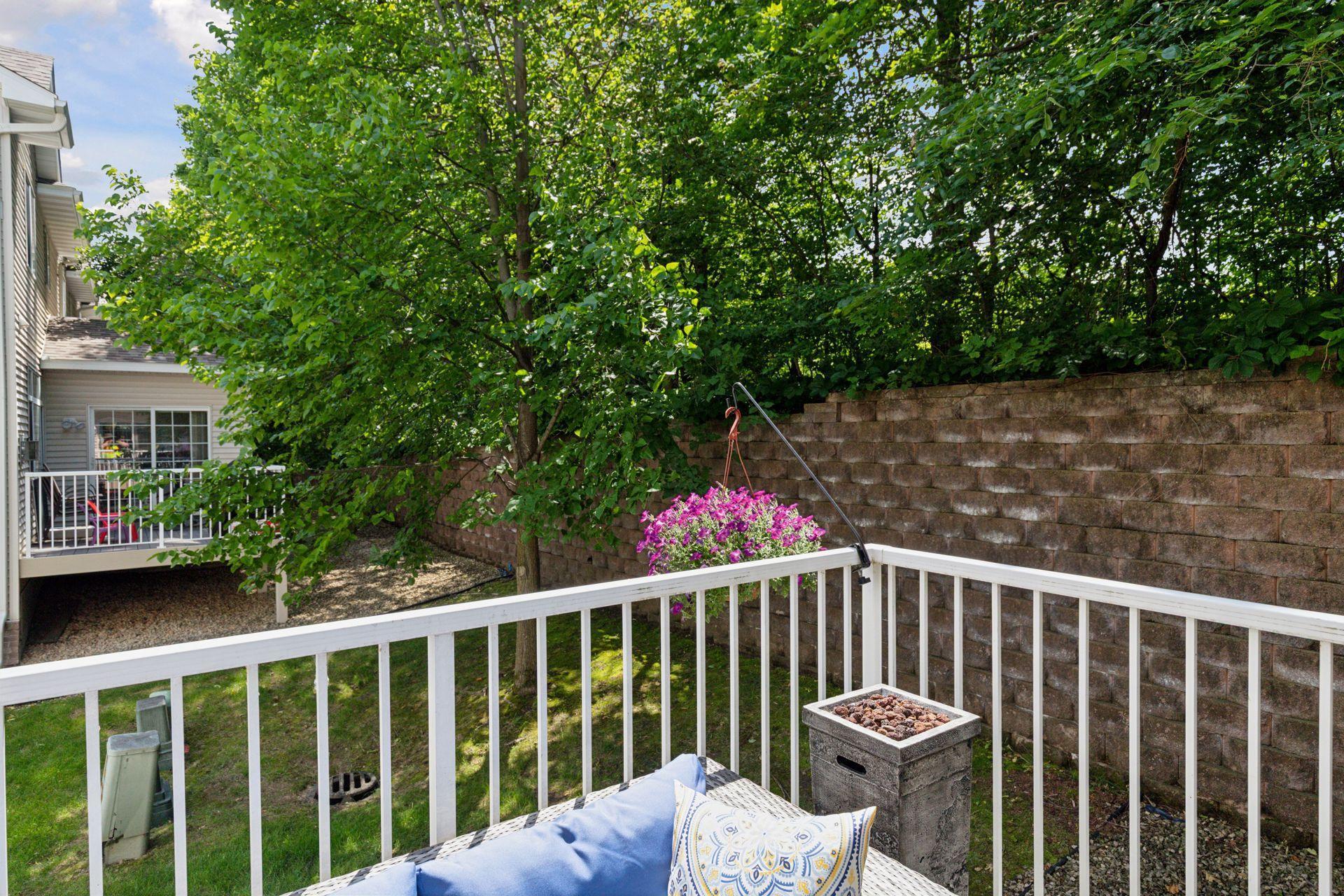 This stunning end-unit townhome offers privacy and natural beauty, backing up to serene woods and featuring front-to-back windows that fill the home with light. The open-concept main level includes hardwood floors throughout the living areas, a bright sunroom with peaceful wooded views, and a spacious kitchen that flows into the living room—perfect for entertaining. The kitchen includes quality appliances, a walk-in pantry, and access to the deck. You'll also find a convenient main-level office. Upstairs, the primary suite features a private bath, along with a second bedroom, full bath, and laundry. The finished lower level is currently used as a family room with a wet bar but could easily function as a third bedroom with its own 3/4 bath. Recent updates include new toilets (2021), CO2/smoke detectors on each level (2021), bedroom smoke detectors (2021), a new furnace and A/C (2022), water heater and softener (2023), and a new dishwasher (2024). Carpets were professionally cleaned in 2025, and the home has been meticulously maintained with annual servicing of HVAC, electric, and plumbing systems by On Time Service Pros. Located in a highly convenient area close to shopping, restaurants, and major freeways, and served by the sought-after Prior Lake schools. Move-in ready with thoughtful upgrades throughout!