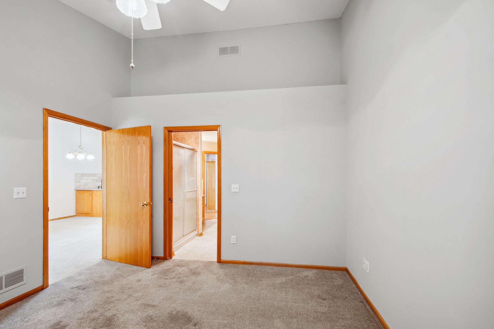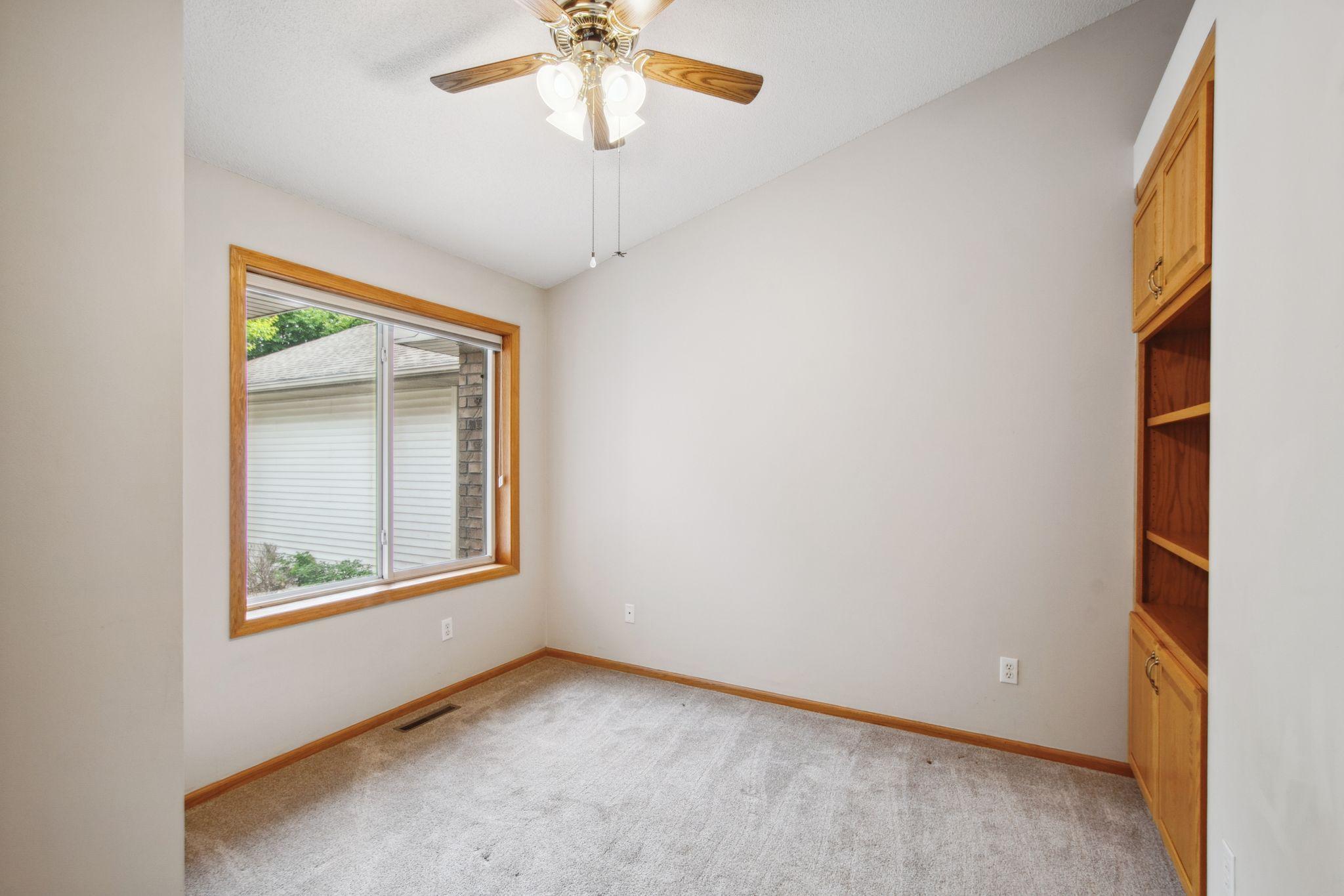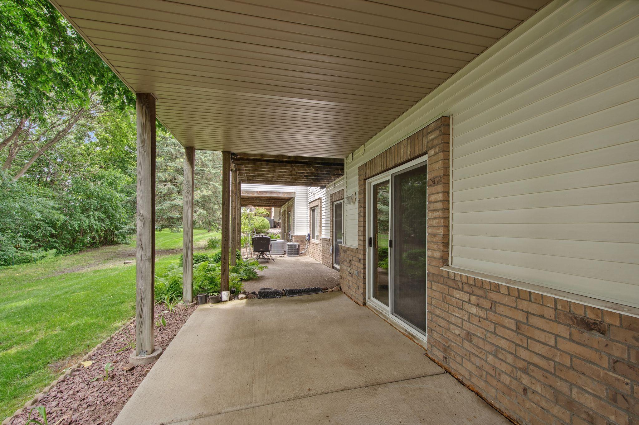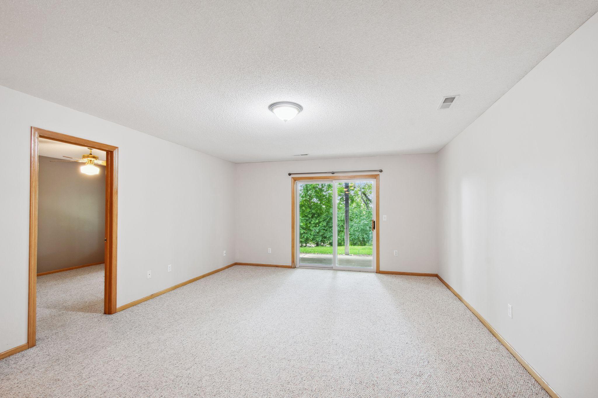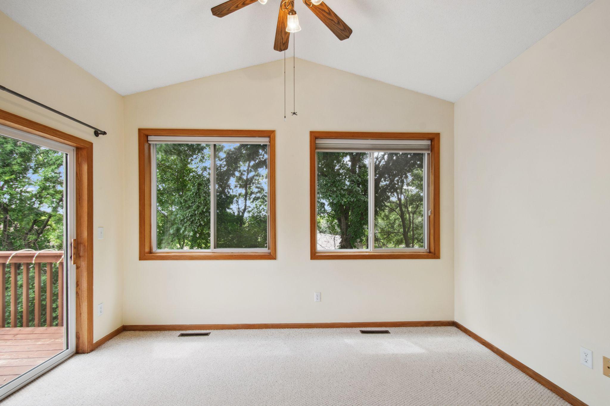 Welcome to this beautifully designed one-level, 3-bedroom, 2-bathroom townhome with a walkout basement, offering a perfect blend of comfort, style, and natural surroundings. This home features an inviting layout, with thoughtful upgrades throughout. The kitchen is both functional and charming, with hardwood floors, granite countertops, and built-in hutches, ideal for storage and display. The open-concept living area boasts vaulted ceilings and a skylight, filling the space with natural light. Relax year-round in the four-season porch, or step out onto the private deck (stained in 2025) overlooking a beautiful wooded area-a perfect spot for morning coffee or evening gatherings. The main-floor laundry adds everyday convenience, while the walkout basement offers additional living space and endless possibilities-family room, guest suite, office, or hobby area and a large space for storage. Updates include: garage door opener w/camera (2022), smoke alarms hard wired (2023), stove (2023), refrigerator (2021) and lower level tub to walk-in shower (2023). Don't miss this rare opportunity to own a move-in ready townhome, in a peaceful setting that feels like a retreat, yet is close to everything. Check out this wonderful home that is ready for your memories!