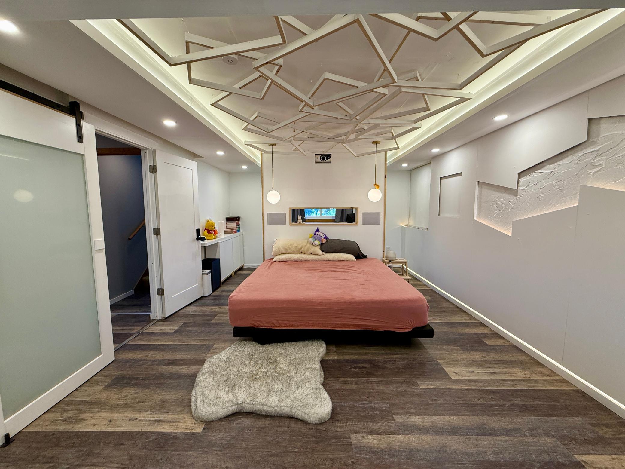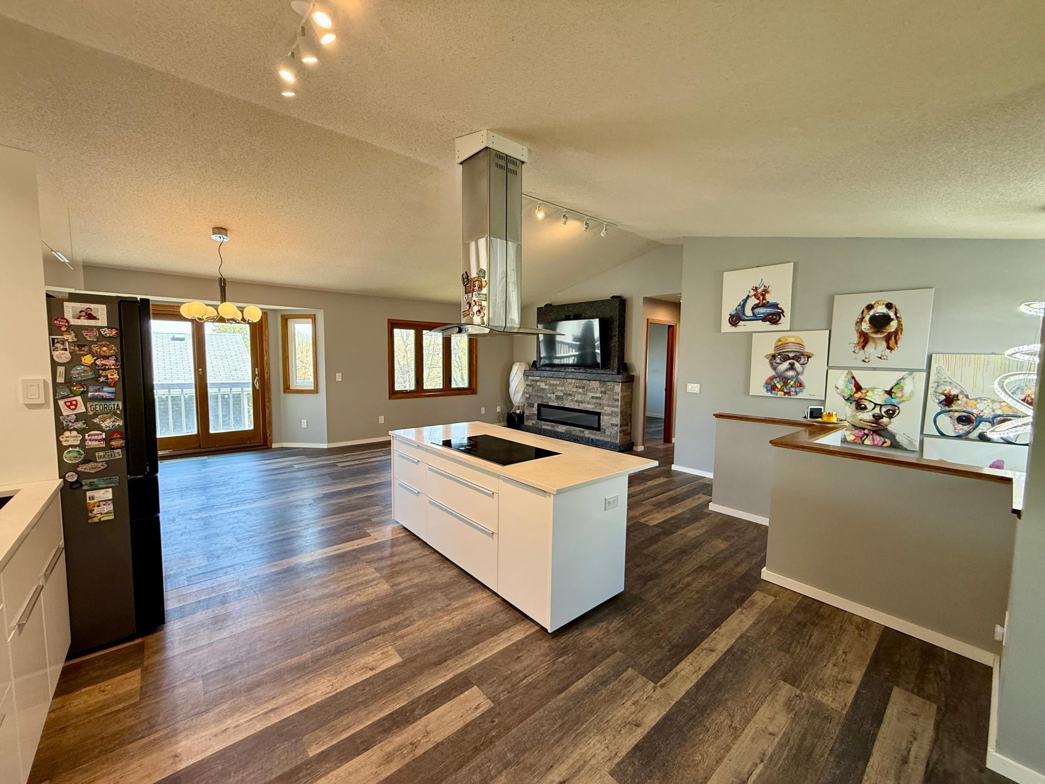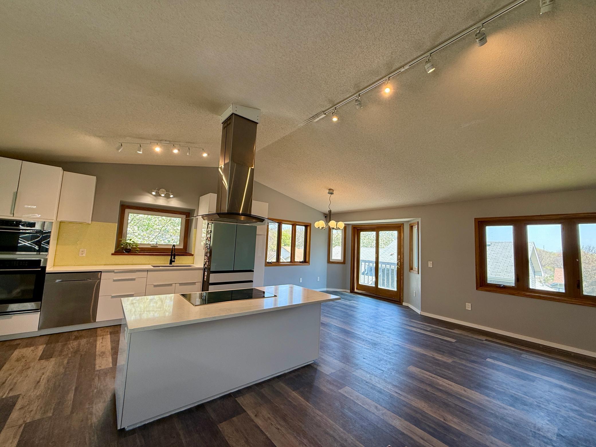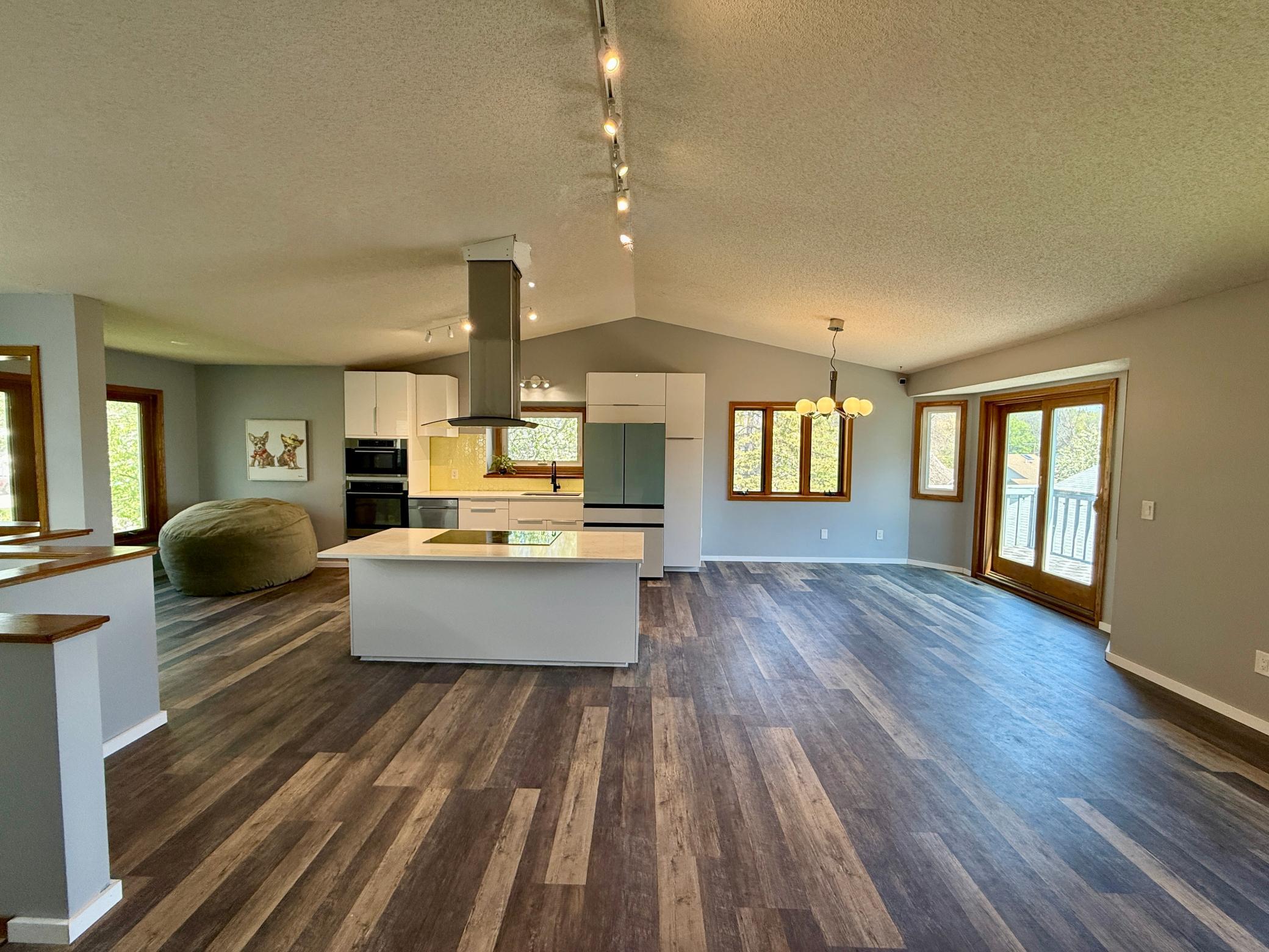 This open and vaulted 4-bedroom, 2-bath home features numerous updates while still allowing room for personal touches. THE KITCHEN WAS COMPLETELY REMODELED, featuring a custom island/table combo, new backsplash, granite countertops, new cabinets, new stainless steel appliances and new lighting fixtures. The cozy downstairs master bathroom features a large screen and projector ready for movie nights and a huge beautiful walk-in closet that makes it easy to organize all of your personal items. The 2 bathrooms were also completely remodeled with new tile floor and showers. Large corner lot with a two tier deck makes it perfect for hosting parties and family gatherings. Central location, walking distance to shopping and parks. Just move in and enjoy!