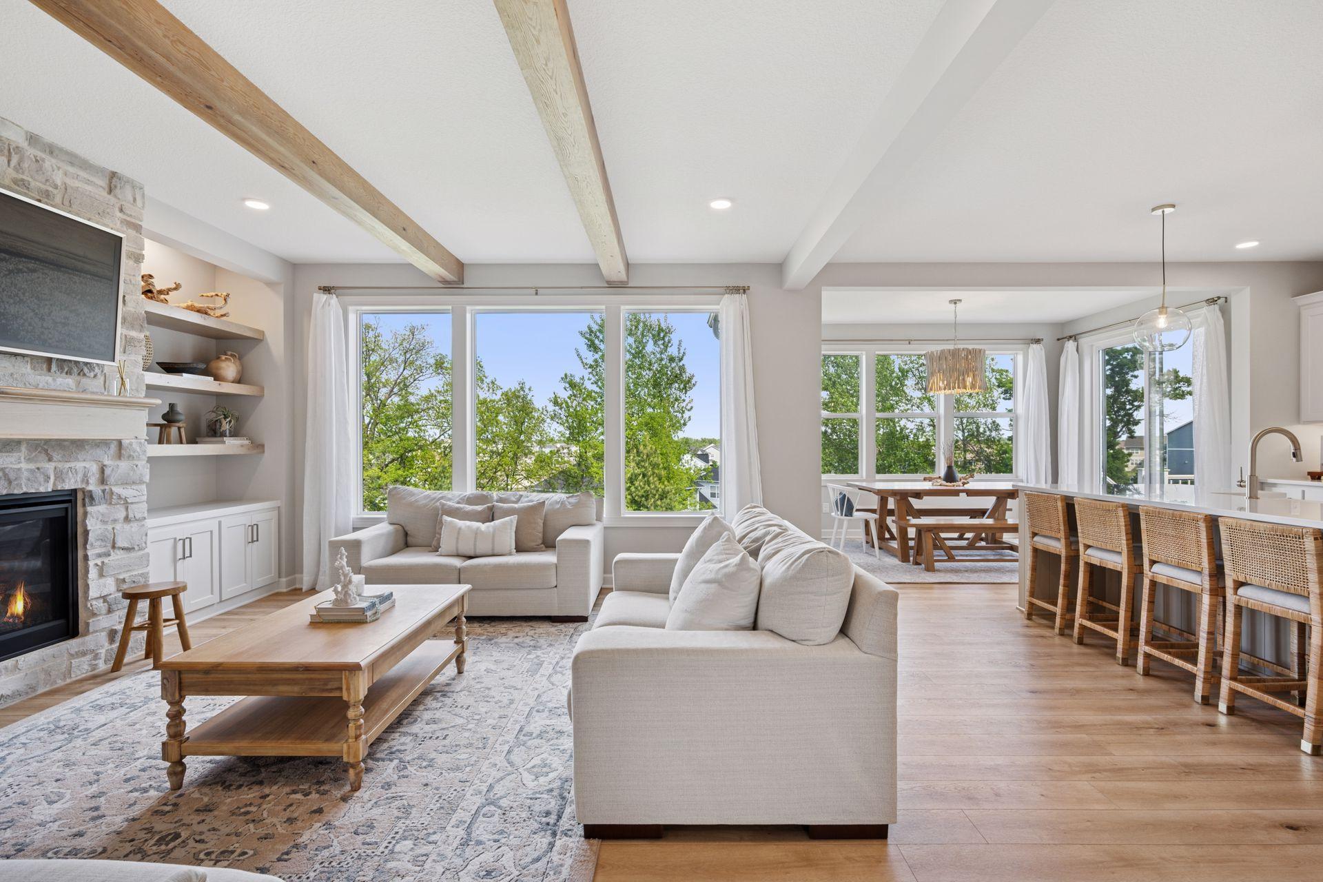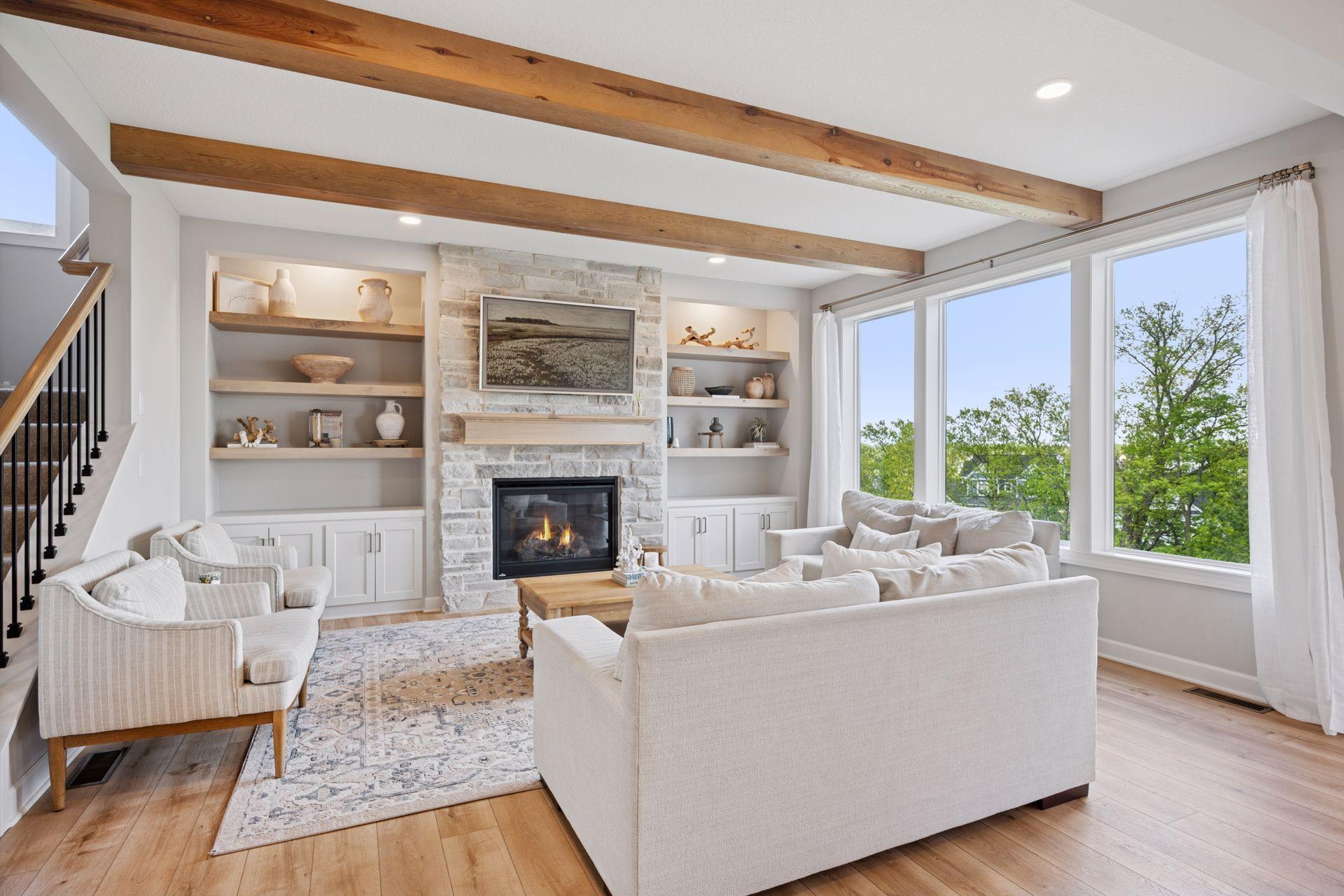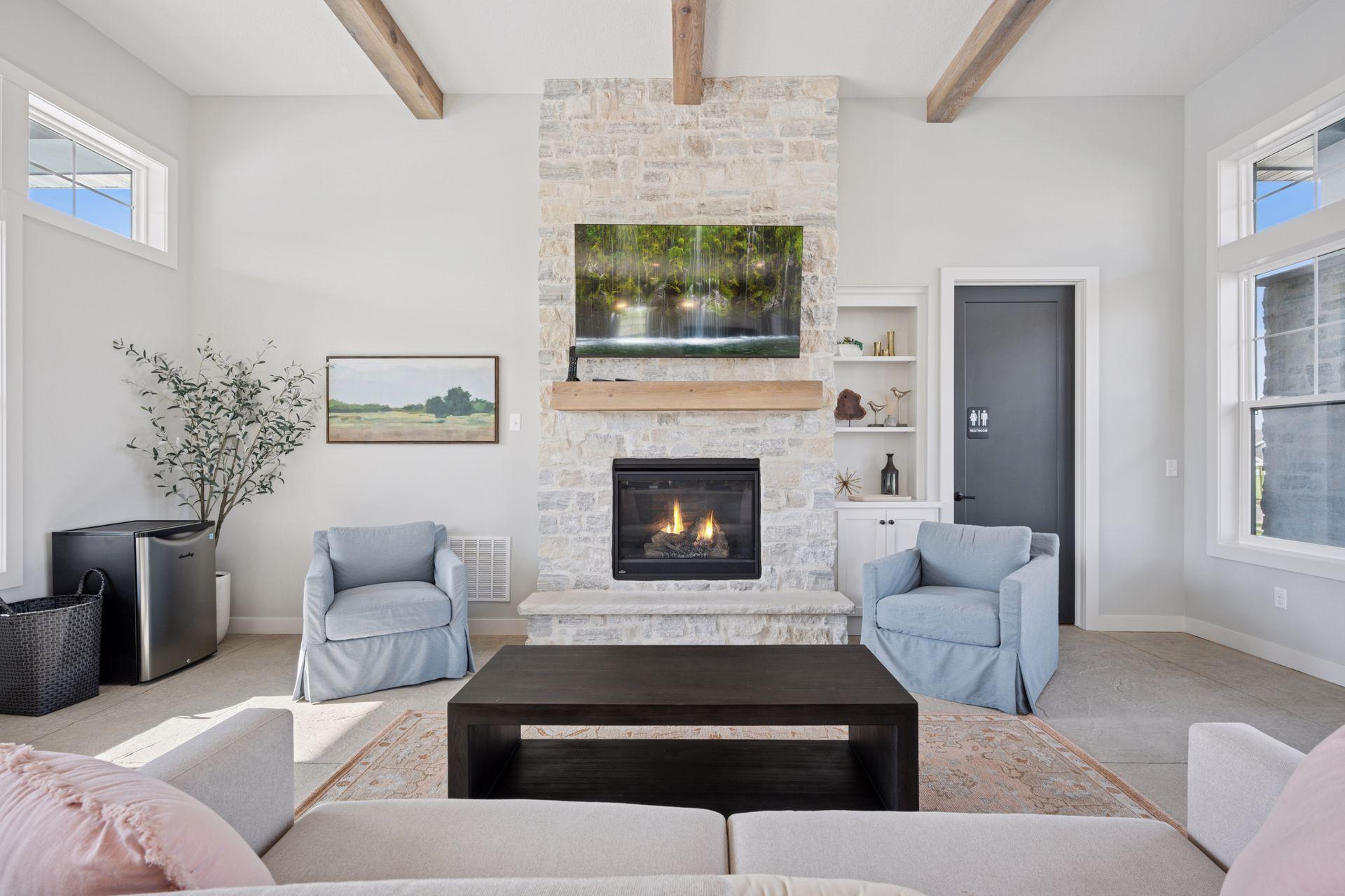 Low interest rate available with the right price! This custom-crafted home was built by Hanson Builders in 2023 and thoughtfully designed from top to bottom by a local interior designer to bring a cohesive vision to life! This is anything but your standard new construction home. It is a caliber above the rest with an endless list of upgrades to selections; including a stunning floor-to-ceiling stone fireplace with custom built-in shelving and lighting, beam accents on the 10-ft ceilings, California Closets in primary suite, highgrade stone countertops with high-end stainless steel appliances, custom shelving and cabinetry in laundry area, detailing in home office, highest grade carpet and padding, upgraded light fixtures throughout, hardwired exterior speaker system on back patio, ironrod staircase spindles, and a walk-in pantry to name a few. On the mainfloor you'll be warmly greeted by all the thoughtful design as well as the private front office. But don't miss the bonus room behind the kitchen that was being used as the perfect homeschool area, reading room, or hobby room. Upstairs is host to the luxurious and restful primary suite with walk-in shower, soaking tub, and split vanities; along with 3 other spacious bedrooms and shared bathrooms. As you head to the lower level, you'll find this bright and sunny walkout basement with a complete wetbar and minifridge, along with a spacious living area and the final bedroom and bathroom. The flat backyard with large tree cover helps make this feel more private while still being in an amazing community. If this wasn't reason enough to call this place your forever home, the Riverwalk Neighborhood amenities will tip the scales. Featuring a beautiful clubhouse with an inground pool just one block away, along with state-of-the-art Pickleball Courts and Playground area to keep the family active and entertained. This newly built custom home allows you to skip the year-long build process and overwhelming decision making of design selection and upgrades. Move in to more than just a stunning home, move in to the lifestyle and community you've always dreamed of.