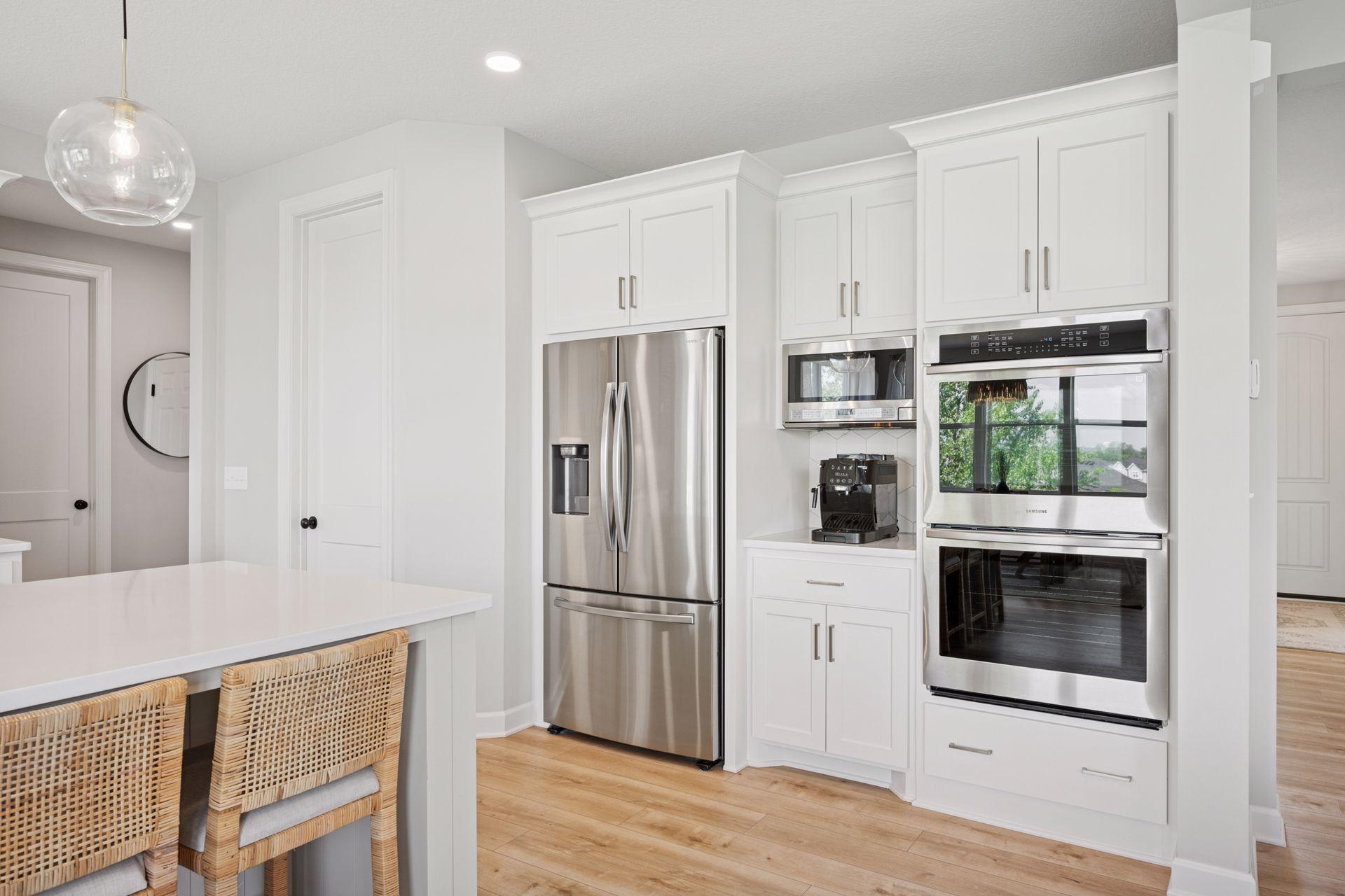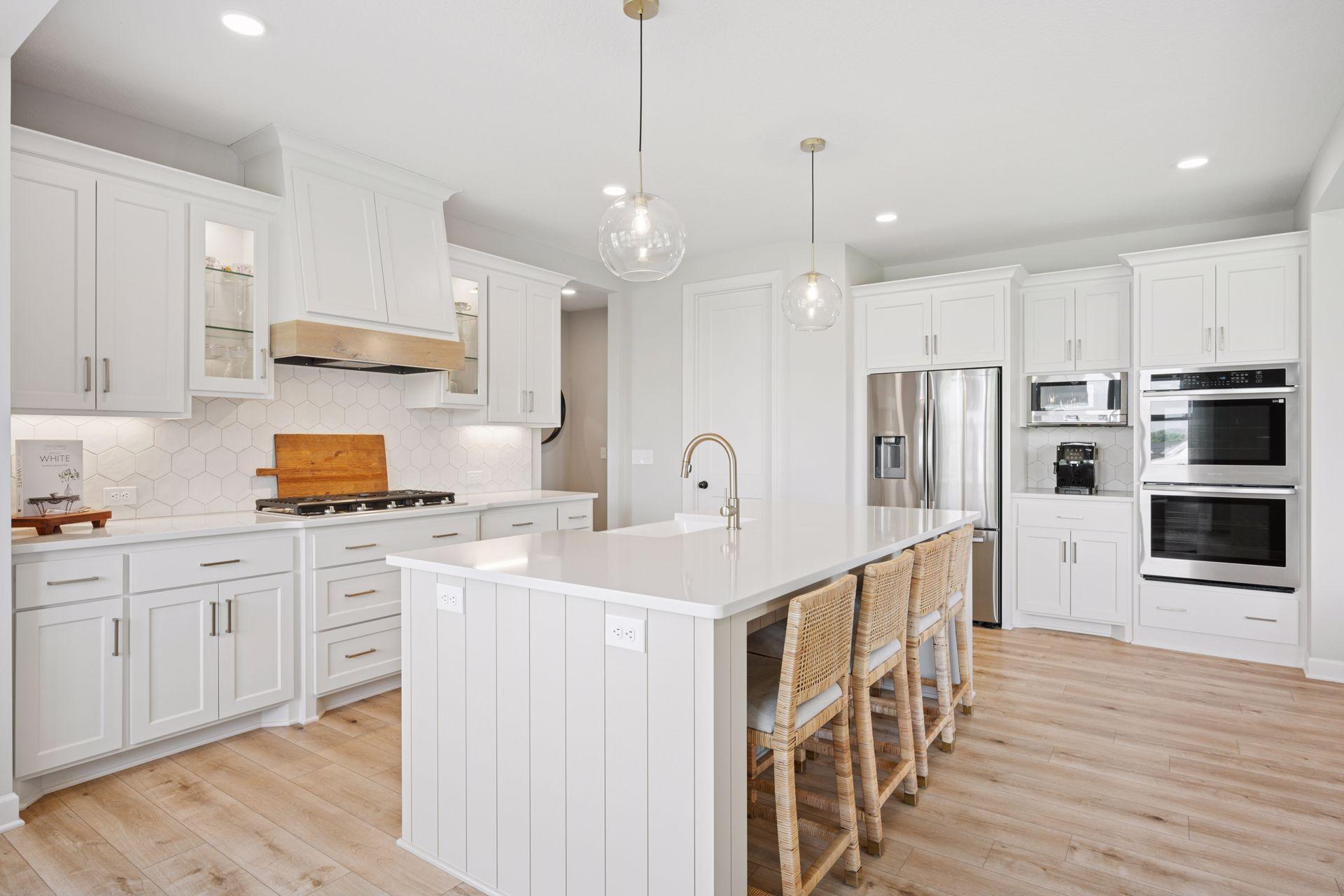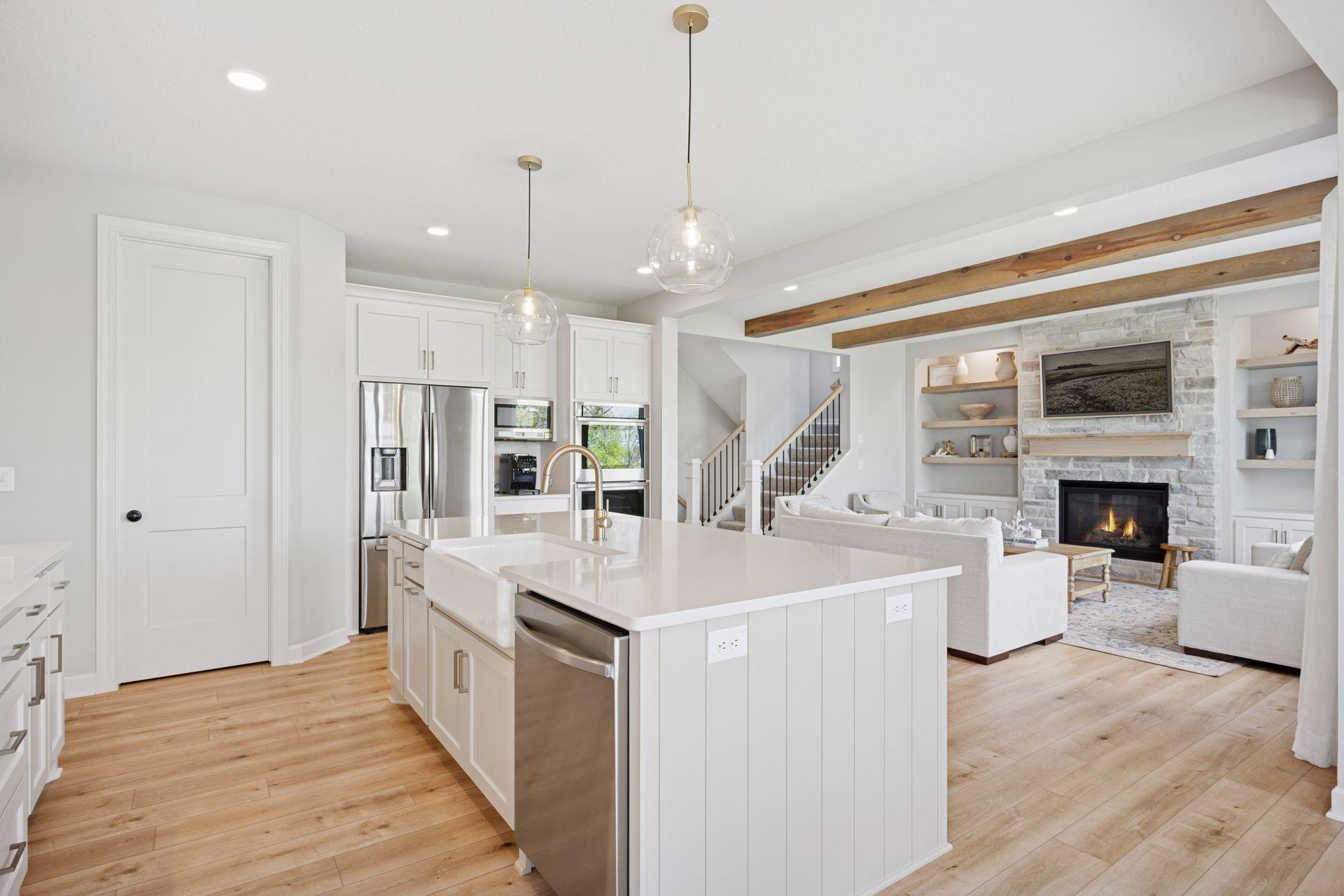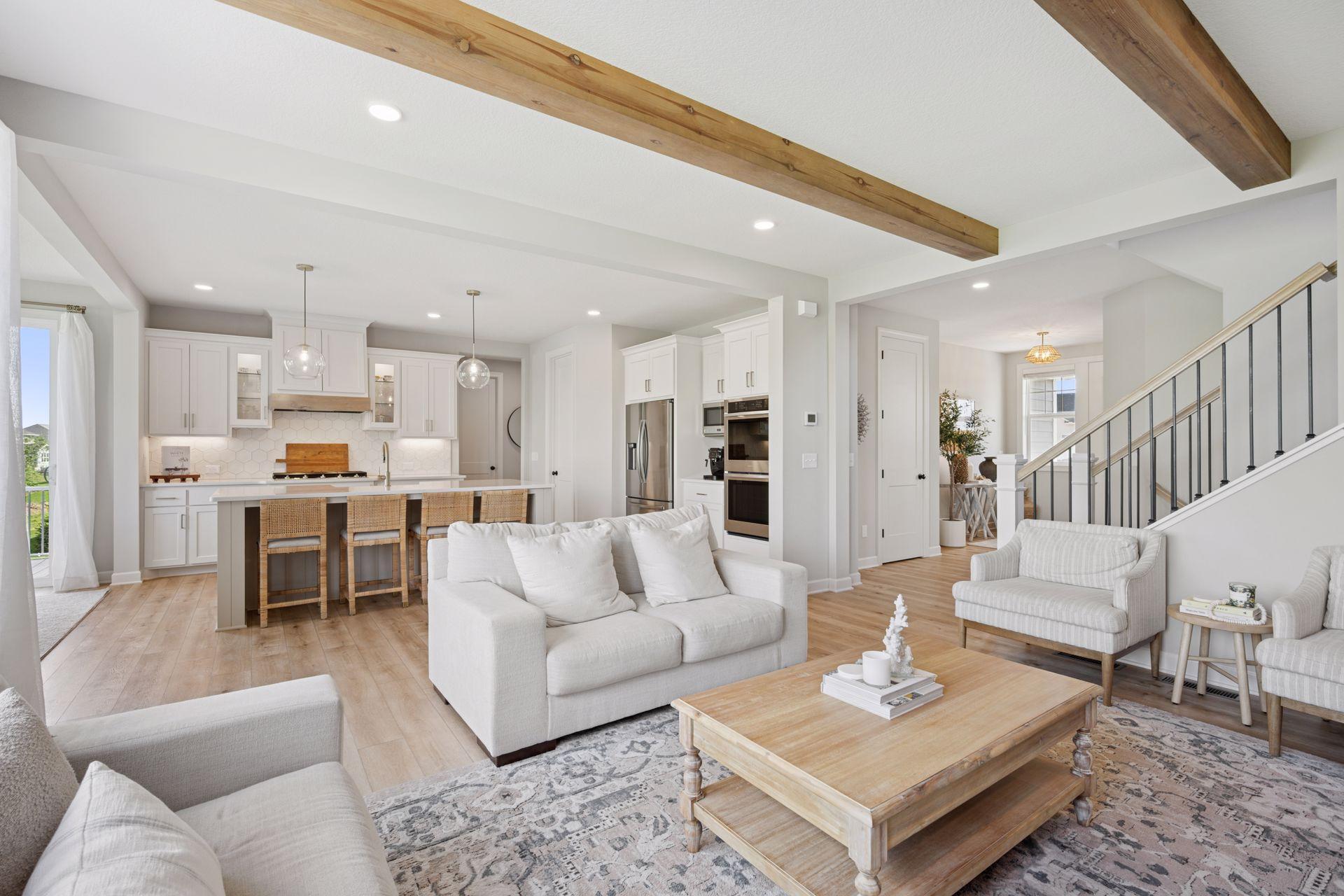Low interest rate available with the right price! This custom-crafted home was built by Hanson Builders in 2023 and thoughtfully designed from top to bottom by a local interior designer to bring a cohesive vision to life! This is anything but your standard new construction home. It is a caliber above the rest with an endless list of upgrades to selections; including a stunning floor-to-ceiling stone fireplace with custom built-in shelving and lighting, beam accents on the 10-ft ceilings, California Closets in primary suite, highgrade stone countertops with high-end stainless steel appliances, custom shelving and cabinetry in laundry area, detailing in home office, highest grade carpet and padding, upgraded light fixtures throughout, hardwired exterior speaker system on back patio, ironrod staircase spindles, and a walk-in pantry to name a few. On the mainfloor you'll be warmly greeted by all the thoughtful design as well as the private front office. But don't miss the bonus room behind the kitchen that was being used as the perfect homeschool area, reading room, or hobby room. Upstairs is host to the luxurious and restful primary suite with walk-in shower, soaking tub, and split vanities; along with 3 other spacious bedrooms and shared bathrooms. As you head to the lower level, you'll find this bright and sunny walkout basement with a complete wetbar and minifridge, along with a spacious living area and the final bedroom and bathroom. The flat backyard with large tree cover helps make this feel more private while still being in an amazing community. If this wasn't reason enough to call this place your forever home, the Riverwalk Neighborhood amenities will tip the scales. Featuring a beautiful clubhouse with an inground pool just one block away, along with state-of-the-art Pickleball Courts and Playground area to keep the family active and entertained. This newly built custom home allows you to skip the year-long build process and overwhelming decision making of design selection and upgrades. Move in to more than just a stunning home, move in to the lifestyle and community you've always dreamed of.