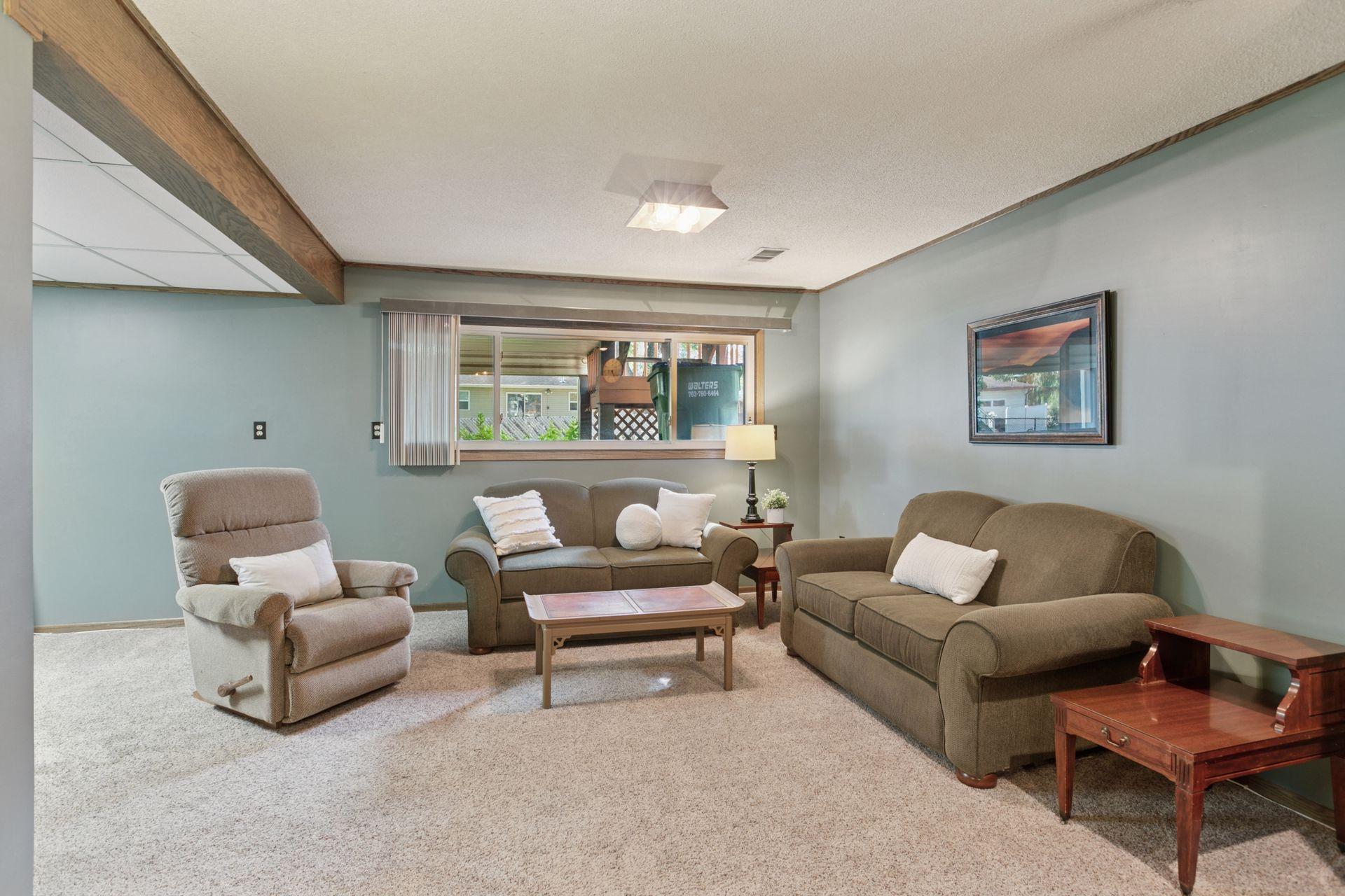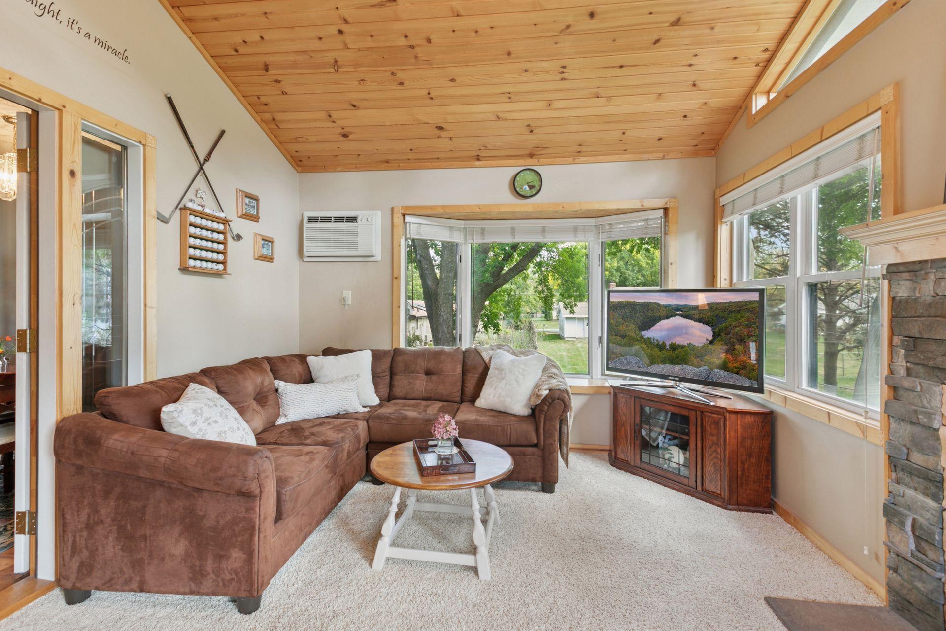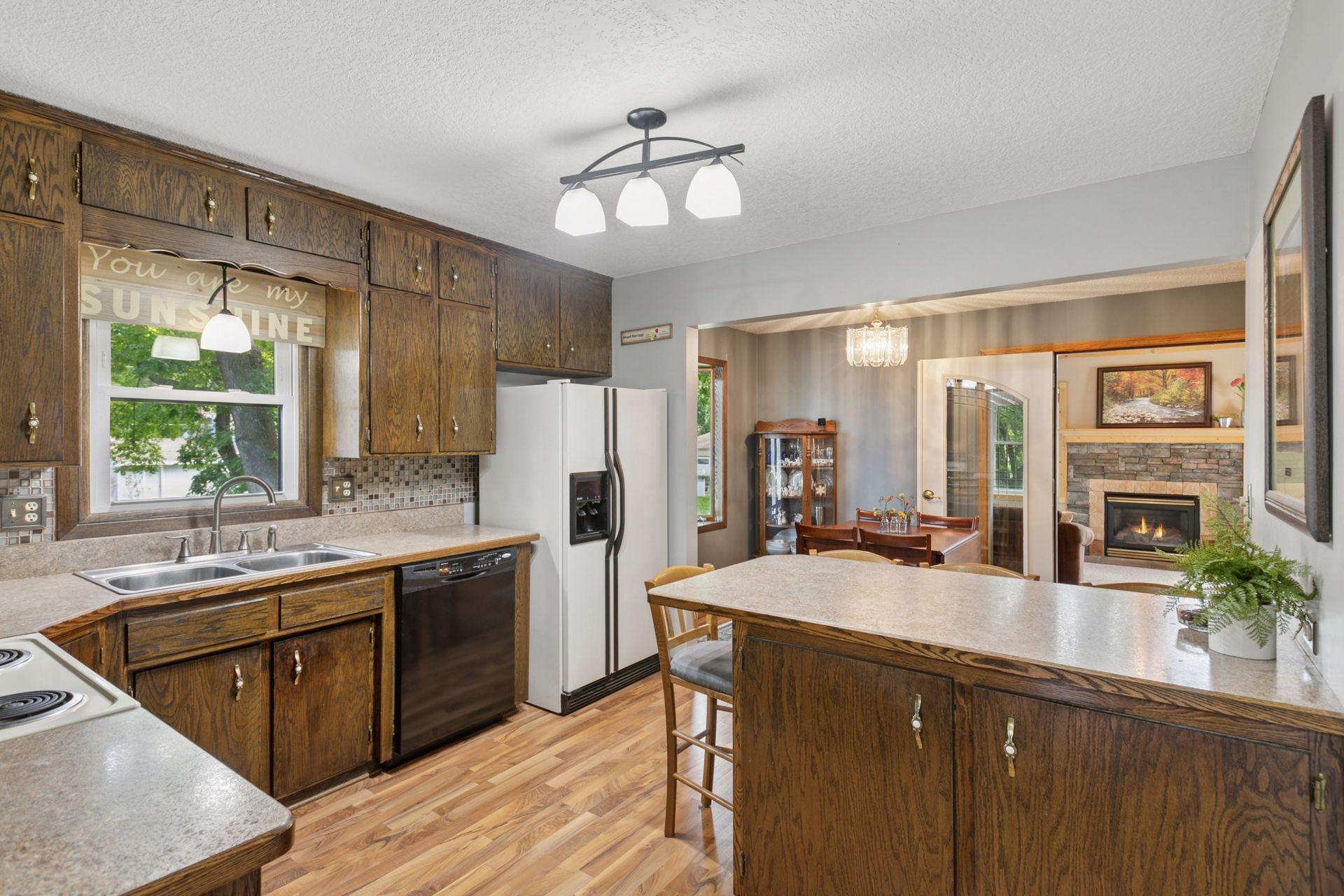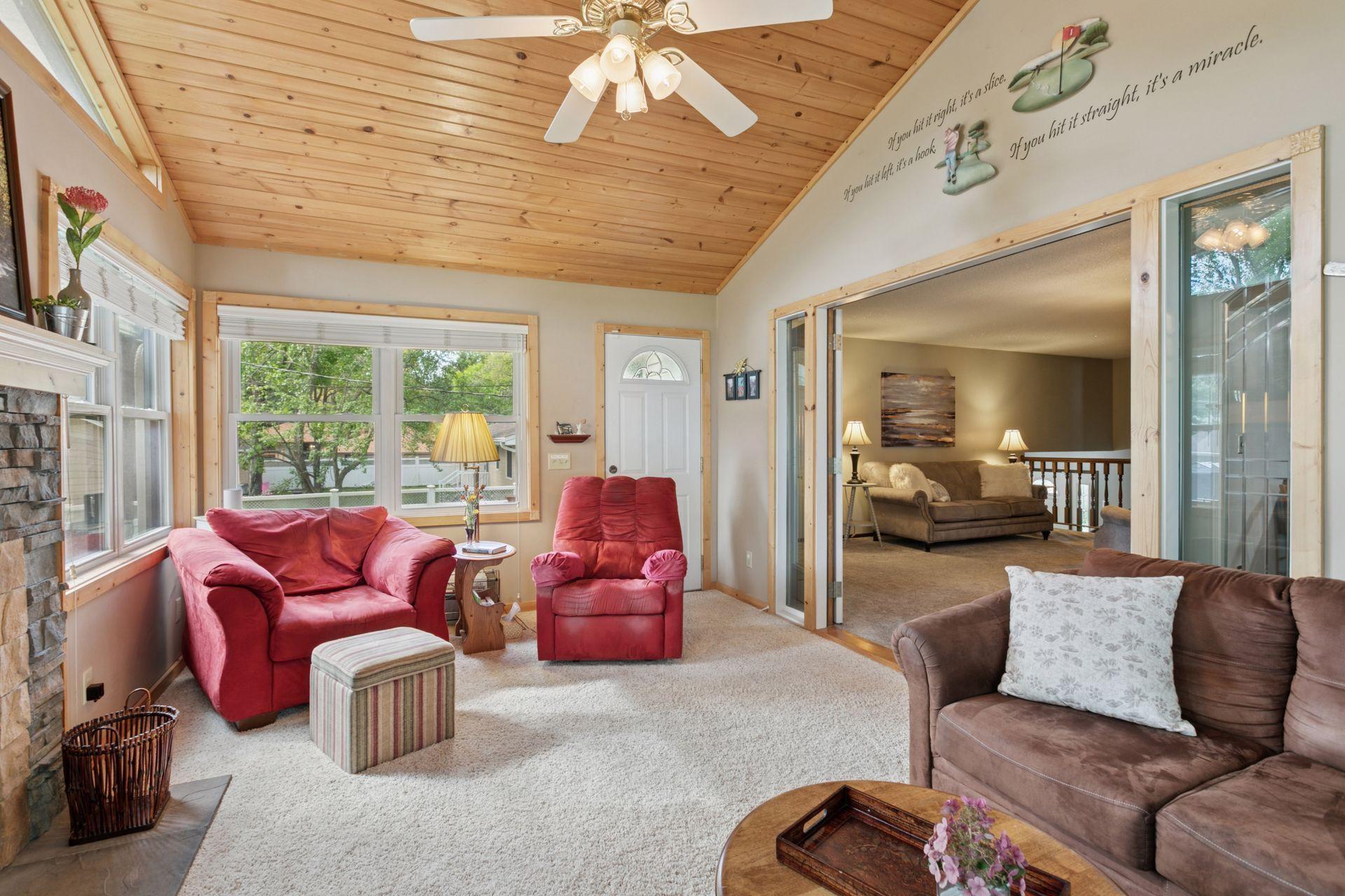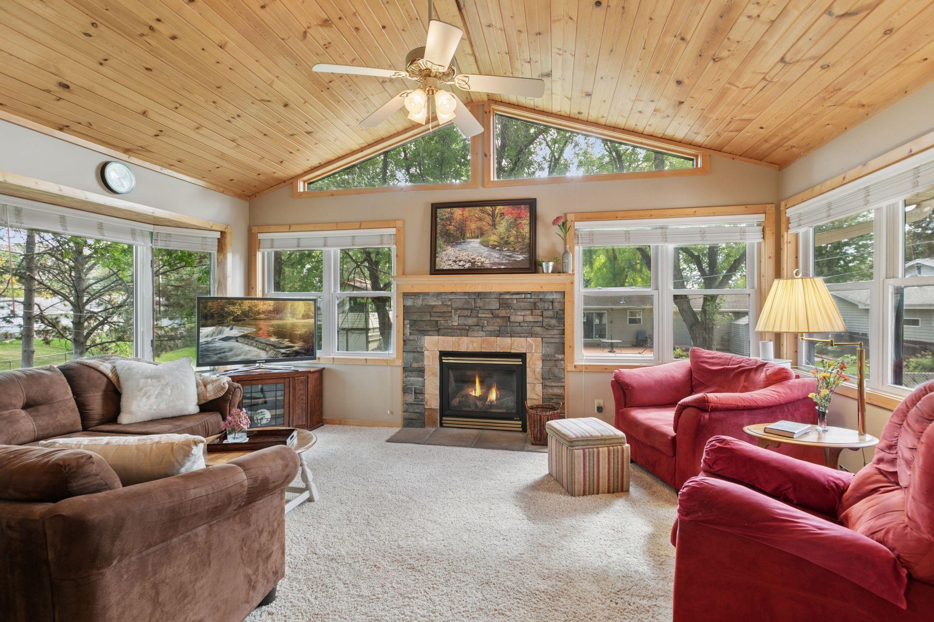 This impeccably cared-for home has been lovingly maintained by the same owner for 50 years, offering a rare blend of comfort, functionality, and pride of ownership. A standout feature is the sunroom addition, complete with vaulted ceilings and a gas fireplace—perfect for relaxing or entertaining in any season. Inside, you'll find new carpet, an open-concept kitchen and dining area enhanced by a removed wall, and knockdown ceilings that add a clean, modern touch. Step outside to a beautifully landscaped backyard featuring a concrete driveway, deck, and patio—ideal for outdoor entertaining or peaceful mornings. The lush lawn, framed by whispering mature trees, creates a serene, private retreat. Located within the highly regarded Spring Lake Park School District, this home also boasts recent exterior upgrades including new siding, roof, and gutters, ensuring peace of mind and excellent curb appeal. Just steps from Flanery Park, enjoy easy access to a hockey rink, basketball and tennis/pickleball courts, and walking paths. Ideally situated with quick access to both Minneapolis and St. Paul, this move-in-ready home offers timeless charm, thoughtful updates, and a setting you’ll love coming home to.