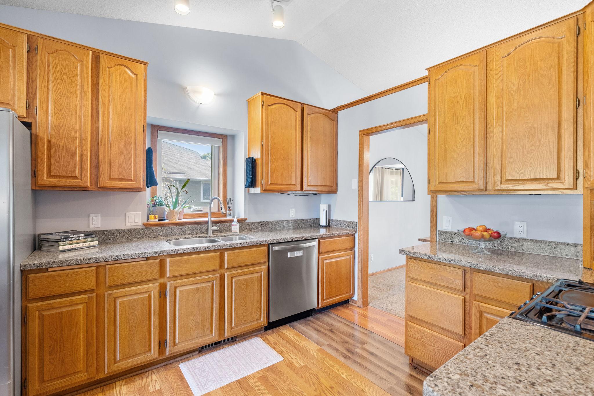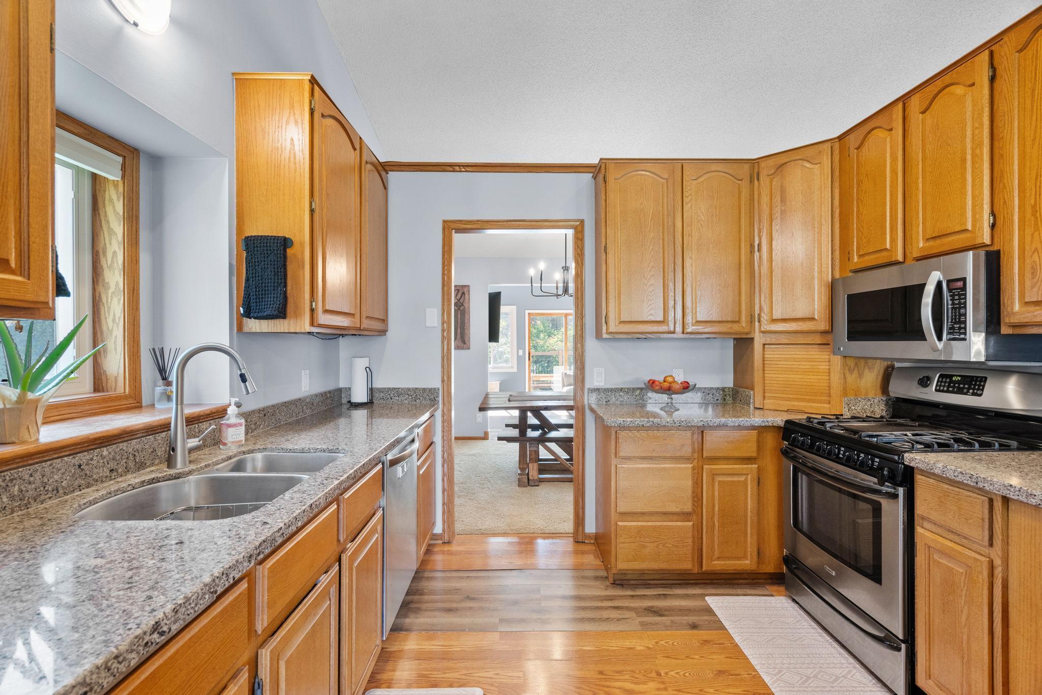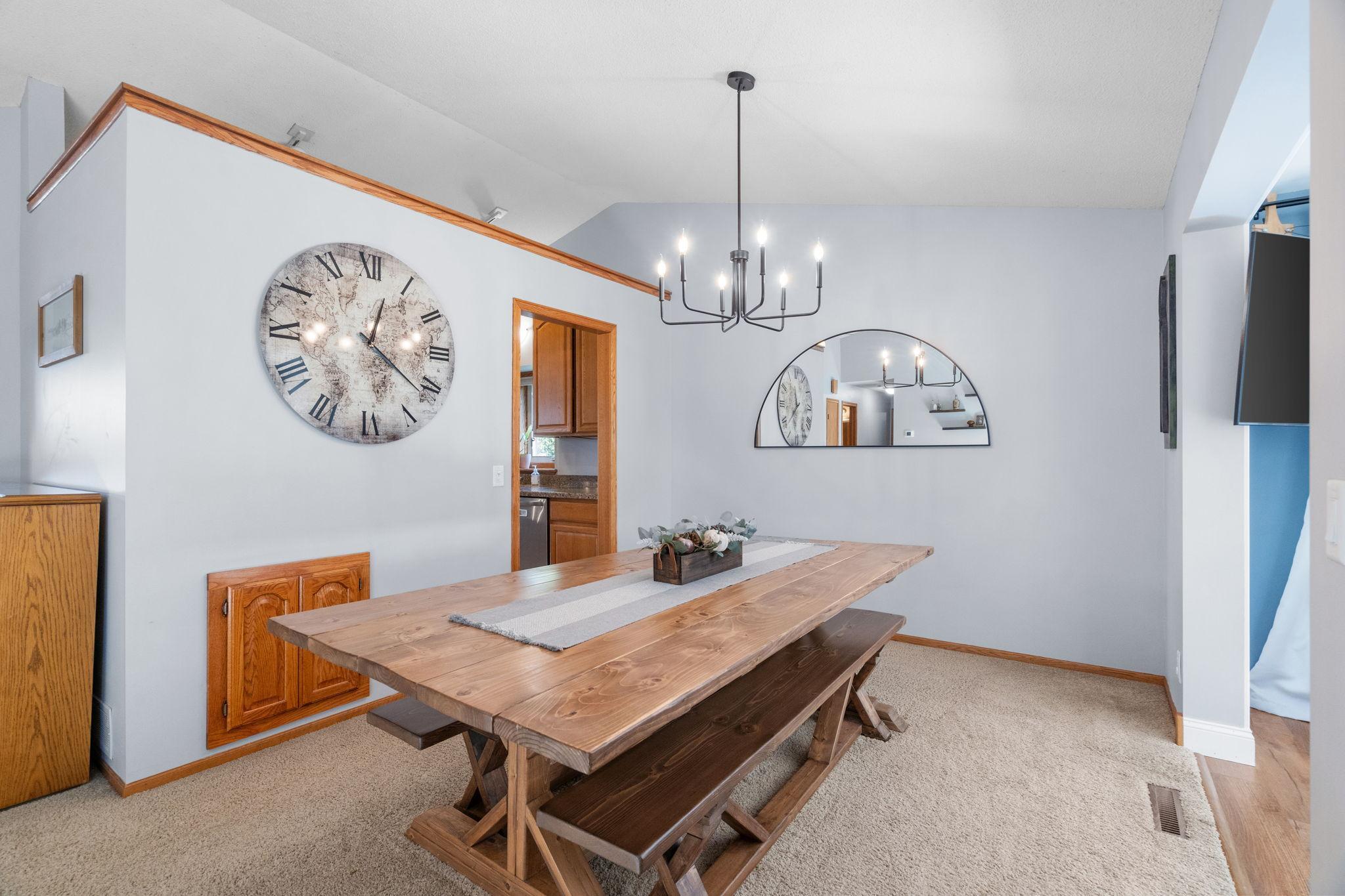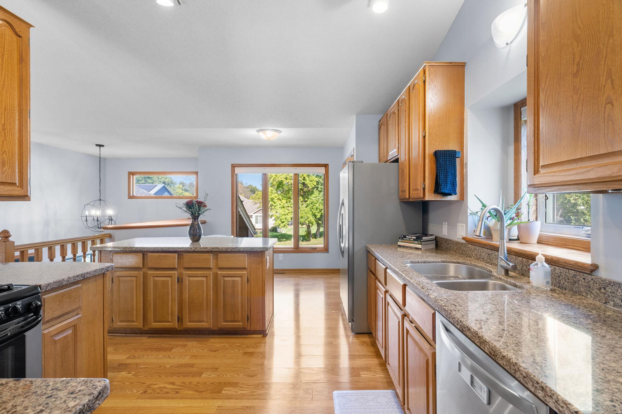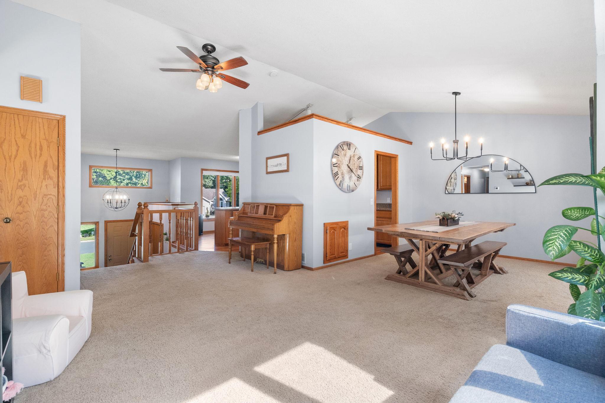 Welcome home to this spacious and modern split entry! The upper level is open and bright, with vaulted ceilings and a beautiful sunroom that leads you to the deck and backyard. The lower level is fully finished with a cozy fireplace and extra bedrooms. The oversized garage has room for a workspace with a floor drain. For outdoor enthusiasts, the large backyard is fully fenced and features native pollinator plants, a raised garden bed, and your very own composting bin is included! Updates include: new windows and resealed driveway 2025, new roof 2022, deck 2021, upgraded appliances, and more. You get the best of both worlds with this location! Conveniently right off of Weaver Lake and 94, while still being tucked away in a quiet neighborhood, you'll be close to shopping, many restaurants, local parks, and walking trails.