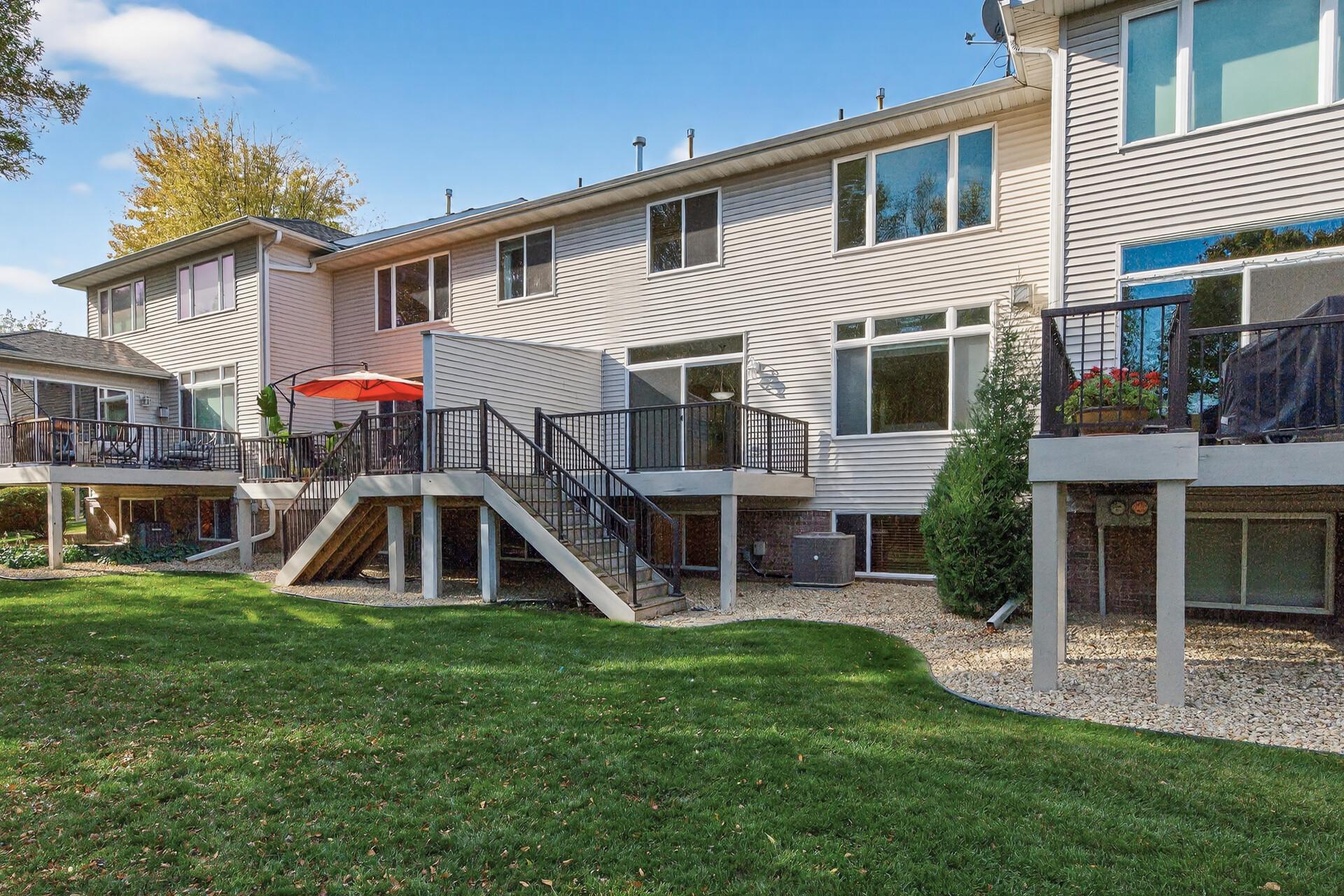 Welcome to nearly 2,600 sq ft of bright, open living space in this beautifully maintained townhome, located within the highly desirable Wilds Golf Community. Vaulted ceilings and massive windows flood the home with natural light, creating a spacious and calming atmosphere with serene views of the private, wooded backyard. The main level offers a seamless layout featuring a cozy living room with gas fireplace, a dining area with walkout access to the deck, and a well-equipped kitchen with stainless steel appliances, ample cabinetry, and a breakfast bar. Steps from the deck lead directly to the backyard, perfect for pets or enjoying the outdoors with ease. The home has been freshly painted and is in excellent condition throughout. Upstairs, you'll find three bedrooms on one level, including a spacious primary suite with a walk-in closet and private bath. The lower level features a large family room and a 3/4 bath, ideal for entertaining or as a private guest suite or home office. Located minutes from The Wilds Golf Club, Slate North Pub, Mystic Lake, Downtown Prior Lake, Spring Lake Dog Park, and top local restaurants and shops. Commuting is easy with quick access to Highways 13 & 169, just a short drive to downtown Minneapolis and the airport. Enjoy miles of walking trails, beautifully maintained common areas, and parks just steps from your back door. Rentals are allowed, offering great flexibility for future plans. Whether you’re a golf enthusiast, lake lover, or simply seeking a low-maintenance lifestyle in a vibrant community...this home checks all the boxes.