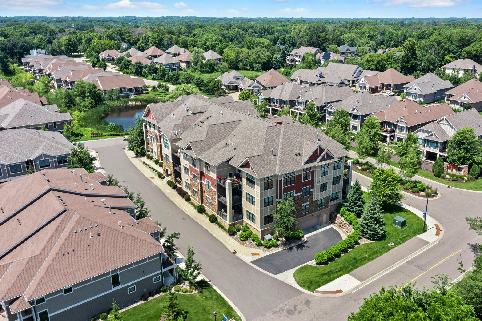 Welcome to this beautiful and spacious 2-bedroom, 2-bathroom condo—perfectly located just minutes from vibrant downtown Wayzata. Enjoy effortless access to Ridgedale Center, scenic lakes and trails, top-rated restaurants, and shopping. Nestled near Gleason Lake, Parkers Lake, and Wayzata Central Middle School, this home offers the ideal blend of lifestyle, comfort, and location. Inside, the open-concept layout is both stylish and functional, designed for seamless everyday living and entertaining. The standout kitchen boasts sleek Bosch stainless steel appliances, a tile backsplash, abundant cabinetry, and an oversized center island with breakfast bar seating—perfect for cooking or gathering. Just beyond, the designated dining area features wood flooring and a striking light fixture, creating a welcoming setting for everything from casual dinners to celebrations. The bright and airy living room is bathed in natural light from oversized windows and enhanced by the peaceful, unobstructed views exclusive to this corner unit. A stunning gas fireplace with a floor-to-ceiling stone surround and elegant mantle anchors the space, while built-in cabinetry adds both style and storage. An updated ceiling fan completes the room with comfort and functionality. The generously sized primary suite features a tray ceiling with ceiling fan, soft carpeting, and an expansive 10x7 walk-in closet with built-ins for easy organization. The private en suite bathroom is perfect for relaxing with tile flooring, a spacious walk-in tiled shower, and a double vanity with ample counter and cabinet space. The second bedroom is equally comfortable, with plush carpeting, a ceiling fan, and a large closet. A shared full bathroom offers a combined tub and shower with an updated glass door (2019), beautiful tile surround, tile flooring, and a linen cabinet. A nearby hall closet adds even more convenient storage. This thoughtfully designed unit also features a finished in-unit laundry room with a stacked Frigidaire washer and dryer, cabinetry, a sink, and a wine cooler (2019). Two additional closets near the entryway ensure there’s a place for everything. For added convenience, the unit includes two assigned underground parking spaces (tandem), keeping your vehicles protected and easily accessible year-round. Step outside to relax on the maintenance-free 11x8 deck—ideal for enjoying your morning coffee or unwinding at sunset. Residents also enjoy access to premium community amenities, including a fitness center, guest suite, and a stylish club room with a full kitchen—perfect for hosting gatherings.