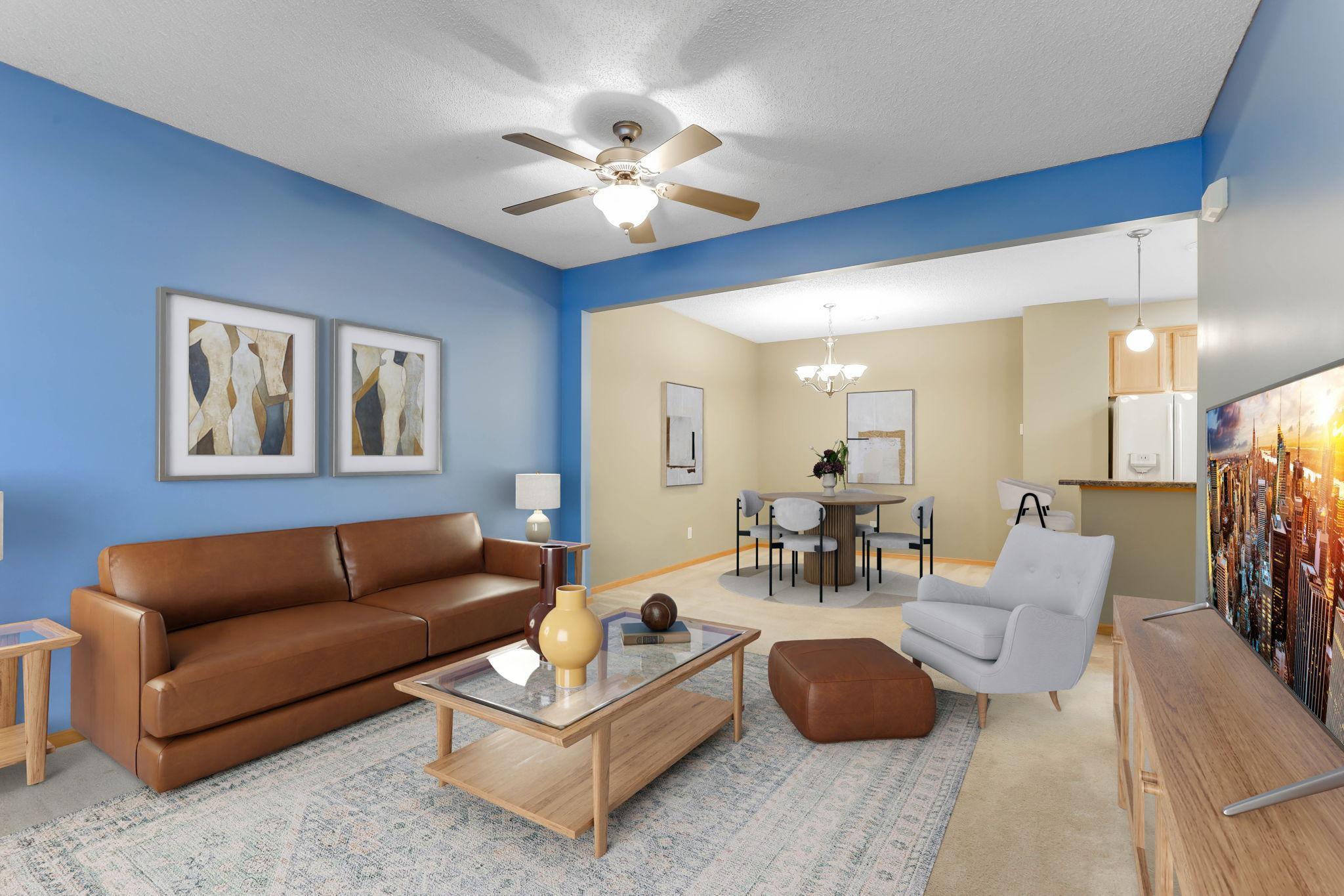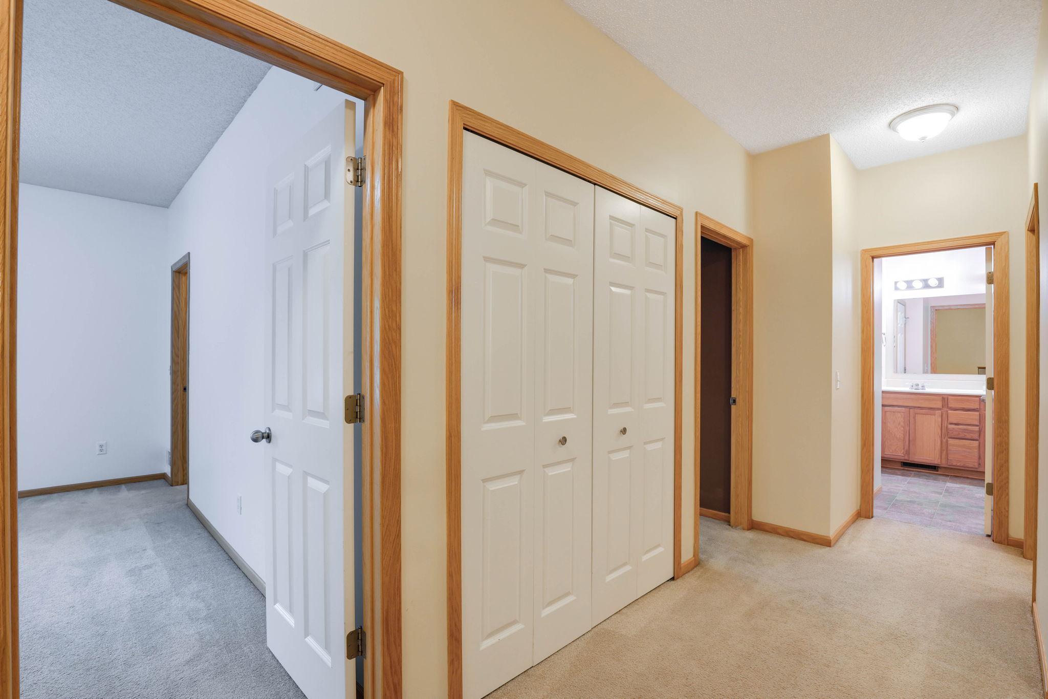 Welcome home to this inviting, move-in ready townhome! The open-concept main level flows seamlessly, featuring a kitchen with ample cabinet space and a center island, perfect for entertaining or everyday living. Upstairs, you'll find two generously sized bedrooms and a versatile loft area. This bonus space is ideal for a sitting room, TV area, or anything else you can imagine. The master bedroom boasts two walk-in closets and convenient pass-through access to the upstairs bath. Throughout the home, you'll appreciate the large windows that fill the space with natural light and the plenty of closet space for all your storage needs. Additionally, this home has a beautiful front yard garden, professionally maintained by a landscaping company. A service included in the HOA. This wonderful home is nestled in a friendly neighborhood within the highly-regarded White Bear Lake School District. Come and see!